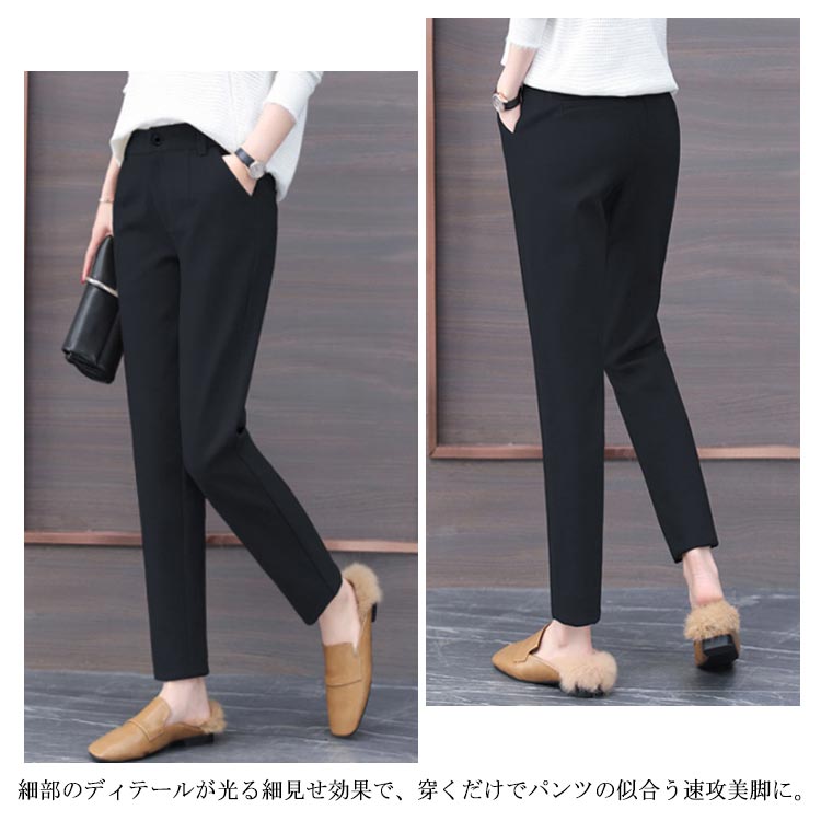 | あたたかみのあるラシャ素材を使用したテーパードパンツ。 しわになりにくい素材感なので、使い勝手は抜群! シンプルで飽きのこないデザインがワンマイルスタイルにも最適です。 細部のディテールが光る細見せ効果で、穿くだけでパンツの似合う速攻美脚に。 オトナ女性の今のスタイルをキレイに魅せてくれます。 | |