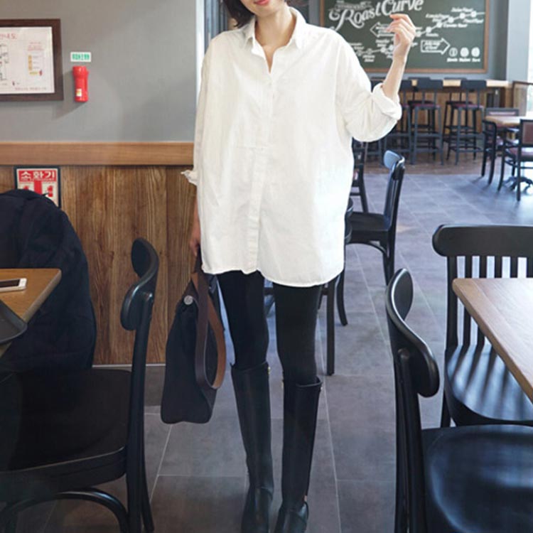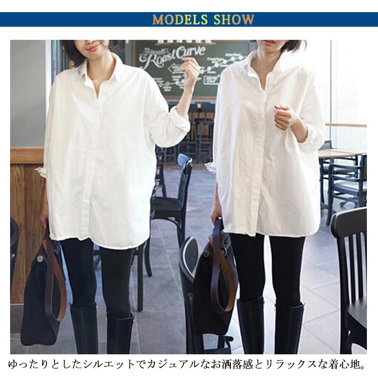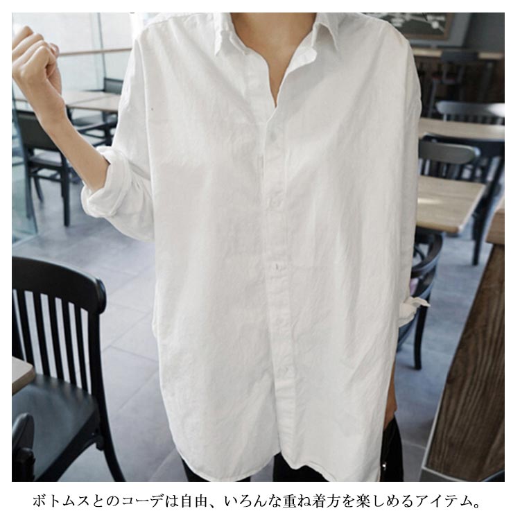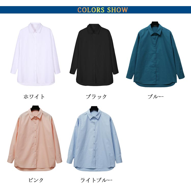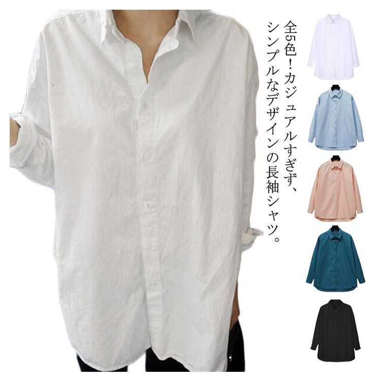 シャツ トップス レディース ブラウス 長袖 ゆったり カジュアルシャツ ロング丈 オーバーサイズ 体型カバー 無地 リラックス お洒落 春秋 通勤 通学