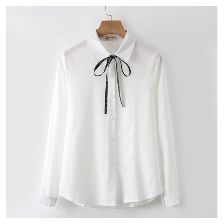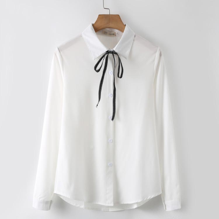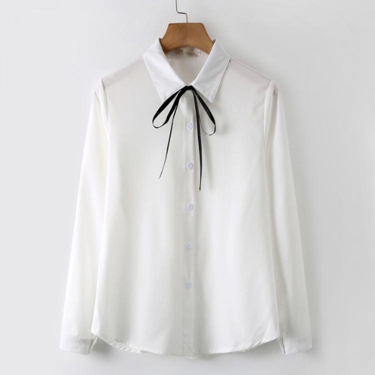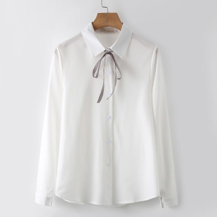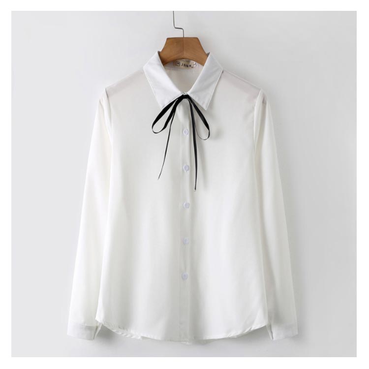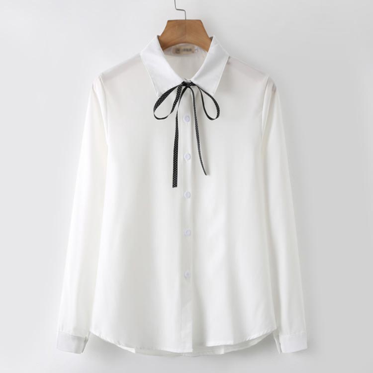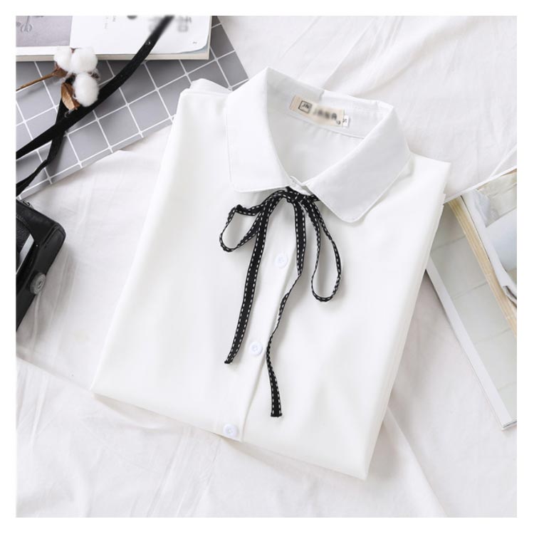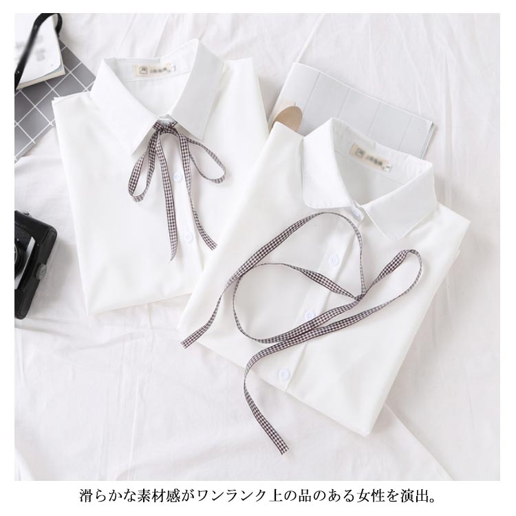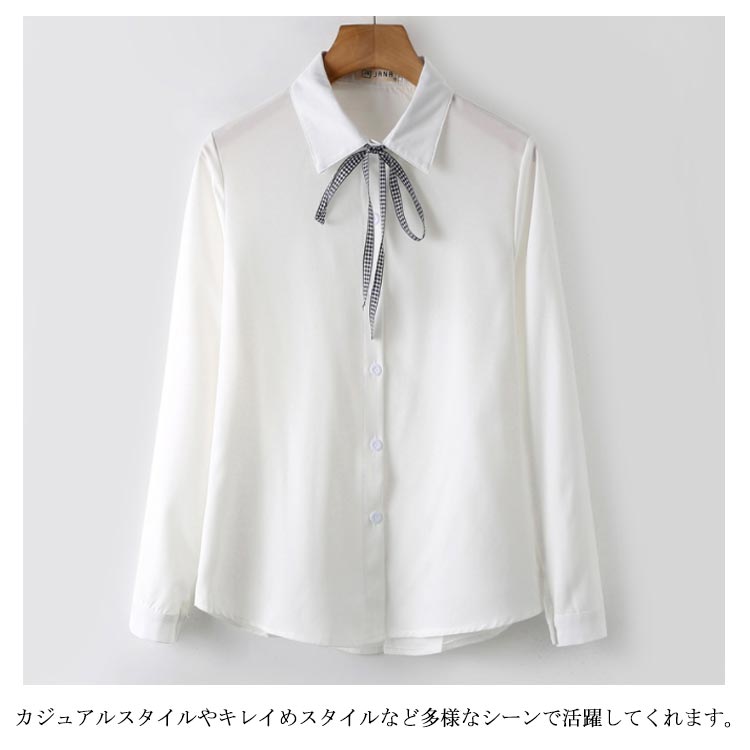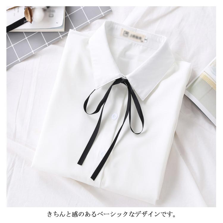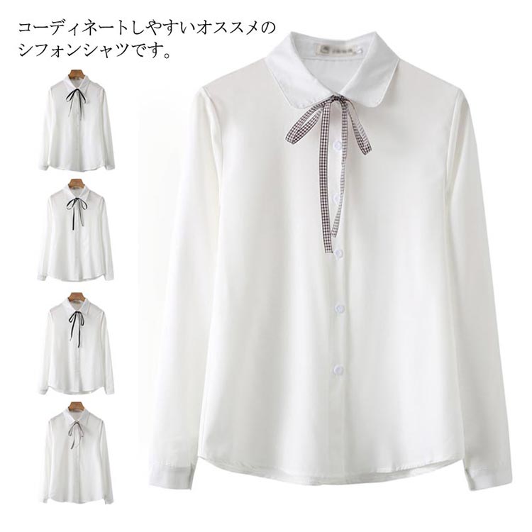 白シャツ シフォンシャツ ブラウス レディース シフォン トップス 長袖 前開き シンプル 折り襟 無地 リポン付き ゆったり 体型カバー 春秋物 通勤 通学 オフィス
