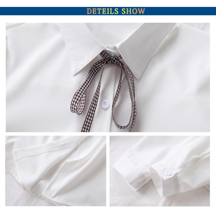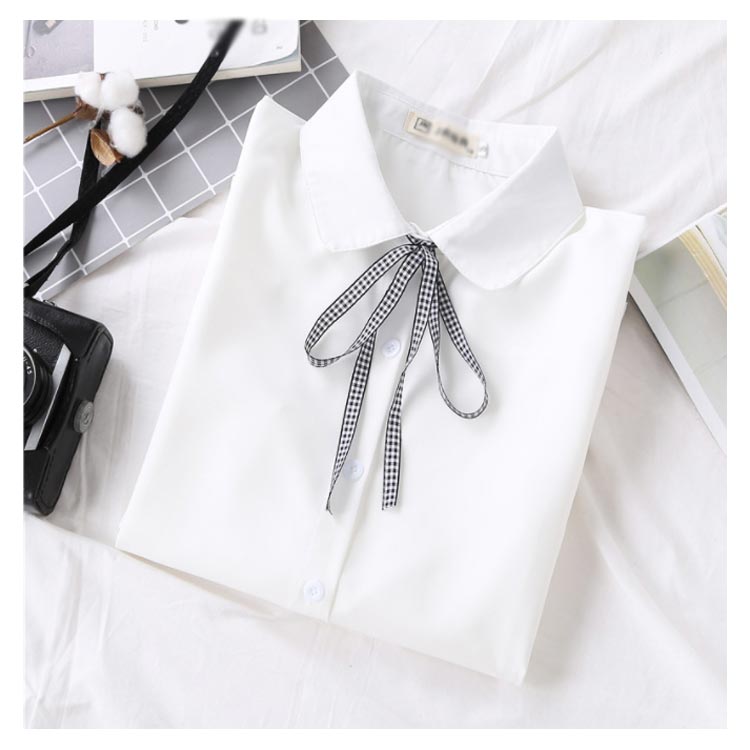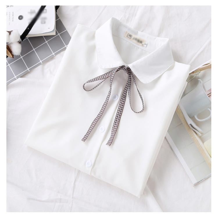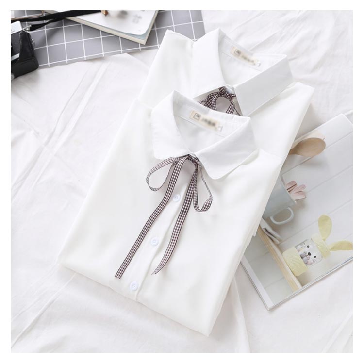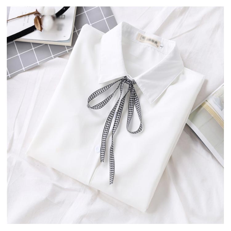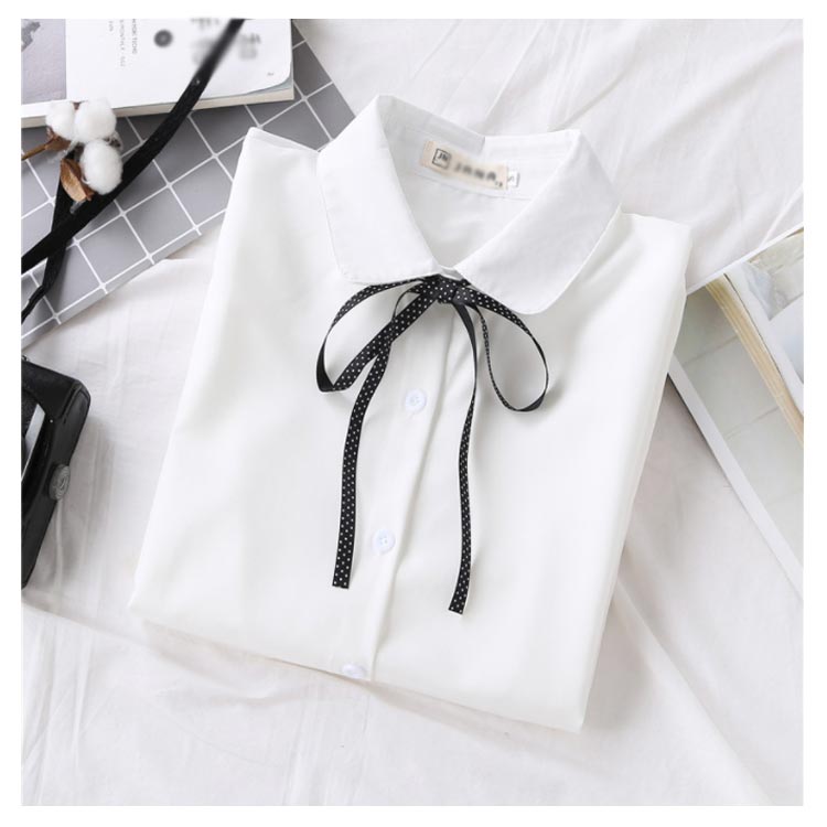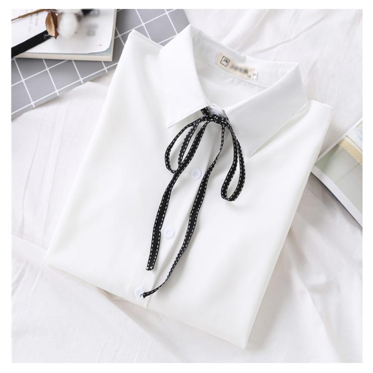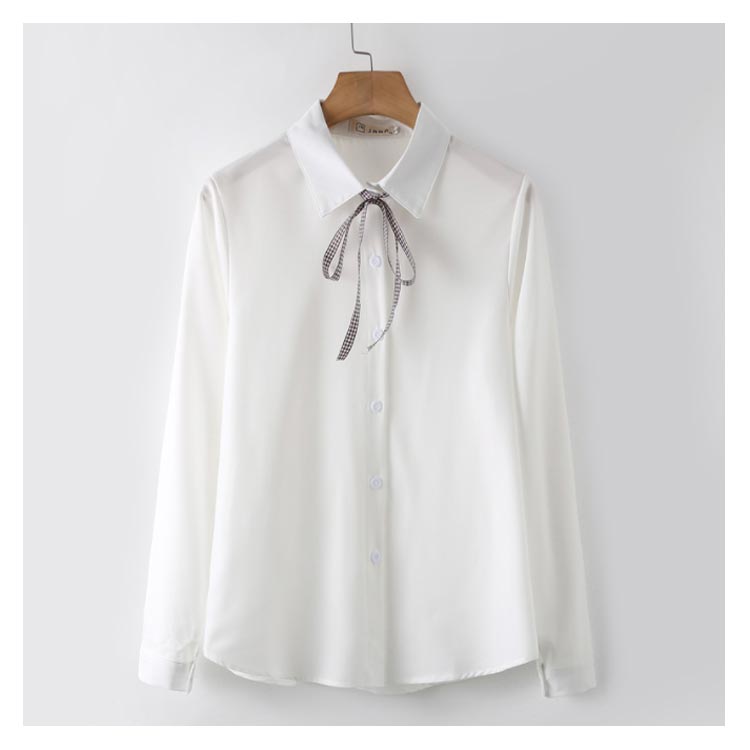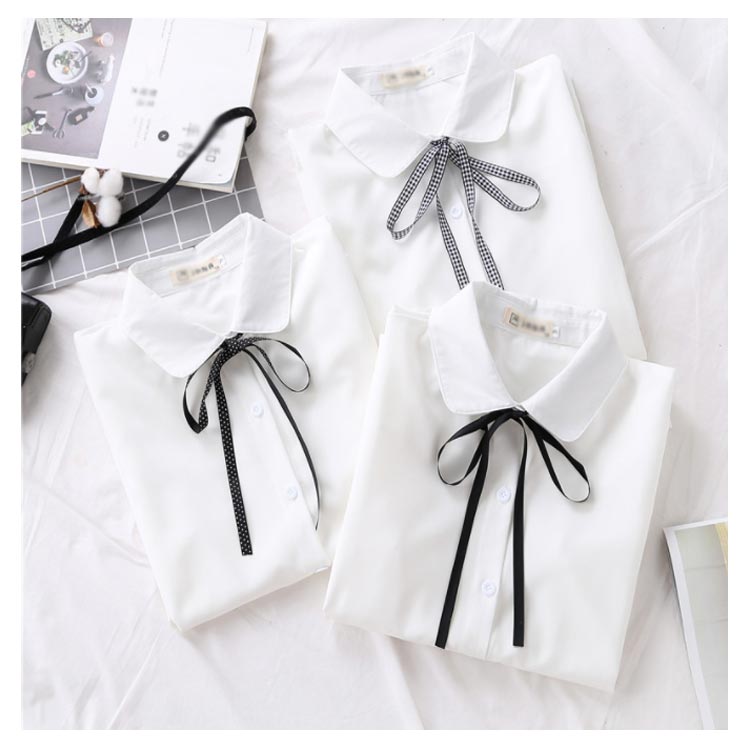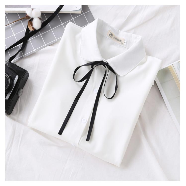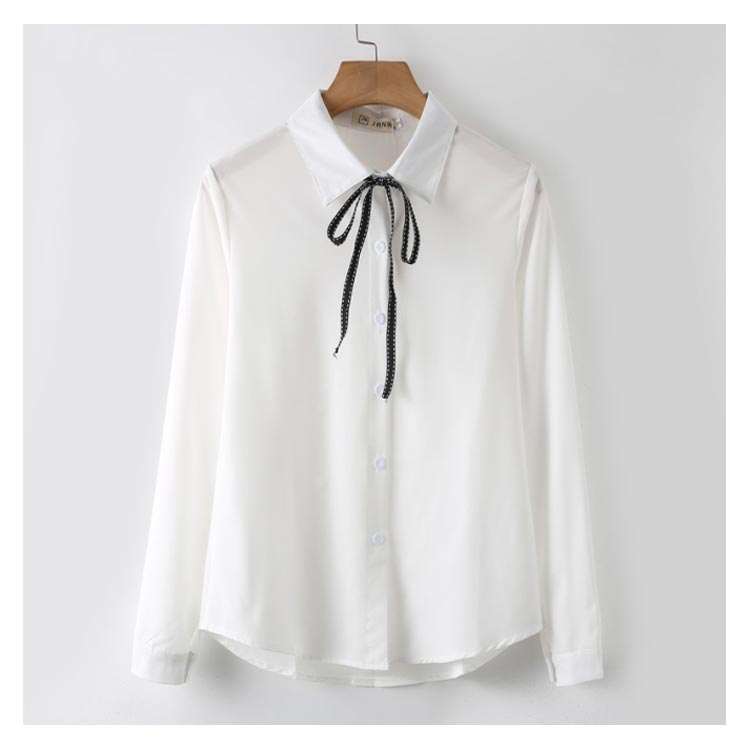 白シャツ シフォンシャツ ブラウス レディース シフォン トップス 長袖 前開き シンプル 折り襟 無地 リポン付き ゆったり 体型カバー 春秋物 通勤 通学 オフィス