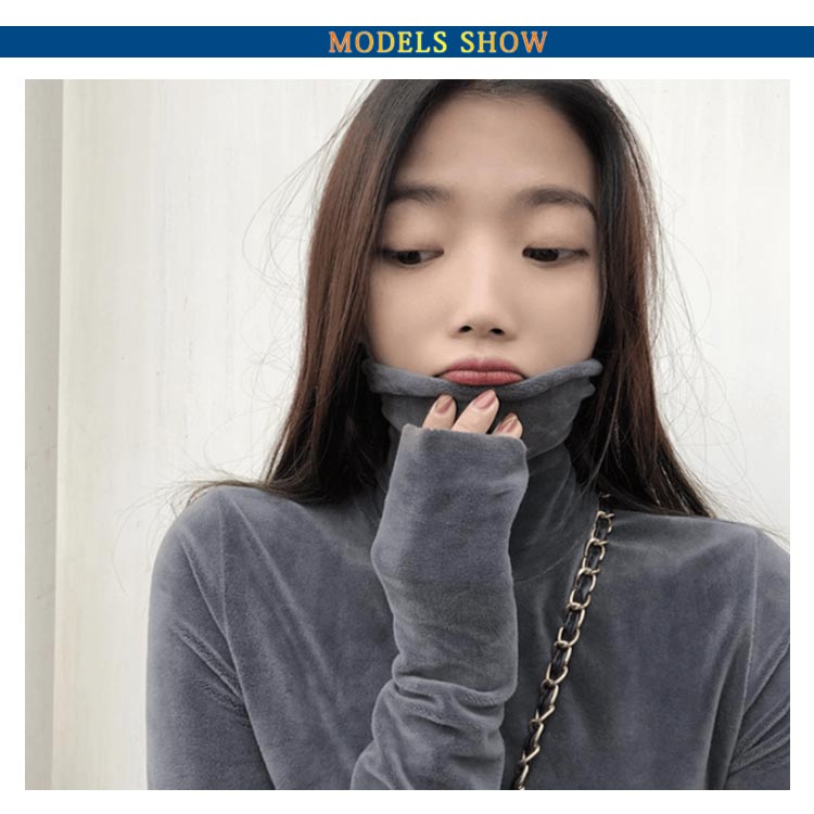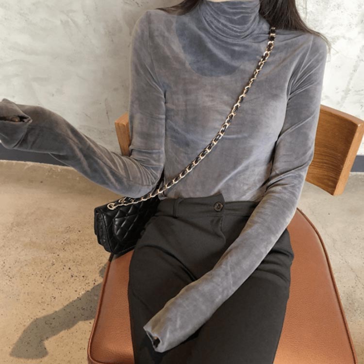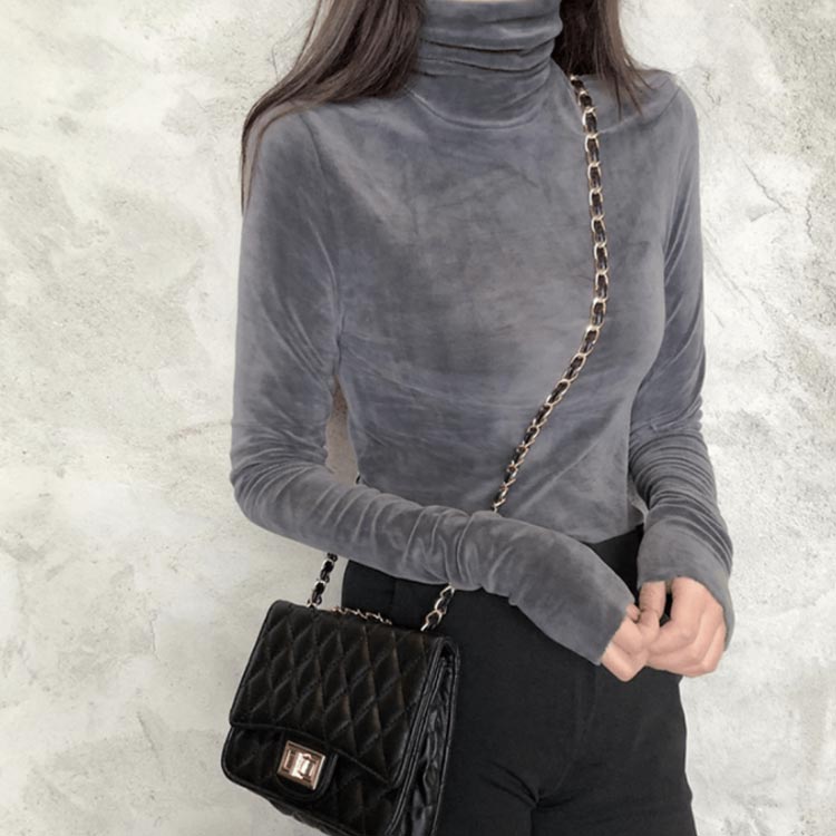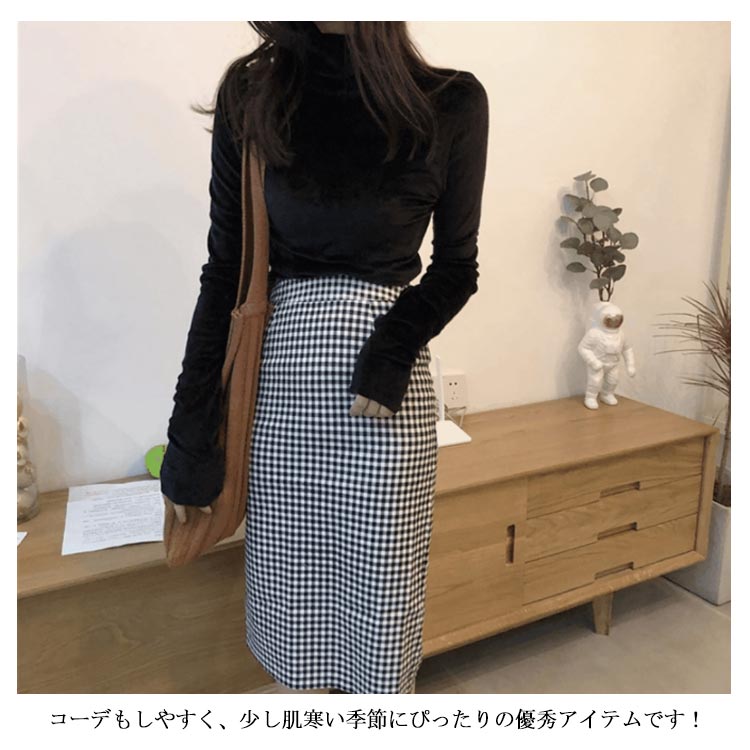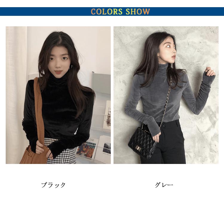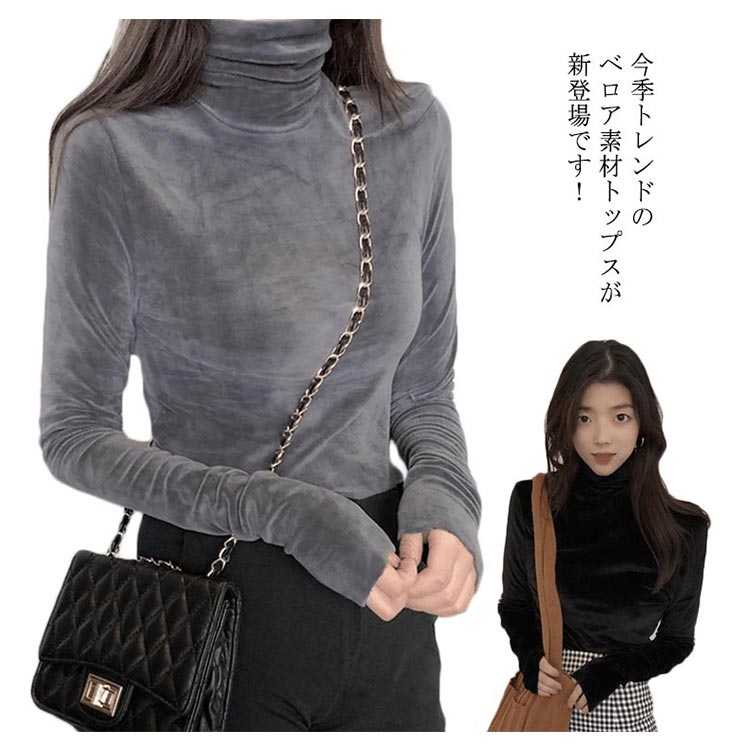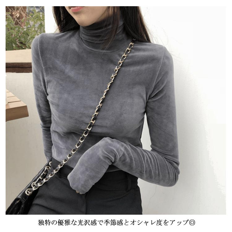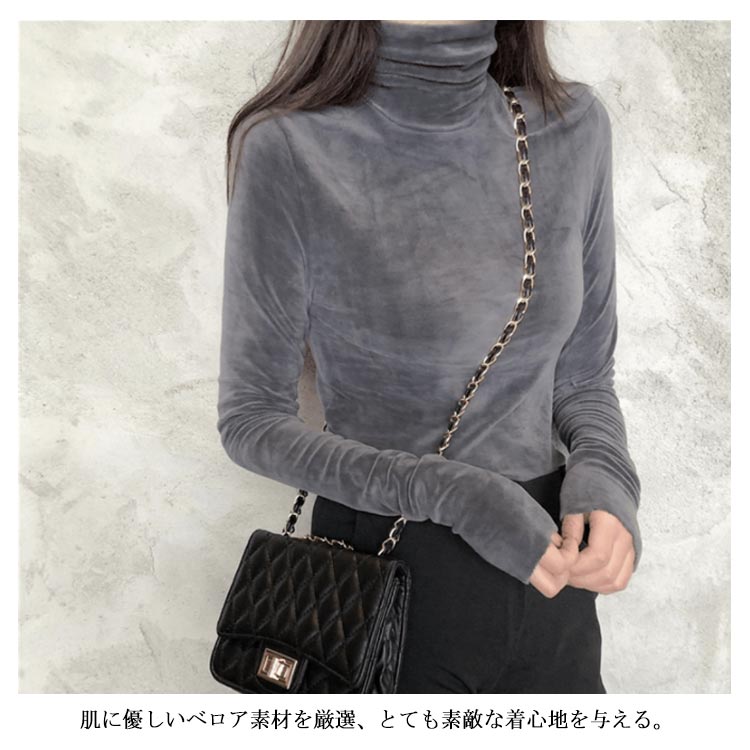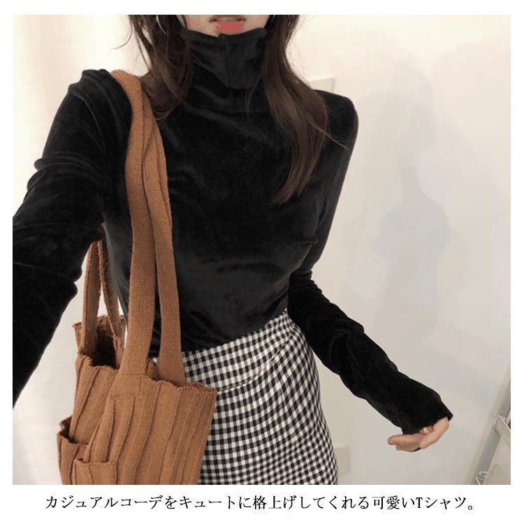 Tシャツ 長袖 カットソー ベロア レディース ハイネック トップス インナー 着痩せ 体型カバー 柔らかい 大きいサイズ お洒落 無地 秋冬