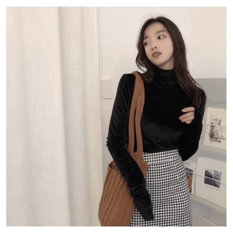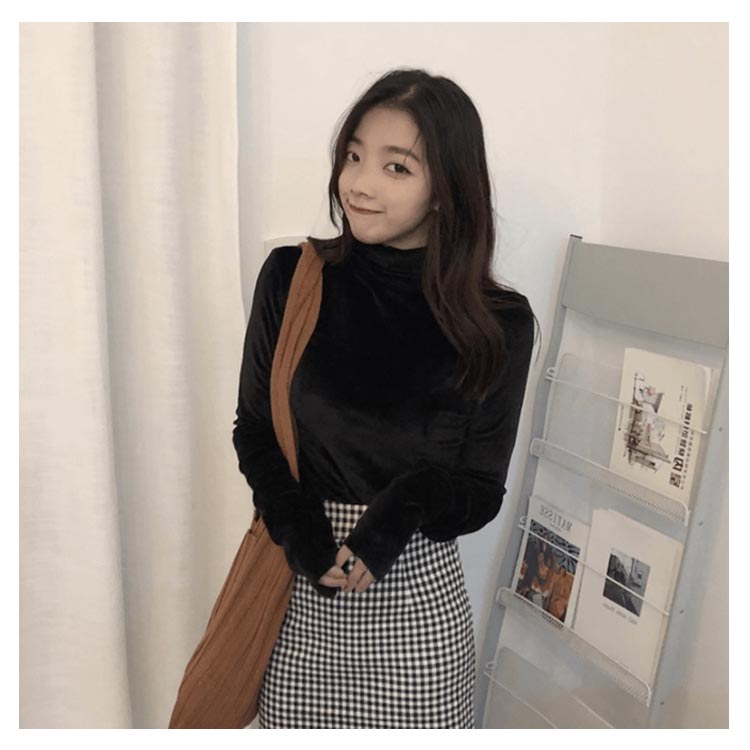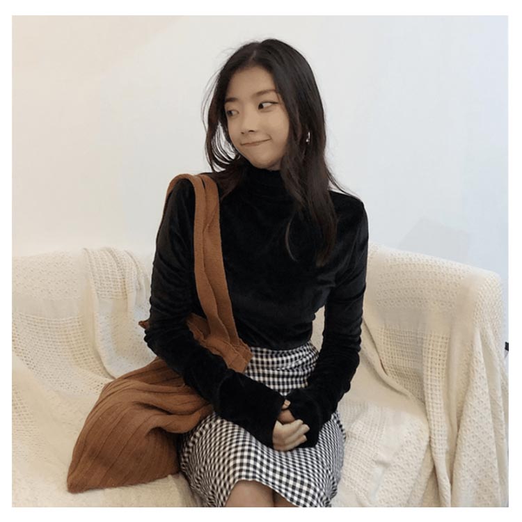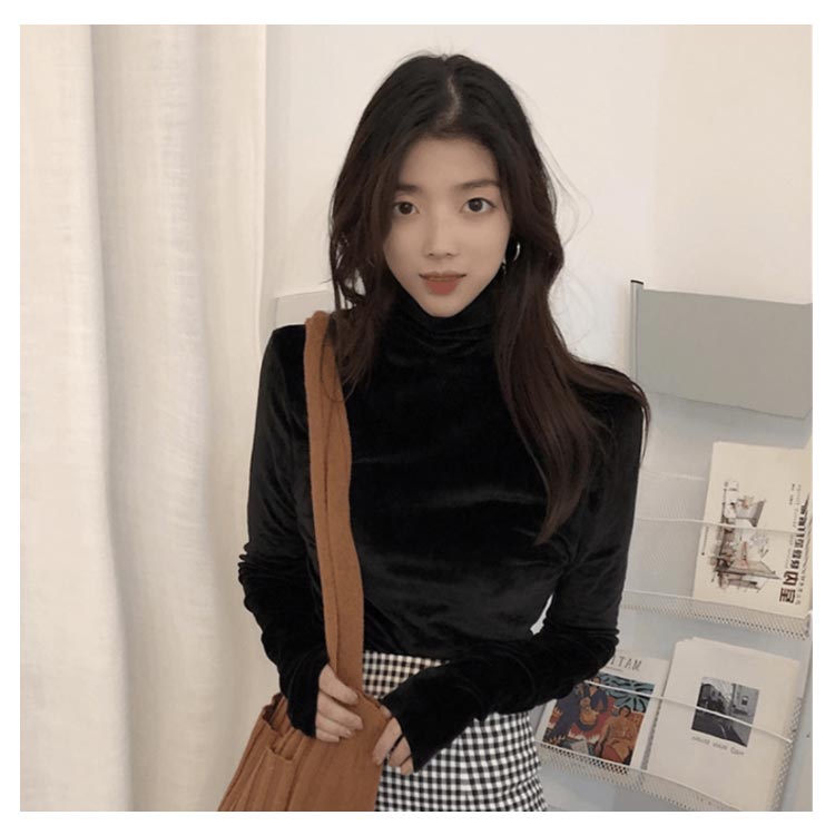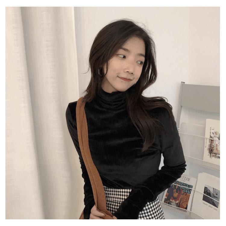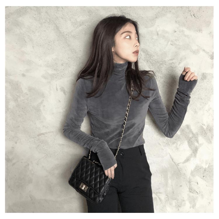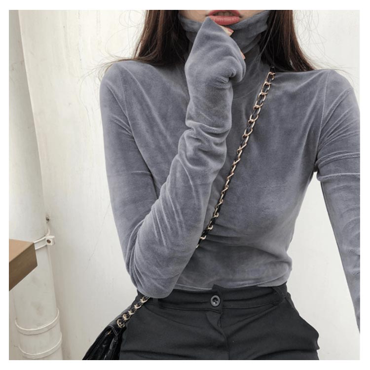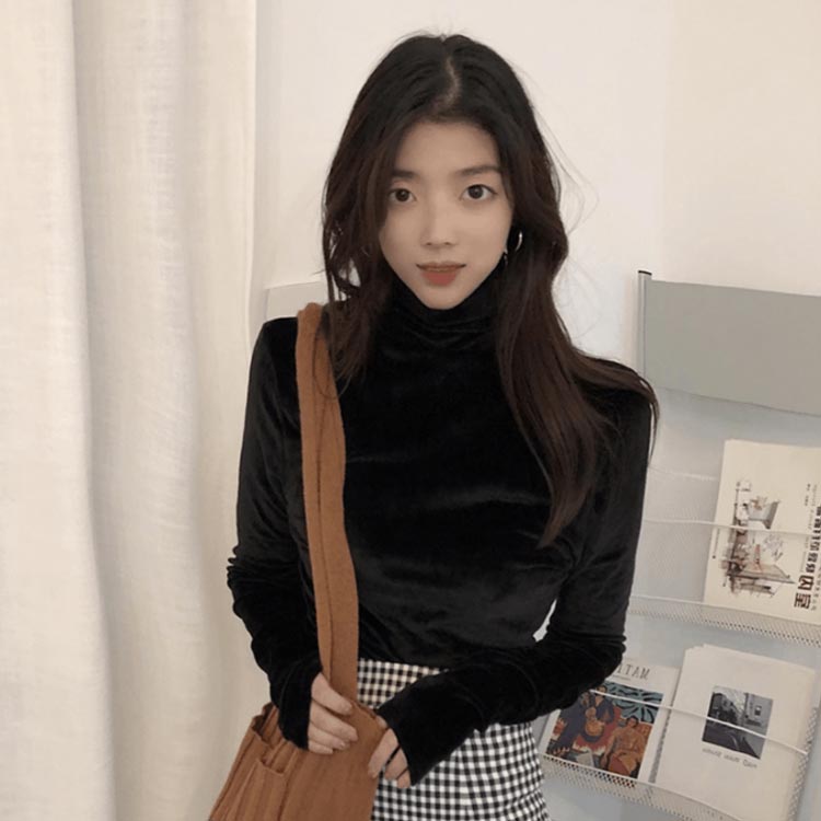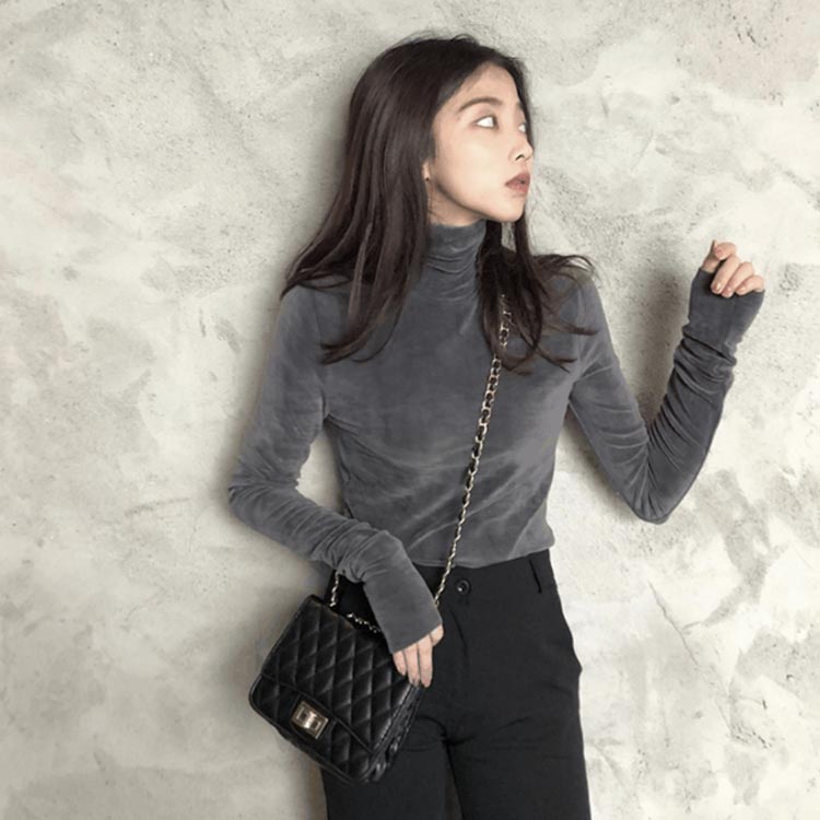 Tシャツ 長袖 カットソー ベロア レディース ハイネック トップス インナー 着痩せ 体型カバー 柔らかい 大きいサイズ お洒落 無地 秋冬