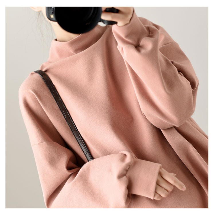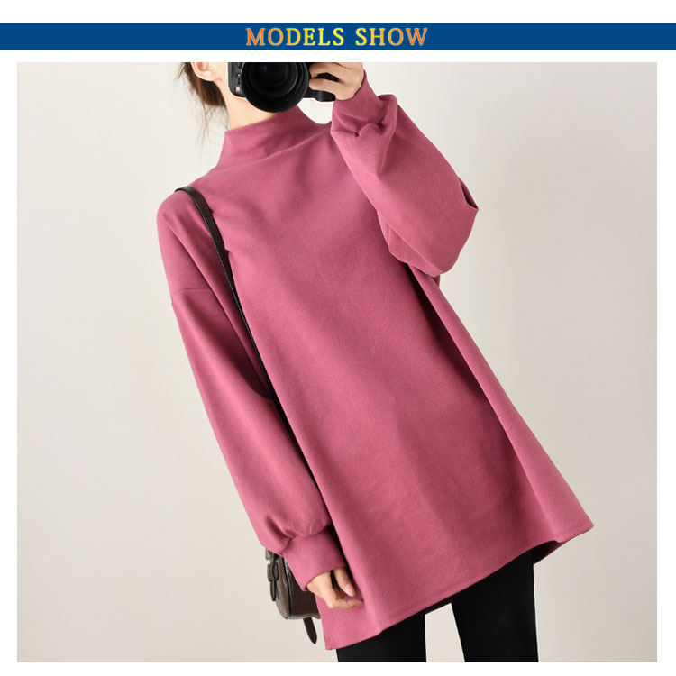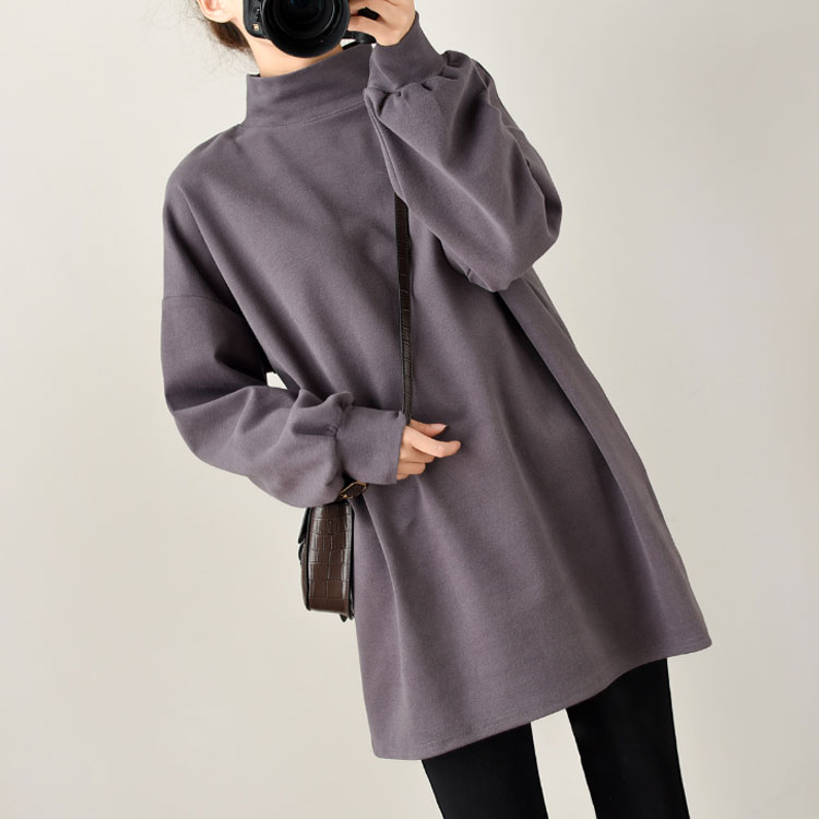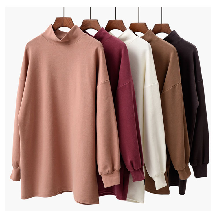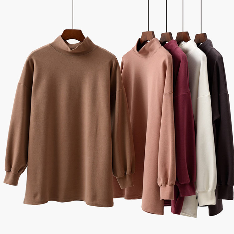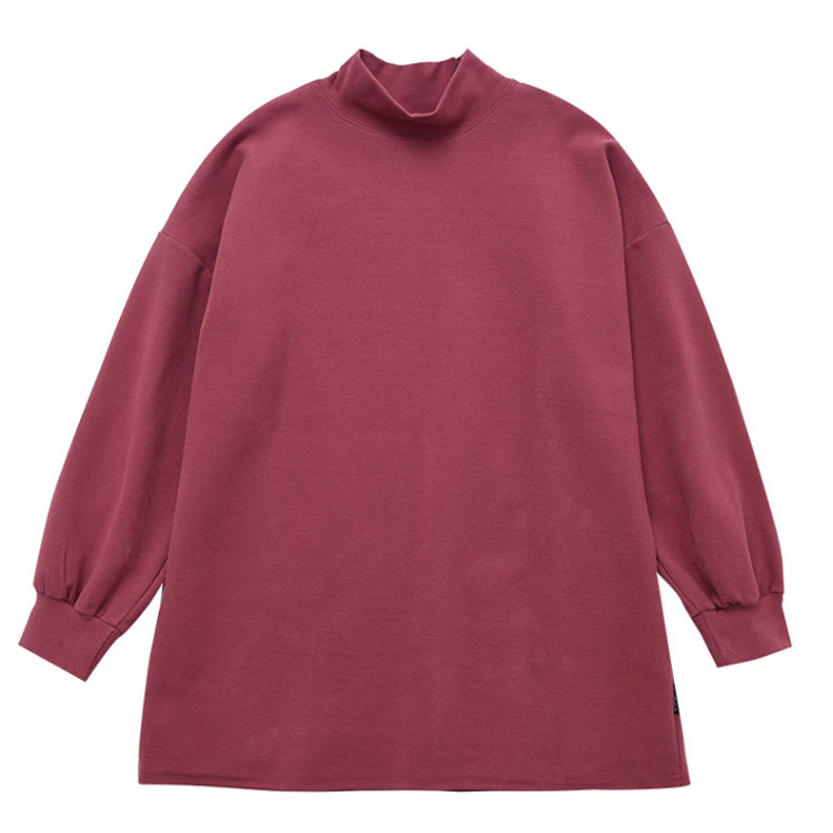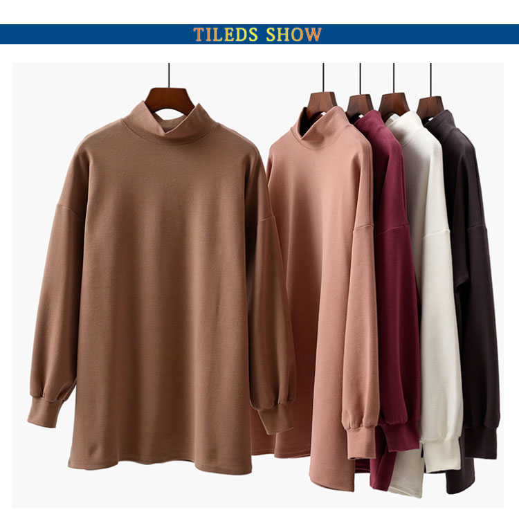 Tシャツ カットソー タイトルネック トップス ブルオーバー ロング丈 レディース 長袖 シンプル カラバリ 無地 秋冬物 厚手 お洒落 体型カバー 厚手