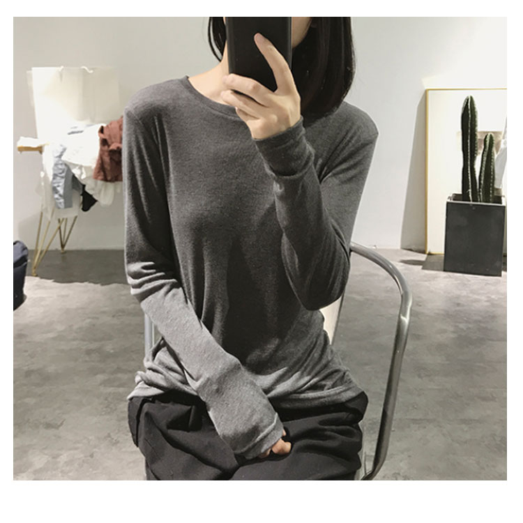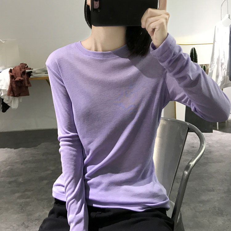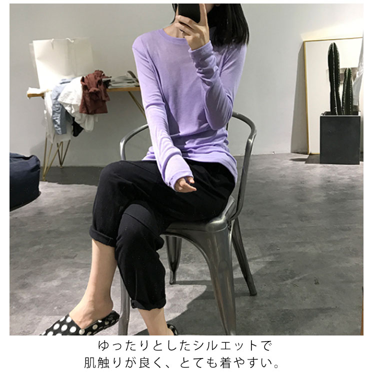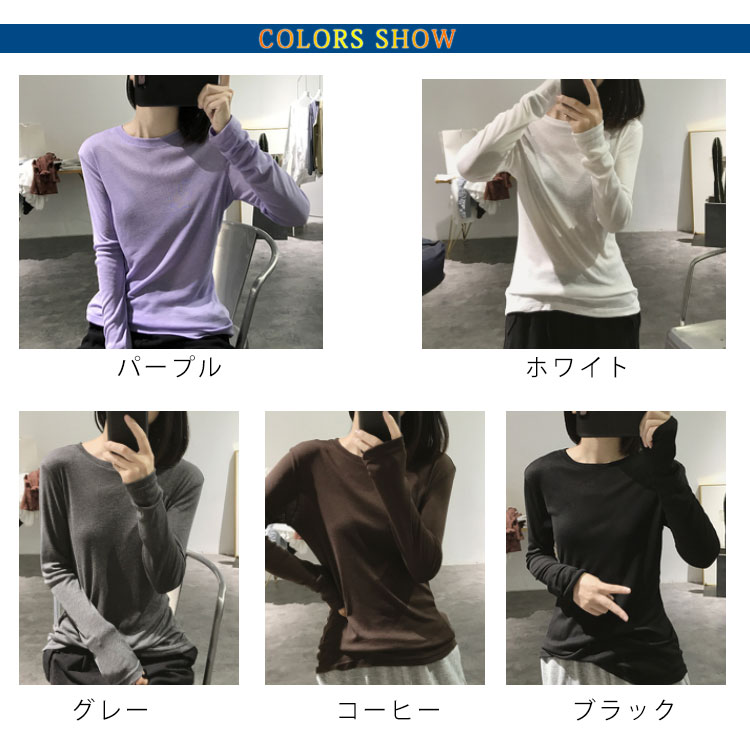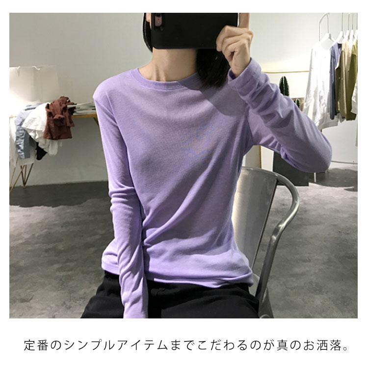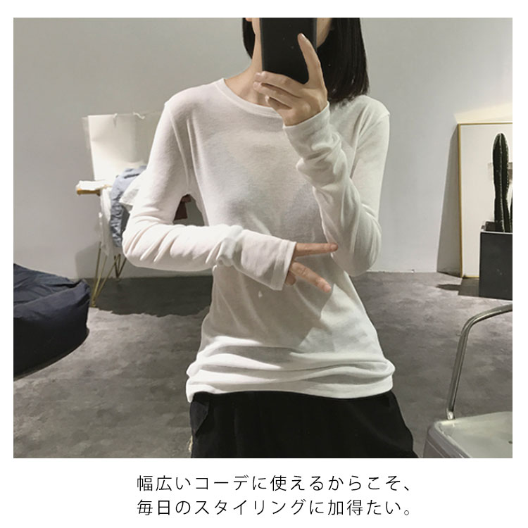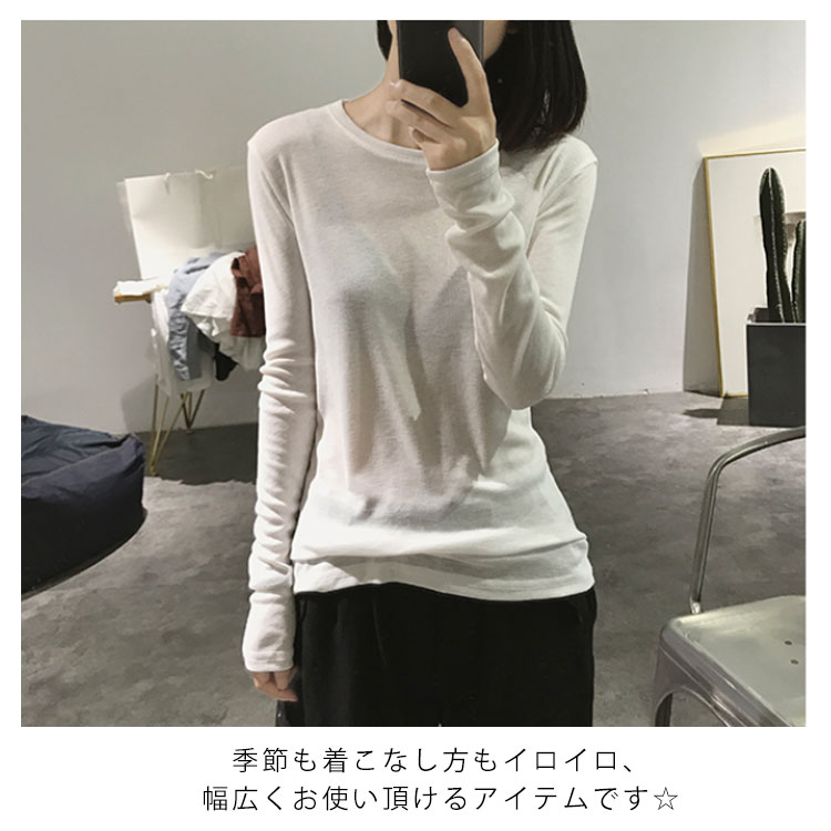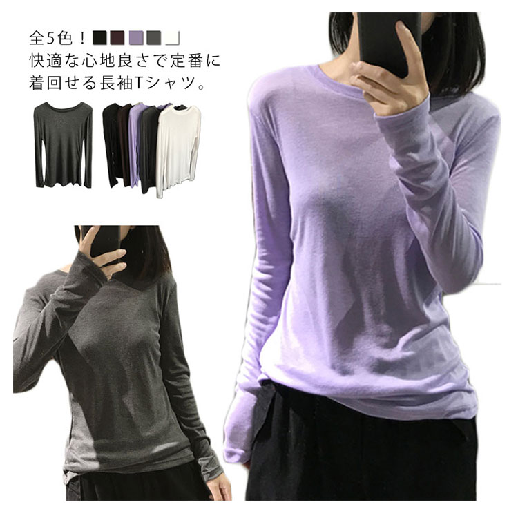 Tシャツ トップス カットソー ラウンドネック 長袖 無地 レディース ストレッチ 春秋冬 インナー 着痩せ シンプル キレイめ お洒落