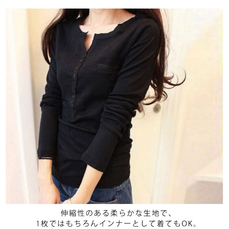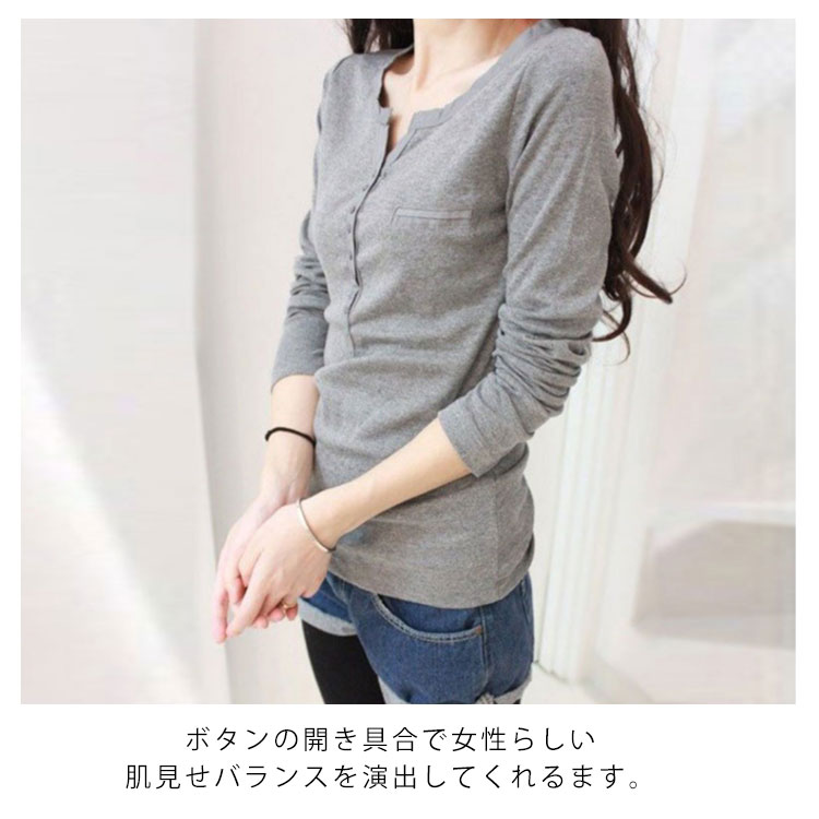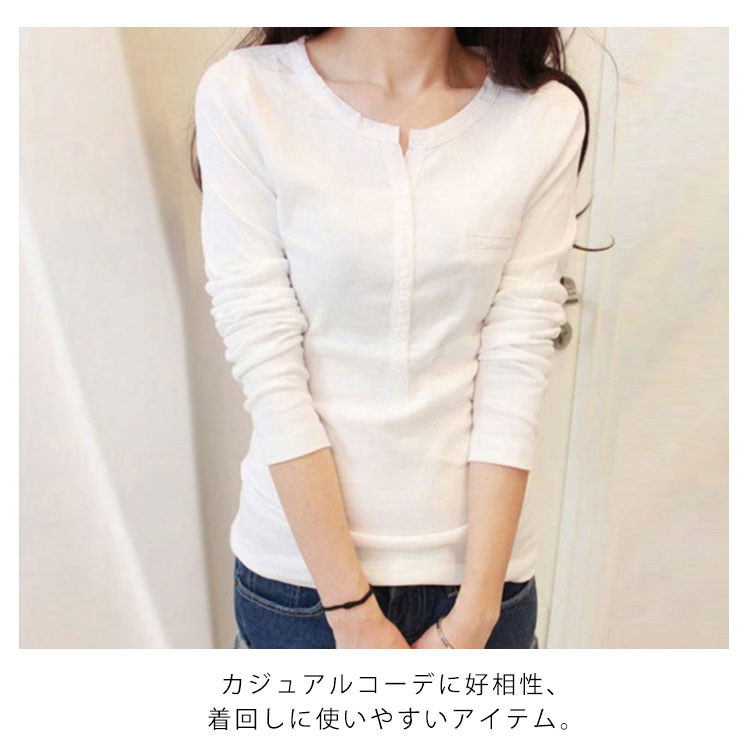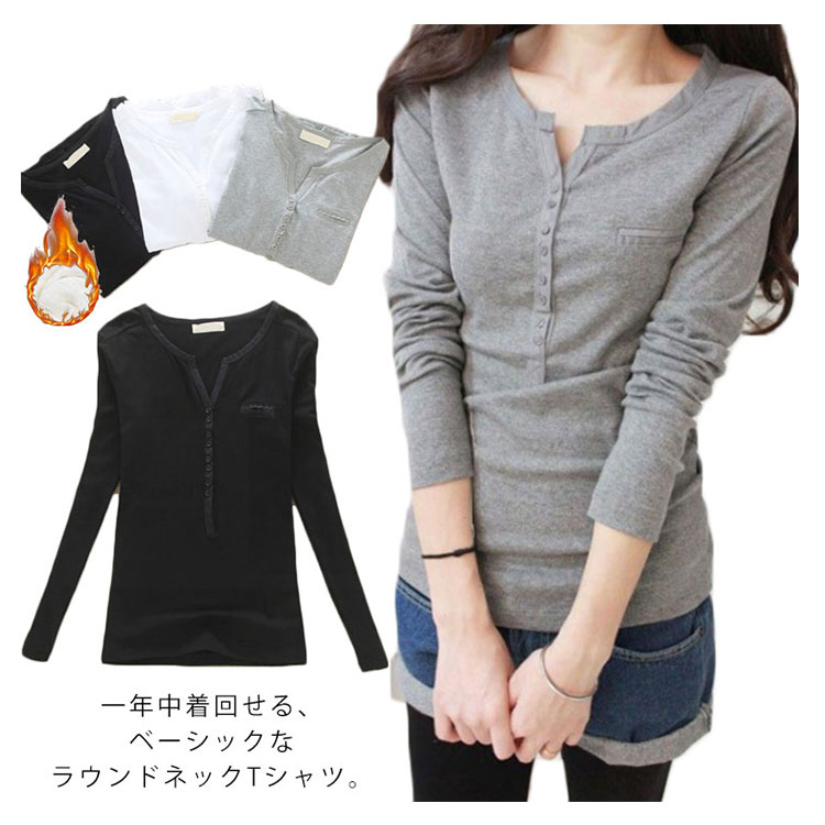| 一年中着回せる、ベーシックなラウンドネックTシャツ。 ボタンの開き具合で女性らしい肌見せバランスを演出してくれるます。 伸縮性のある柔らかな生地で、1枚ではもちろんインナーとして着てもOK。 キレイシルエットでスタイルUPしちゃいましょう♪ カジュアルコーデに好相性、着回しに使いやすいアイテム。 | |