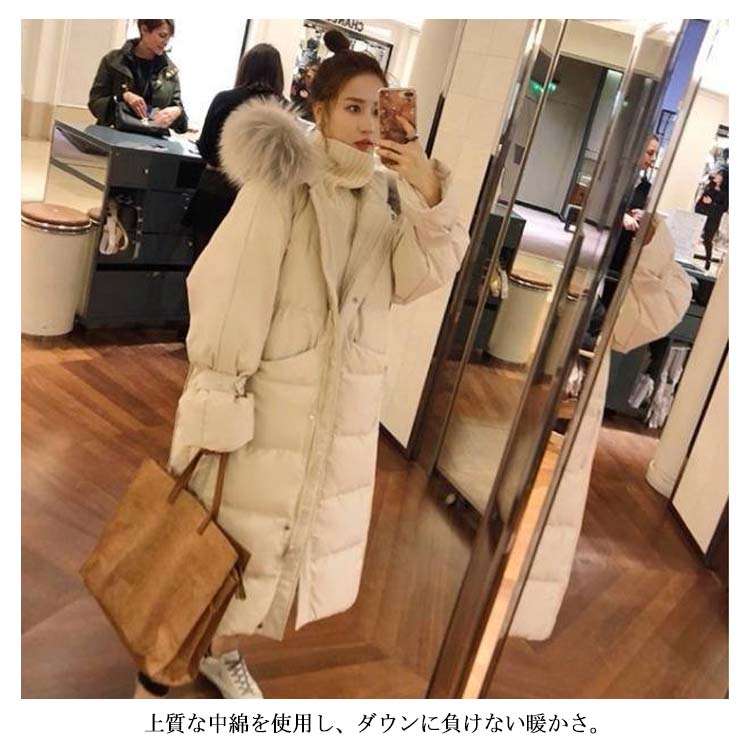 中綿コート フード付き ロングコート ブルゾン レディース アウター ロング丈 ポケット付き 体型カバー ファー付き 着痩せ 無地 秋冬物 お洒落 防寒