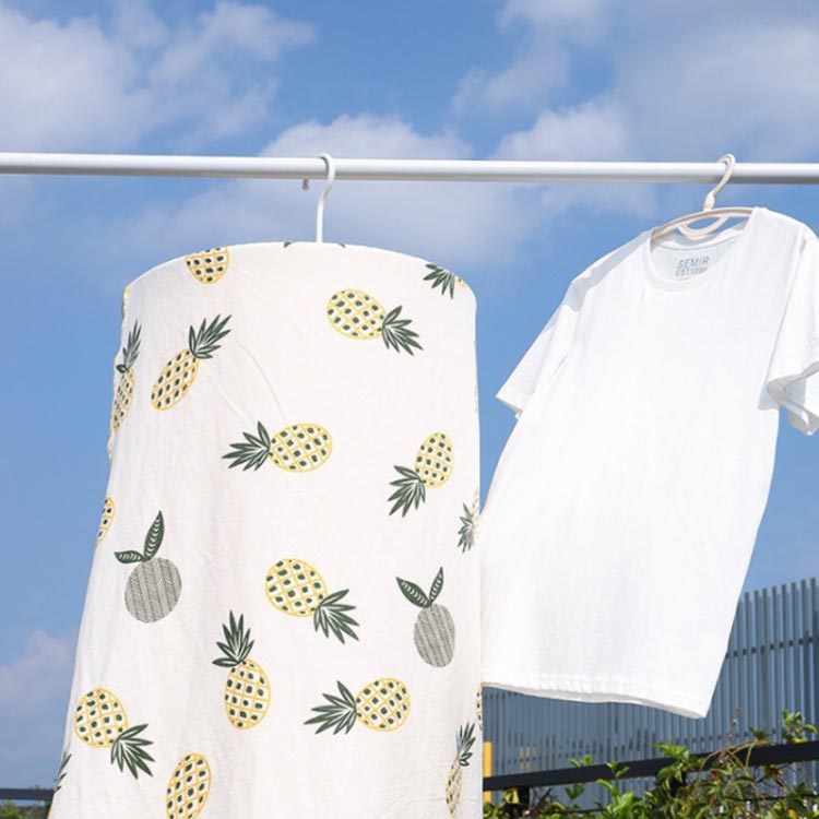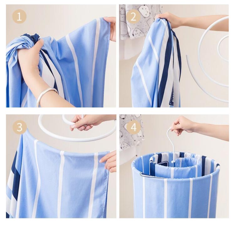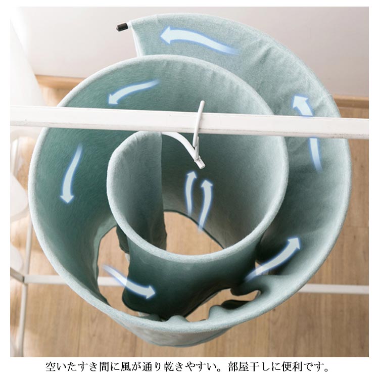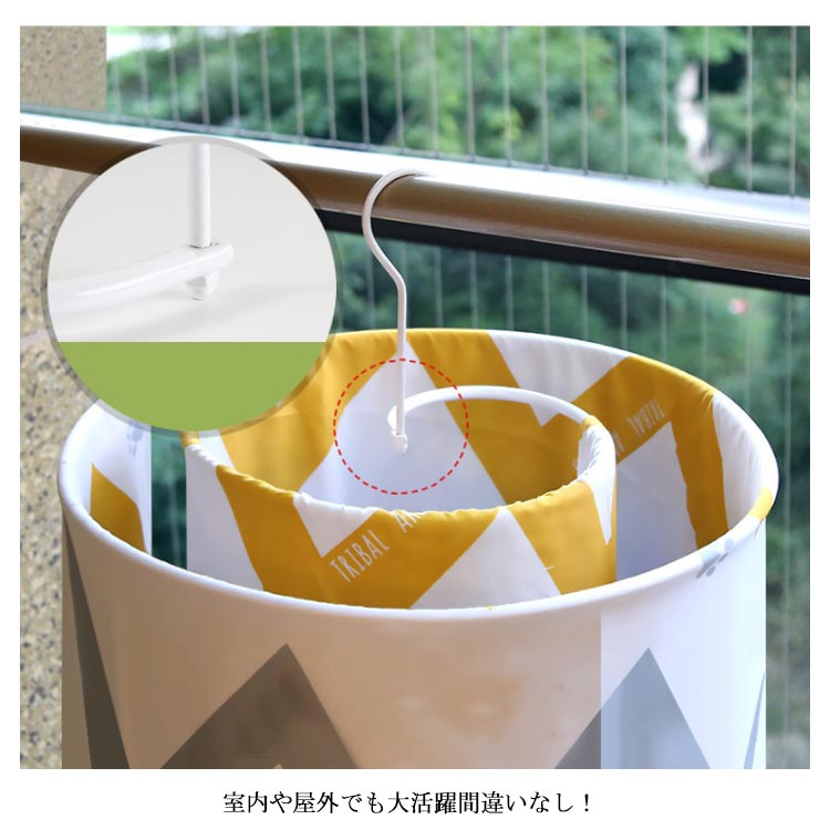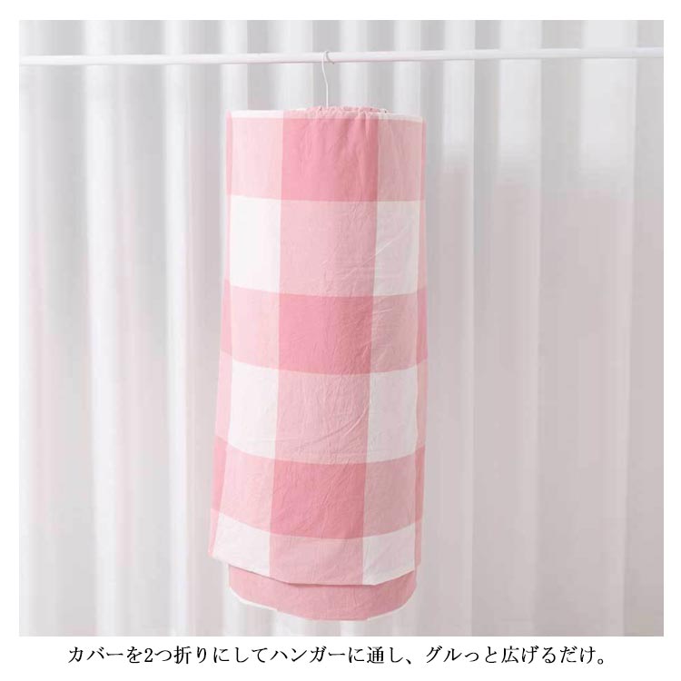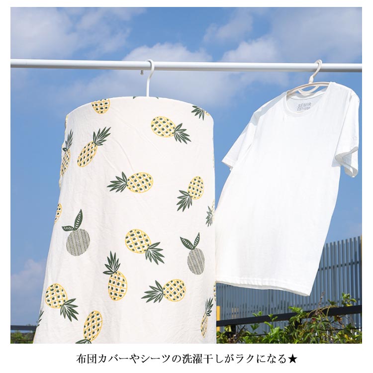 | 布団カバーやシーツの洗濯干しがラクになる★ 丈夫な合金構造のハンガーなので、耐久性にも優れています。 カバーを2つ折りにしてハンガーに通し、グルっと広げるだけ。 空いたすき間に風が通り乾きやすい。部屋干しに便利です。 | |