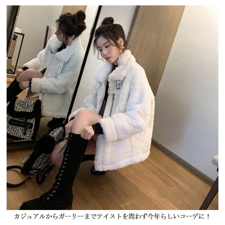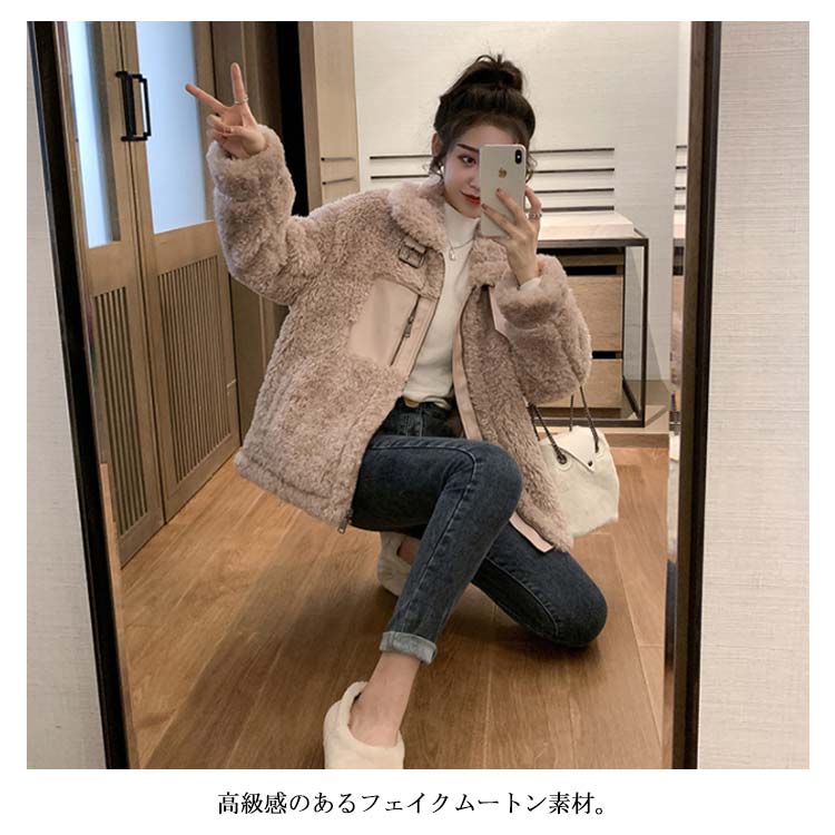 ムートンコート ショート丈 レディース フェイク ムートン コート もこもこ コート 毛皮 コート ボア コート ムートン コート ファー コート アウター 防寒 秋冬 冬コート