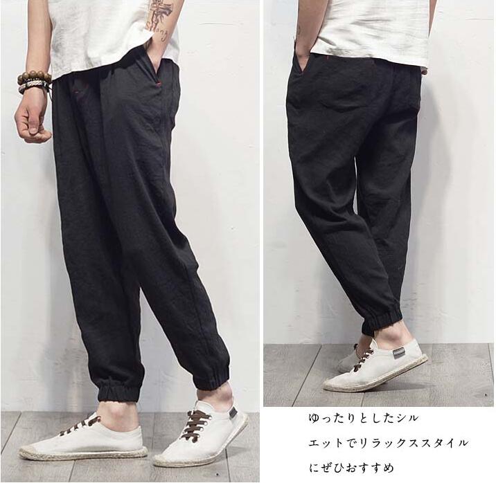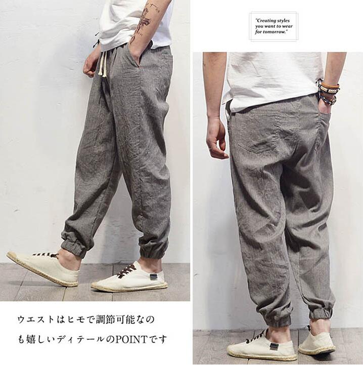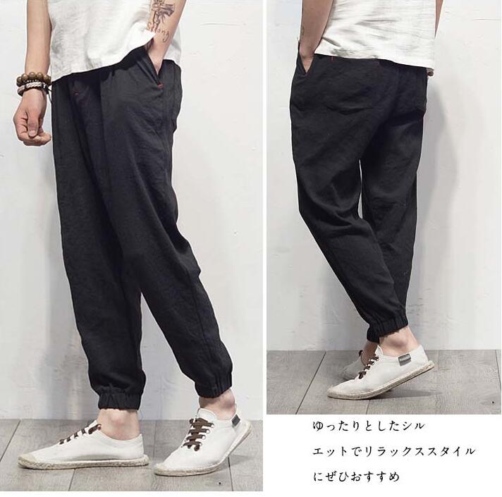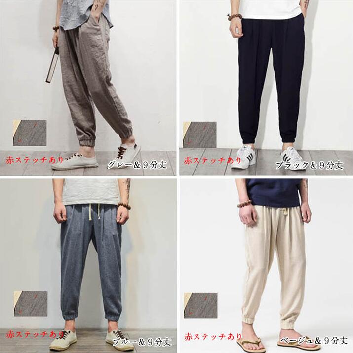 サルエルパンツ 9分丈 パンツ 綿麻 パンツ リネン綿麻 サルエルパンツ 9分丈 パンツ パンツ リネン リラックスパンツ ロングパンツ テーパードパンツ 春夏 メンズ