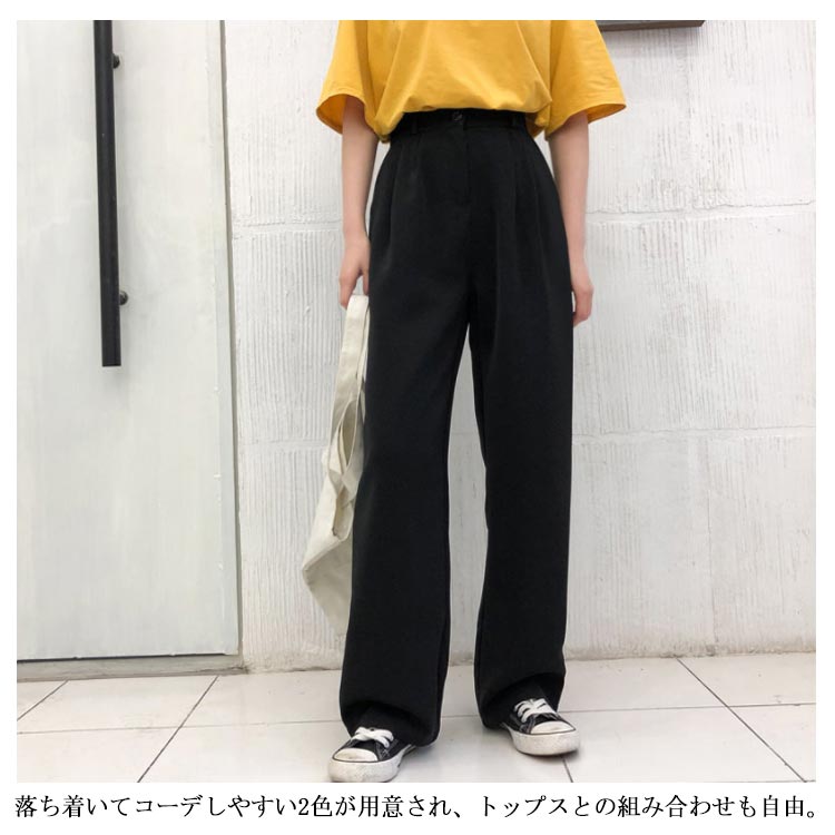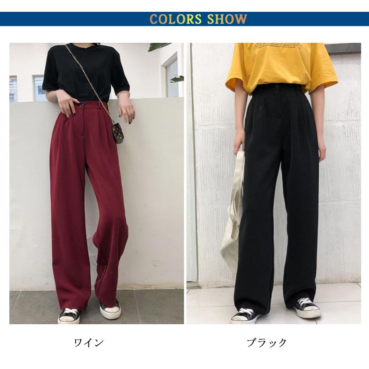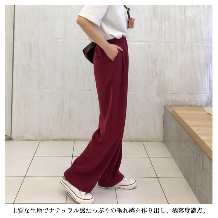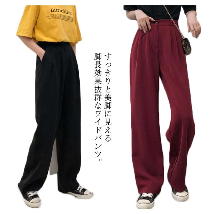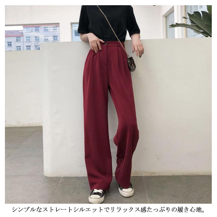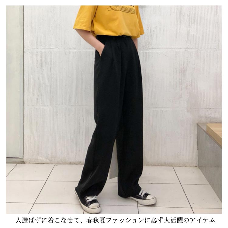 ワイドパンツ スーツパンツ スラックス ロングパンツ レディース ボトムス 長ズボン 体型カバー ビッグサイズ シンプル ストレート 無地 韓国ファション お洒落