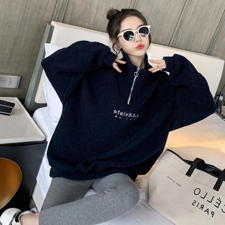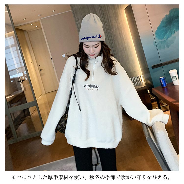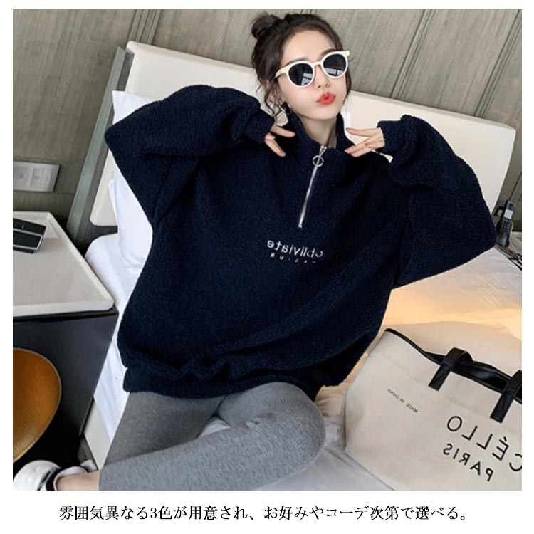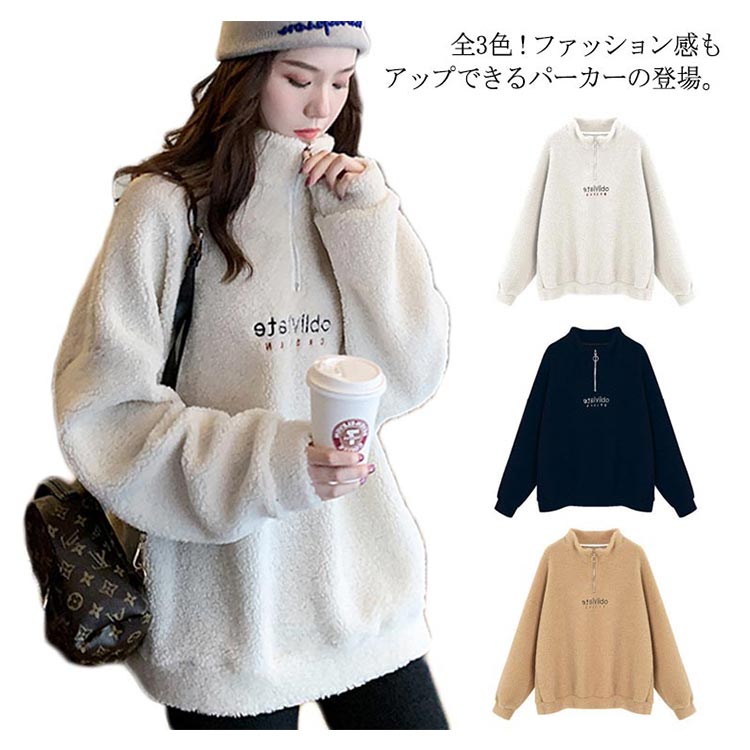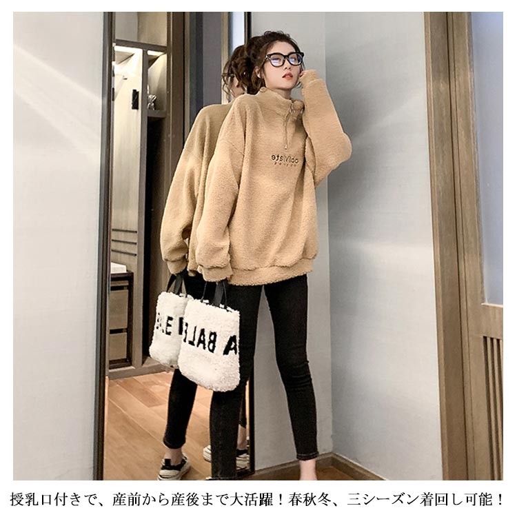 パーカー レディース モコモコ トップス プルオーバー ゆったり ジッパー お洒落 長袖 アウター 体型カバー 秋冬物 授乳用 マタニティ シンプル 授乳口付き 妊婦服