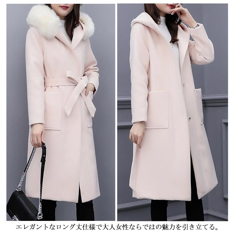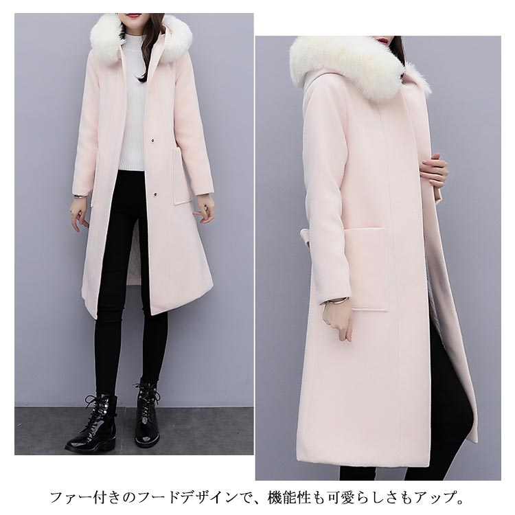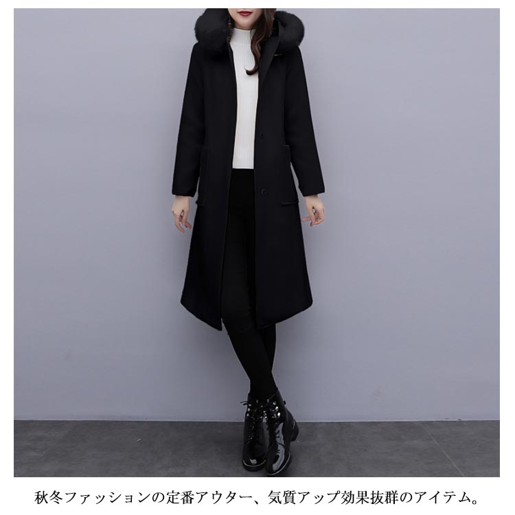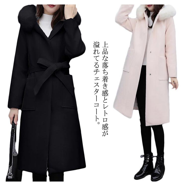 チェスターコート レディース ロングコート 中綿入り ファー付き フード付き きれいめ 無地 オーバーコート 上品 ラシャ風 アウター 通勤 厚手 着痩せ お洒落