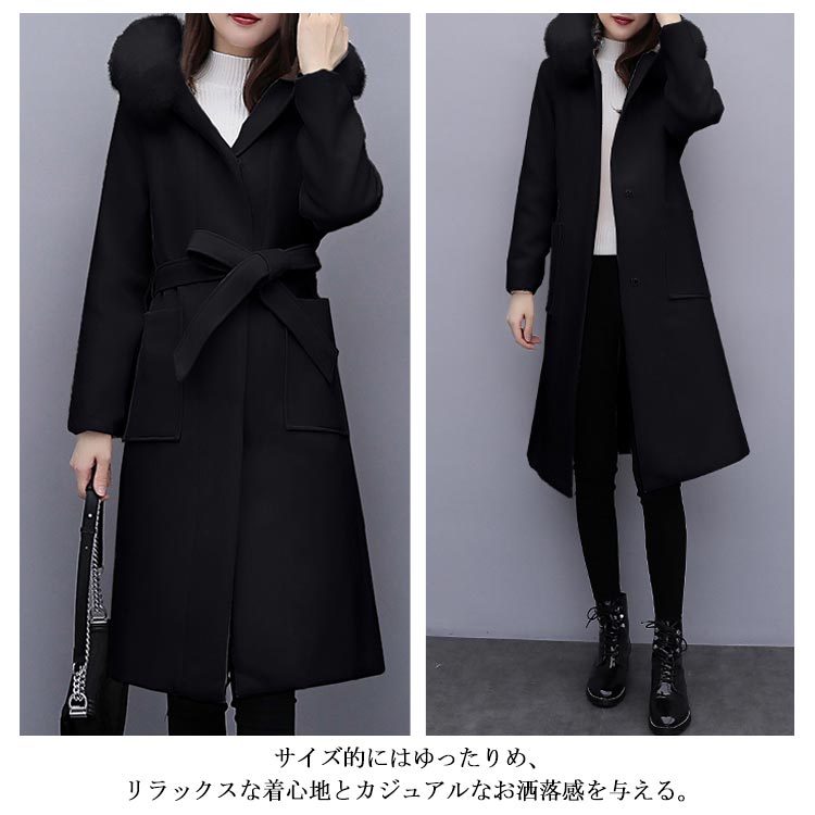 | 上品な落ち着き感とレトロ感が溢れてるチェスターコート。 エレガントなロング丈仕様で大人女性ならではの魅力を引き立てる。 ファー付きのフードデザインで、機能性も可愛らしさもアップ。 サイズ的にはゆったりめ、リラックスな着心地とカジュアルなお洒落感を与える。 秋冬ファッションの定番アウター、気質アップ効果抜群のアイテム。 | |