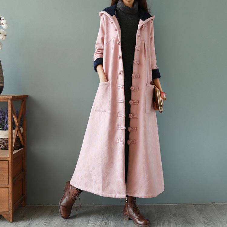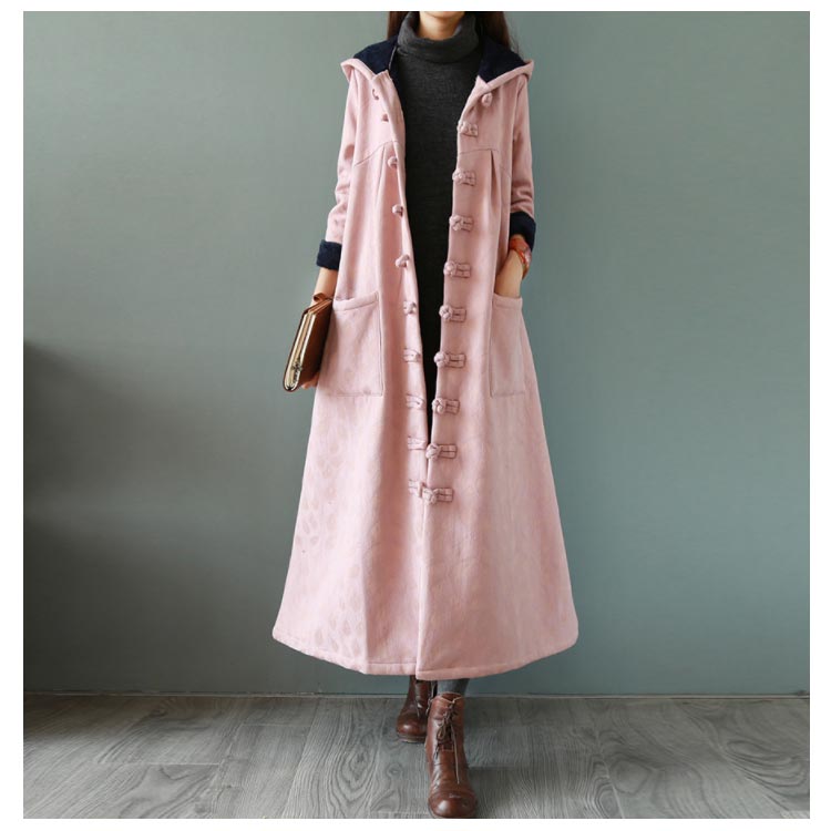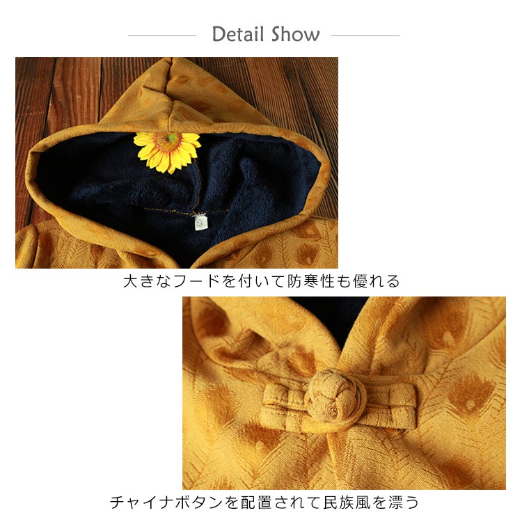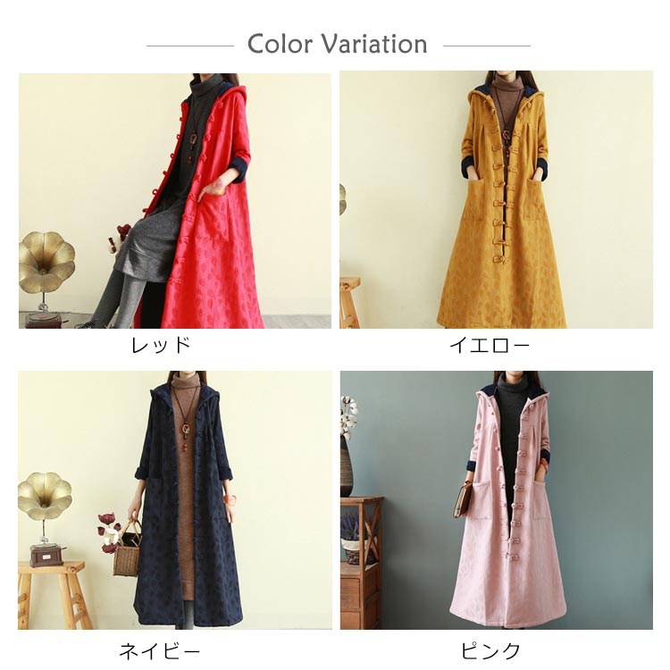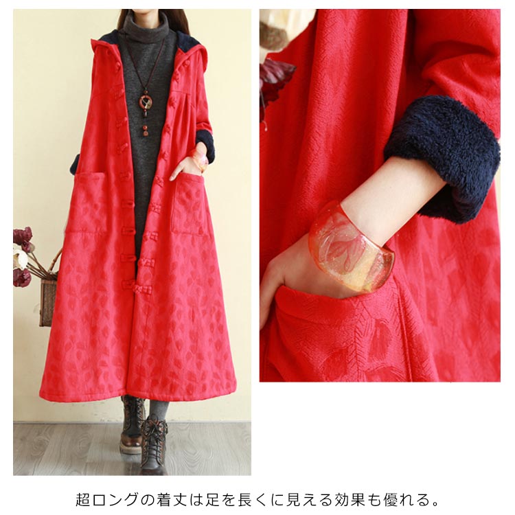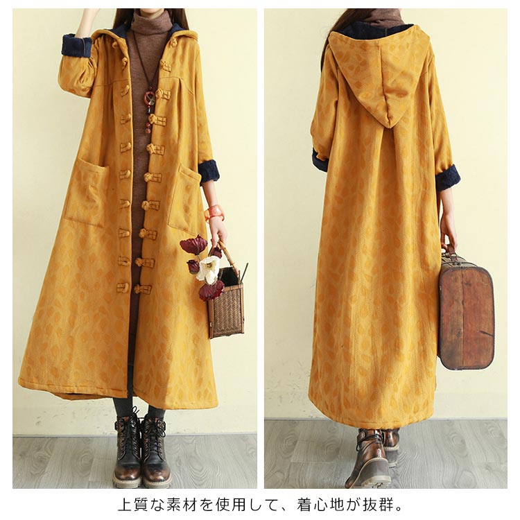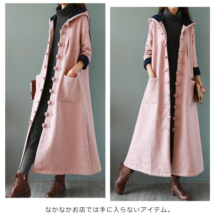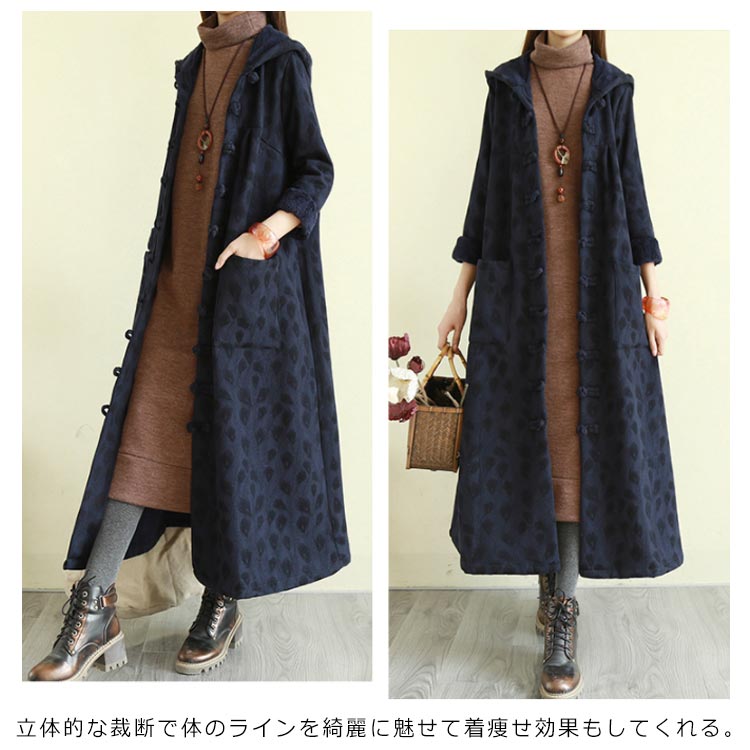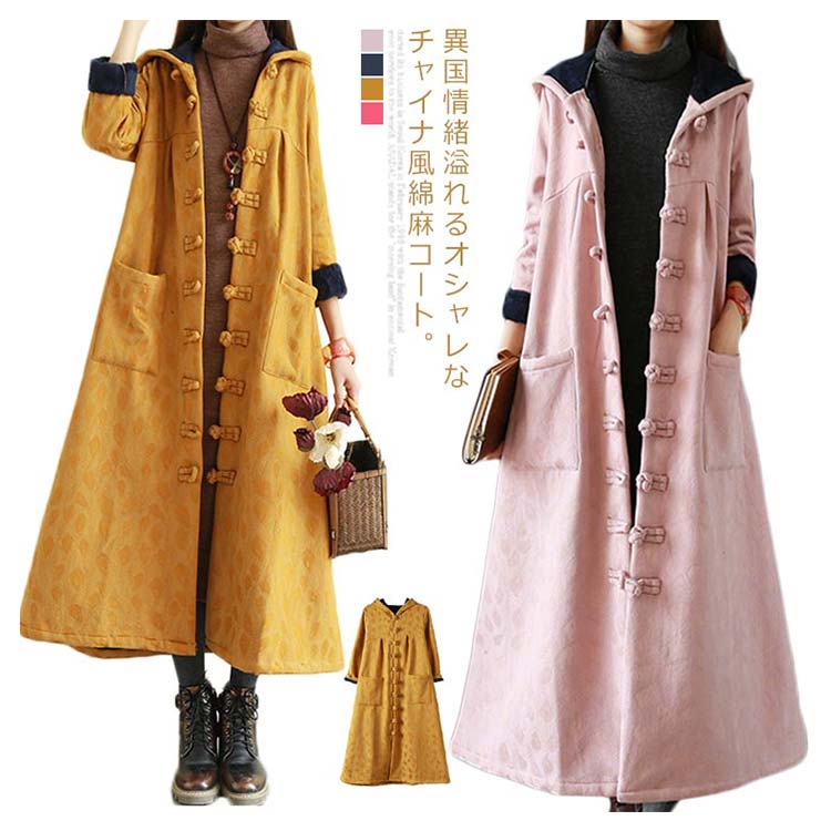 綿麻コート ロング フレアコート レディース 超ロングコート 裏起毛コート エスニック チャイナ風コート 裏ボア 民族風 厚手コート ビッグシルエット 体型カバー