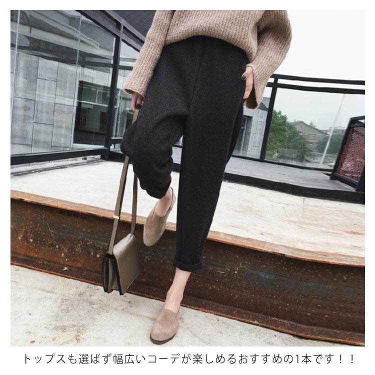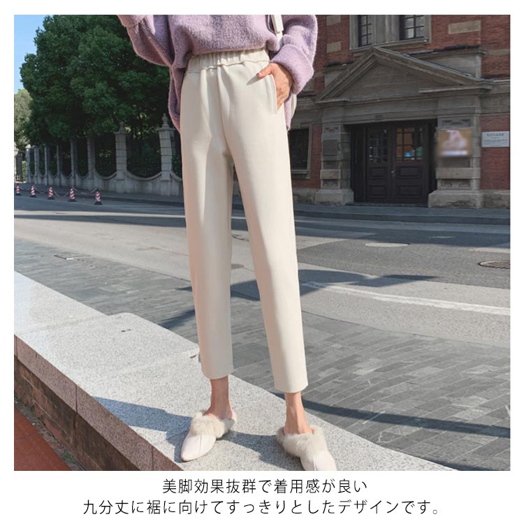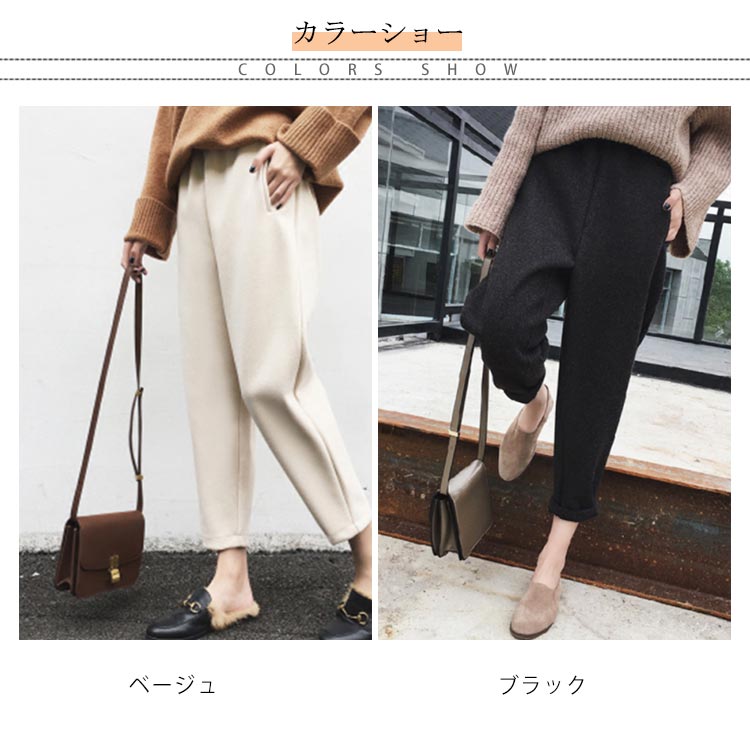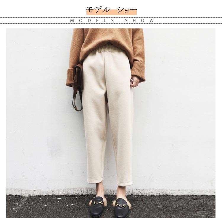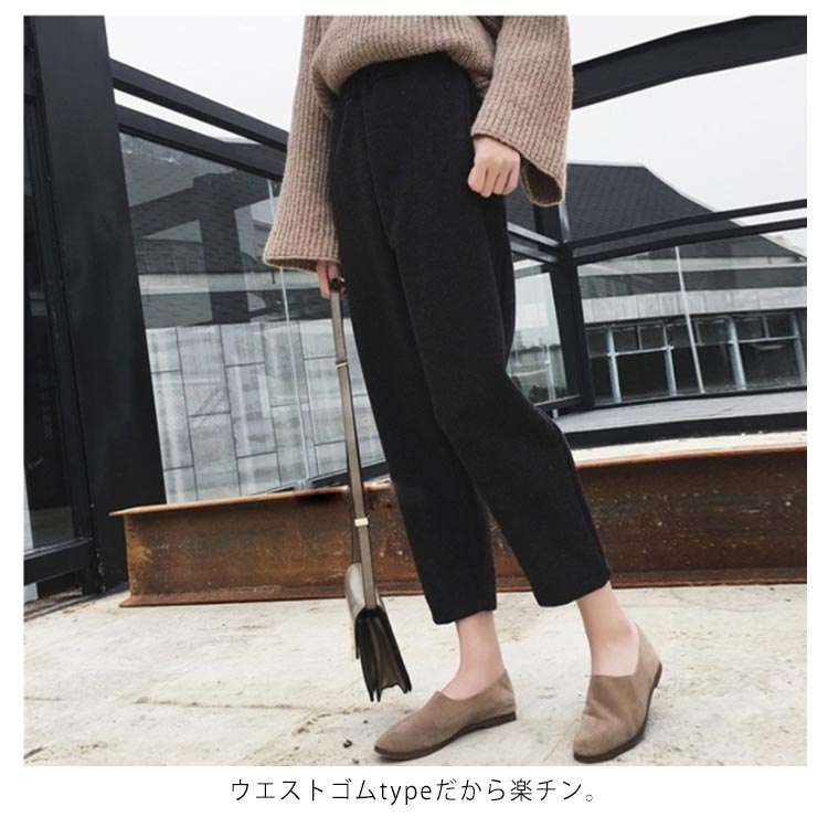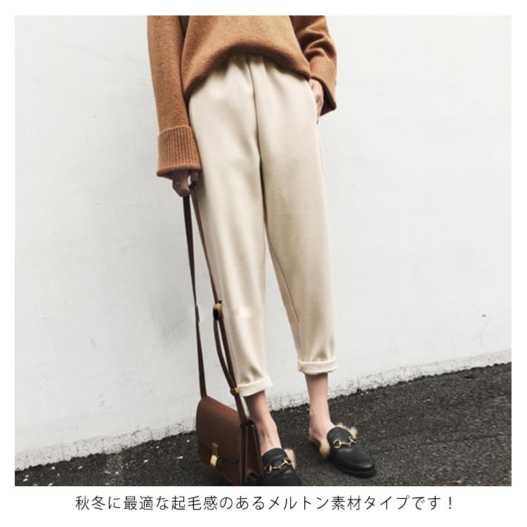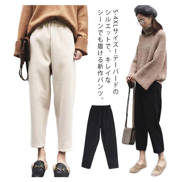| S-4XLサイズ!テーパードのシルエットで、キレイなシーンでも履ける新作パンツ。 美脚効果抜群で着用感が良い九分丈に 裾に向けてすっきりとしたデザインです。 秋冬に最適な起毛感のあるメルトン素材タイプです! ウエストゴムtypeだから楽チン。 ヒールでキレイめに、話題のスリッポンでカジュアルに…♪ トップスも選ばず幅広いコーデが楽しめるおすすめの1本です!! | |