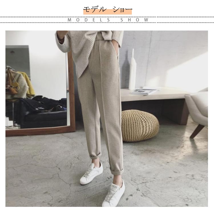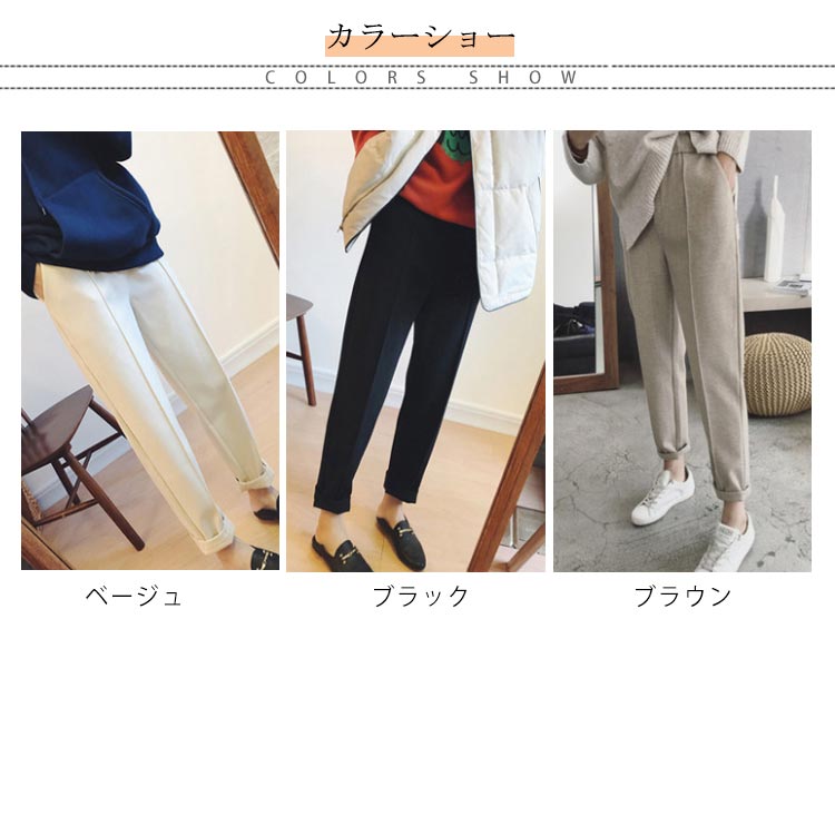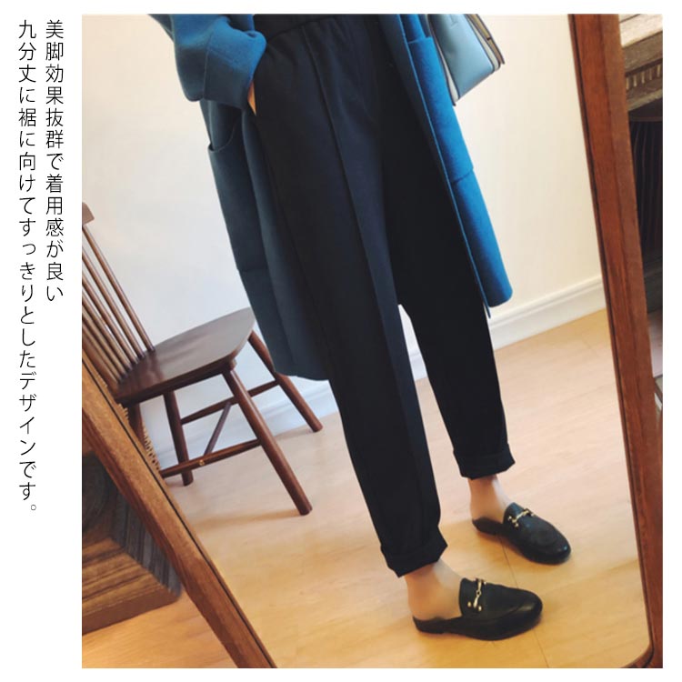 全3色×7サイズ!テーパードパンツ レディース 秋冬 ボトムス 9分丈 サルエルパンツ テーパード パンツ ウエストゴム カジュアル キレイめ 厚手 無地 通勤 楽チン
