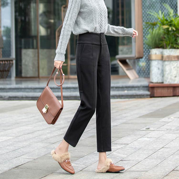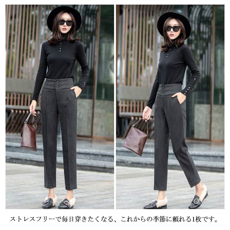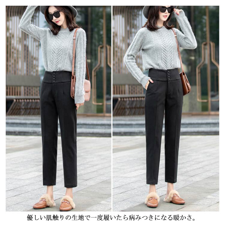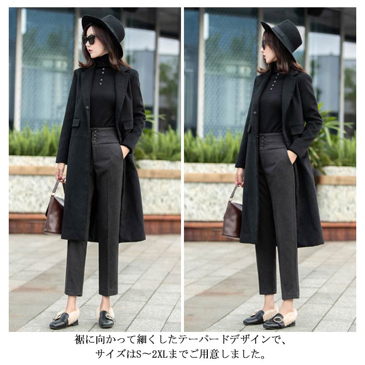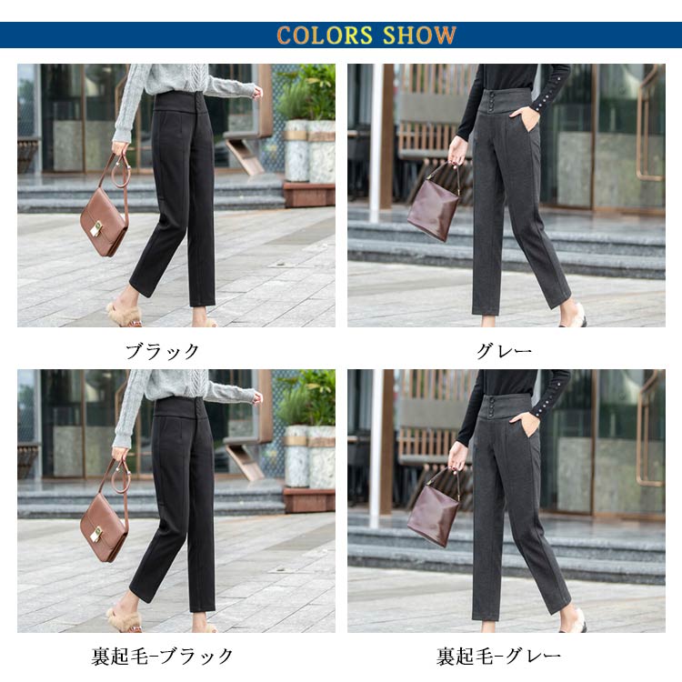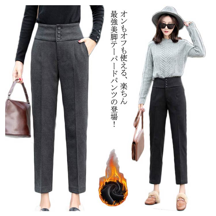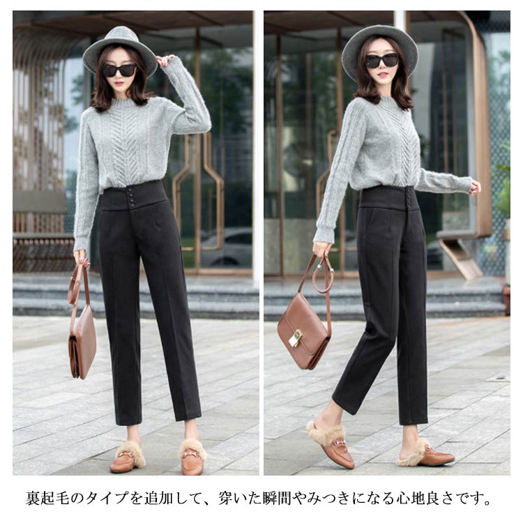 テーパードテパンツ ハイウエスト 9分丈 ボトムス レディース ロングパンツ 裏起毛 ストレート キレイめ 美脚効果 オールシーズン オフィス 通勤 厚手 ゆったり お洒落