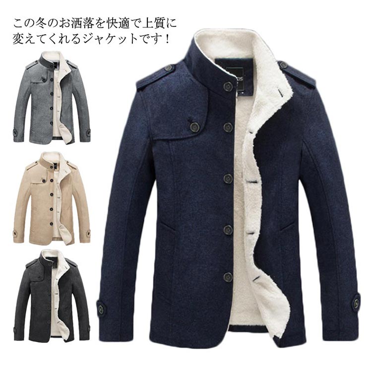 ジャケット メンズ 裏起毛 ブルゾン 裏ボア 立て襟 ジャンパー 厚手 アウター 秋冬物 防寒 防風 ボダン付き あったか メンズファッション お洒落 大きいサイズ