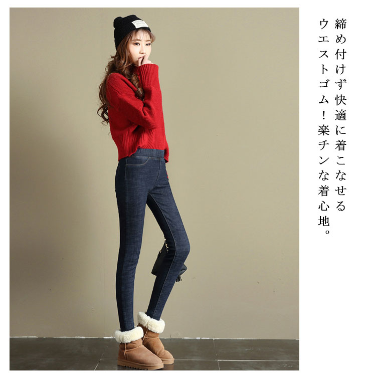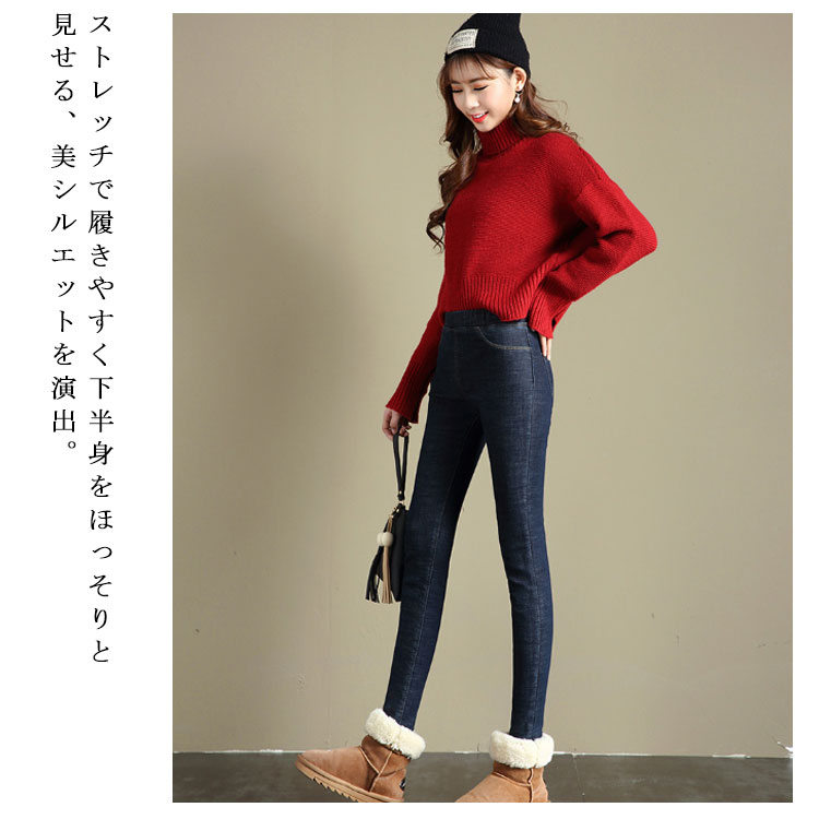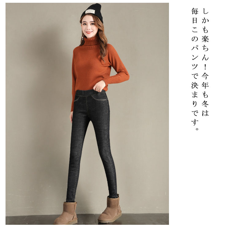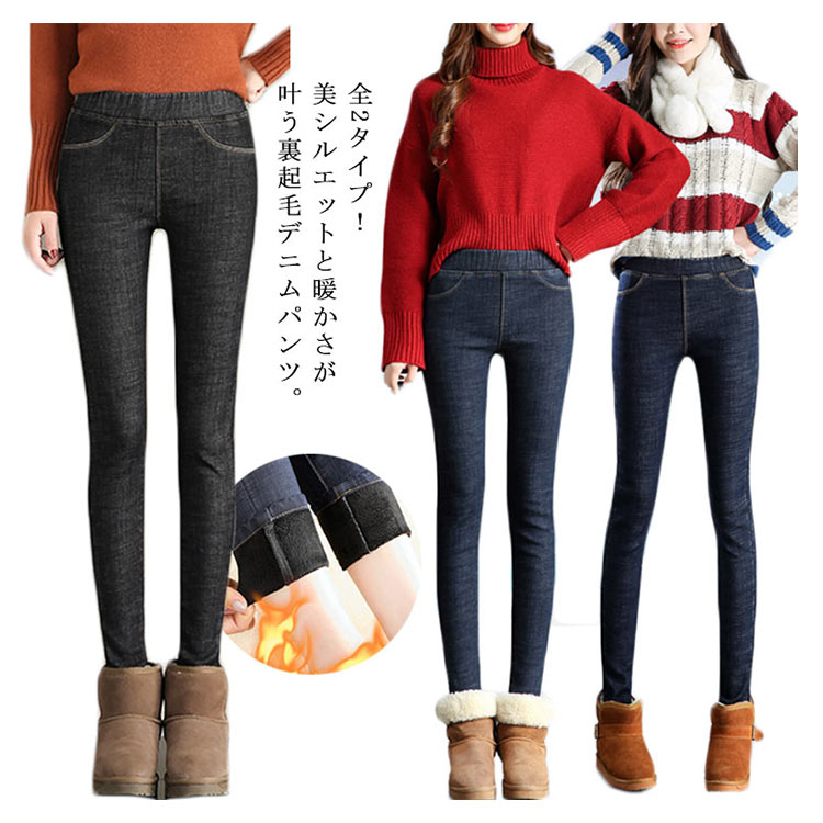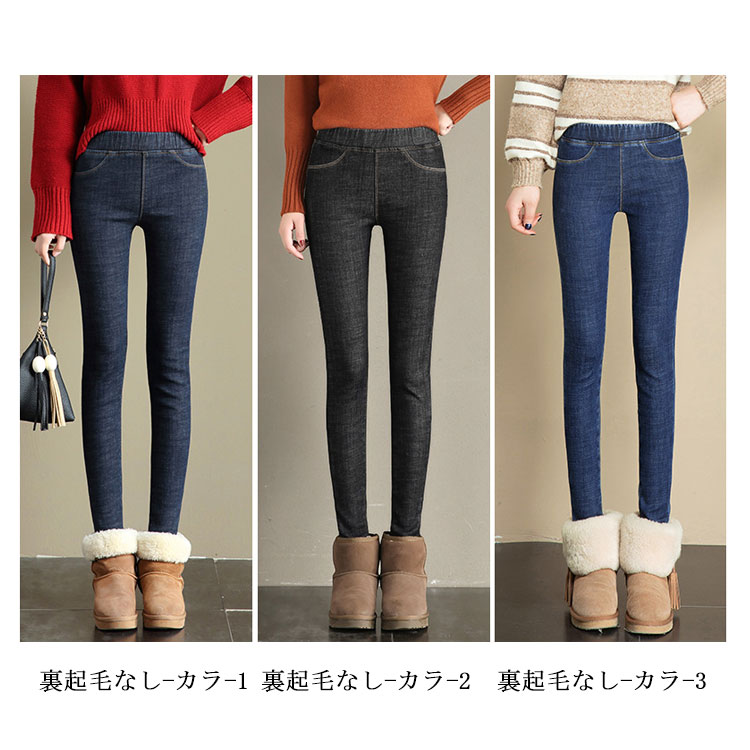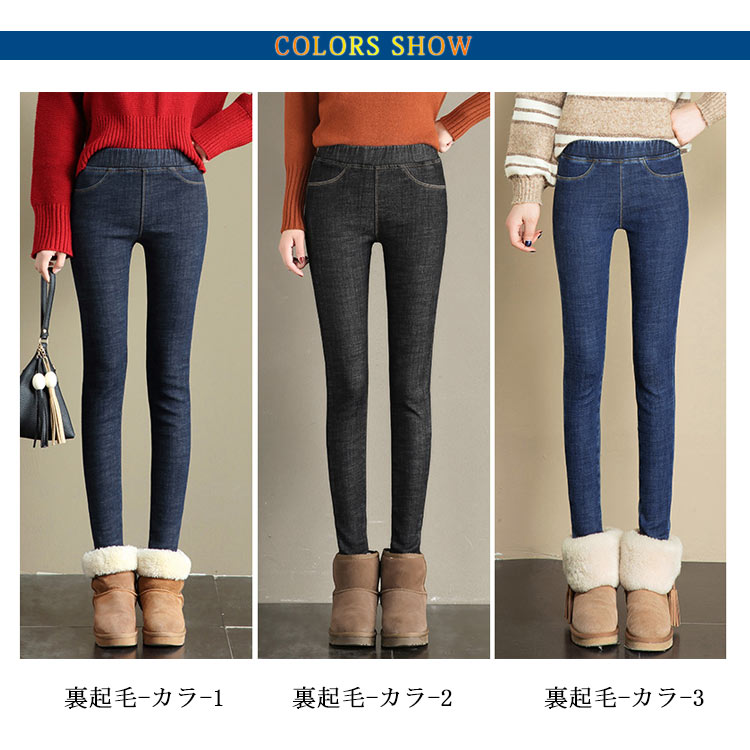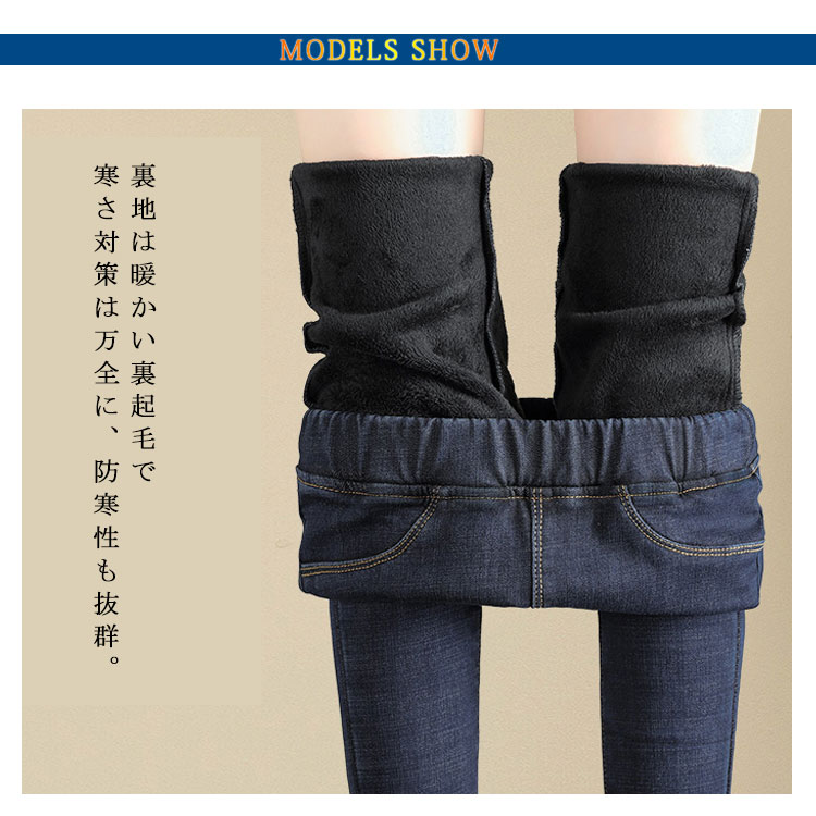 デニムパンツ 裏起毛 レディース スキニーデニム ジーンズ ロングパンツ 美脚 ハイウエスト ストレッチ 秋冬物 大きいサイズ ウエストゴム 防寒 暖かい お洒落