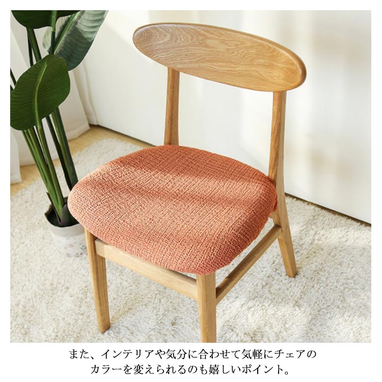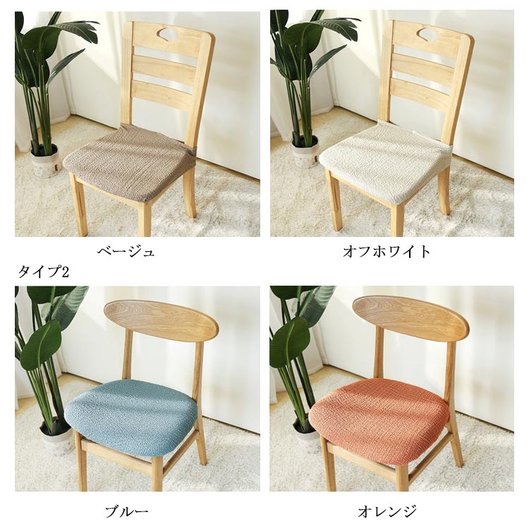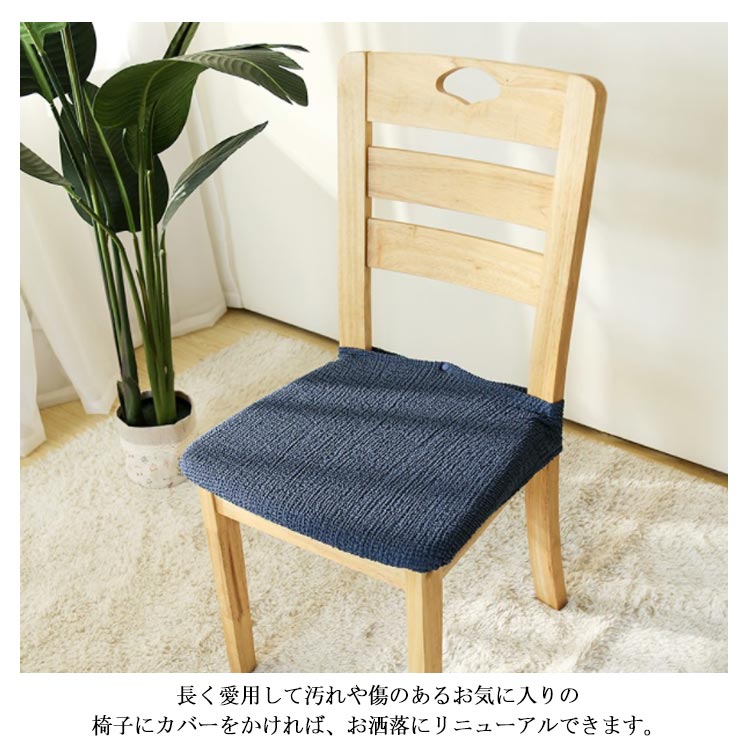 | 選べる2タイプ座面カバー。 くしゅくしゅ風合いの良い伸縮性抜群の生地で、椅子にぴったりフィット♪ 長く愛用して汚れや傷のあるお気に入りの椅子にカバーをかければ、お洒落にリニューアルできます。 また、インテリアや気分に合わせて気軽にチェアのカラーを変えられるのも嬉しいポイント。 お家での洗濯もできるからいつも清潔♪ | |