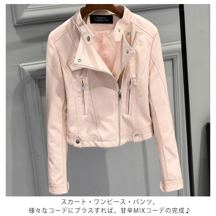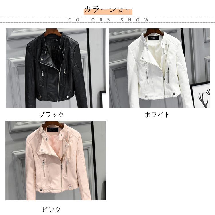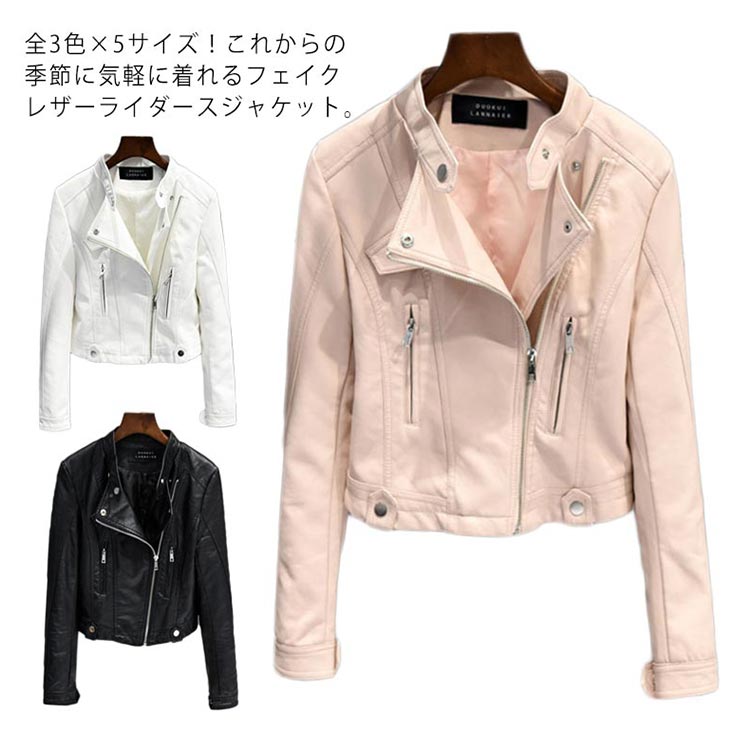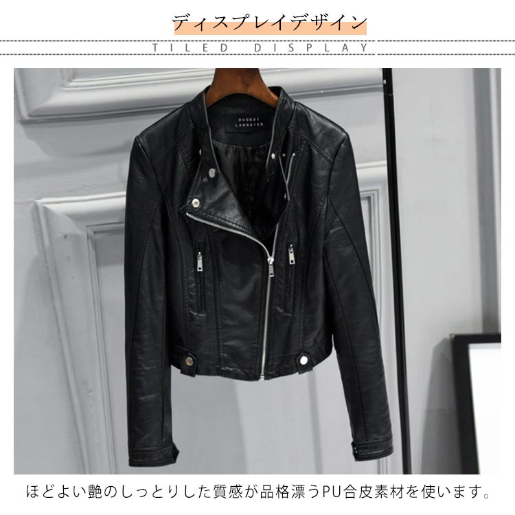 全3色×5サイズ!PU合皮 ジャケット レディース ライダースジャケット フェイクレザー 合皮ジャケット ショート丈 ライダース 春 秋
