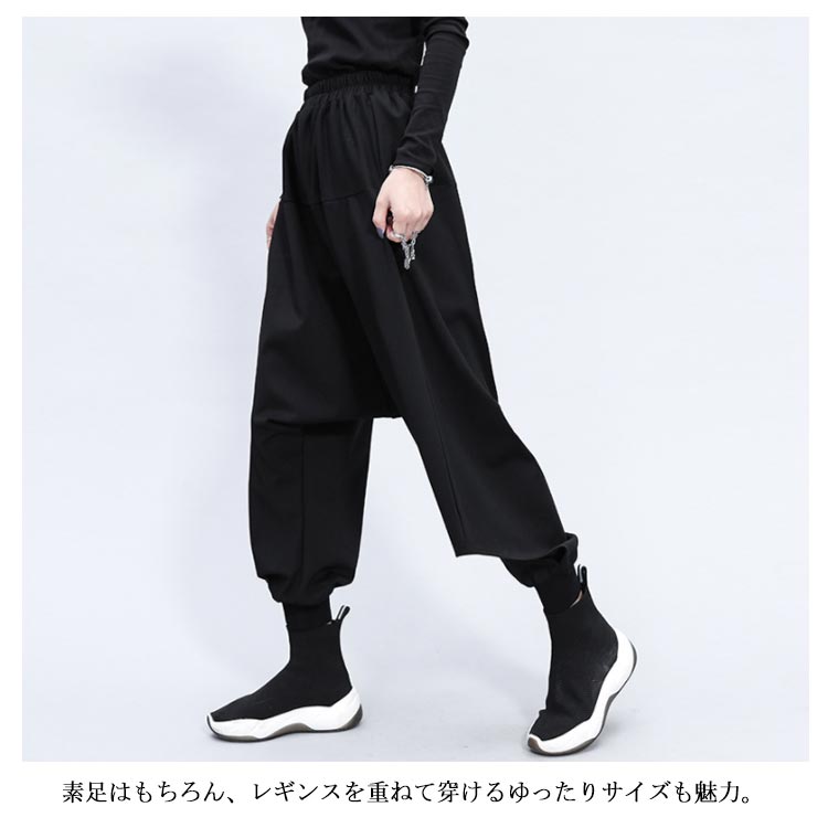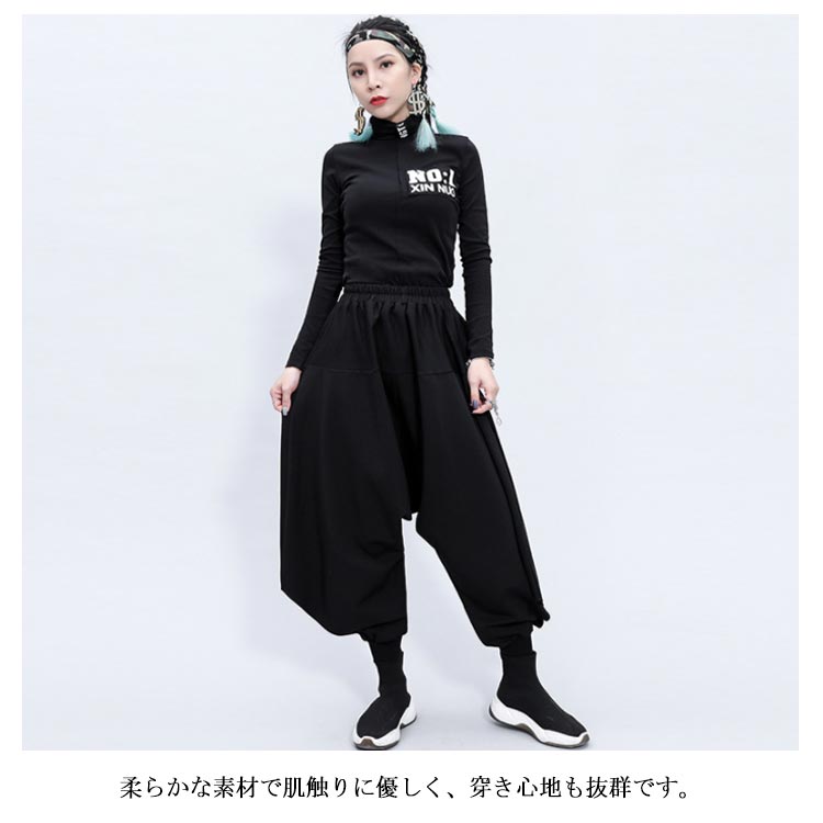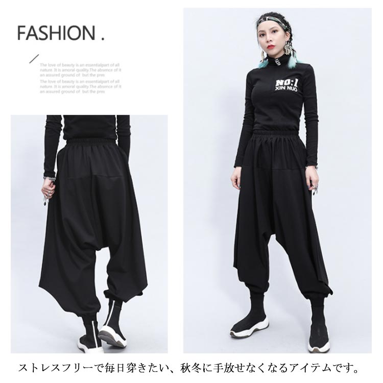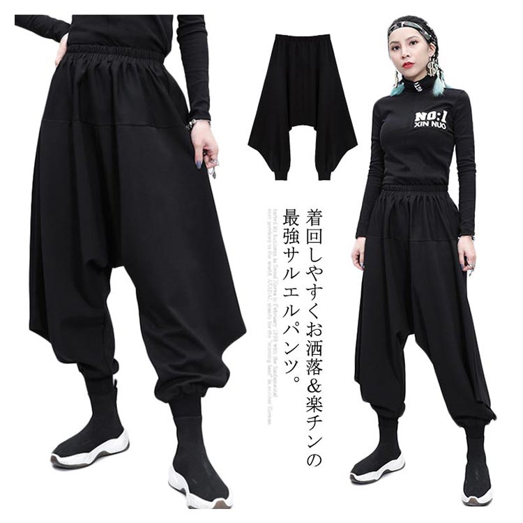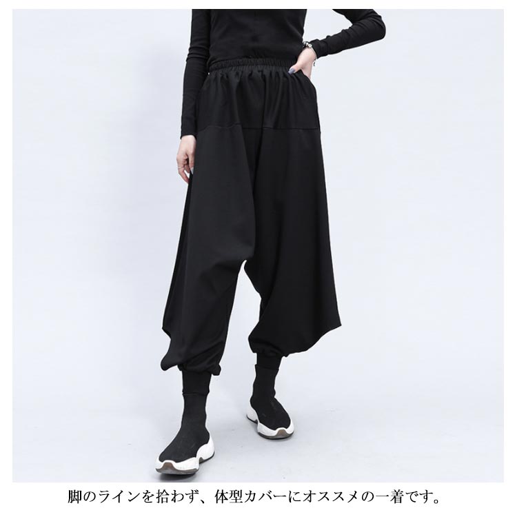 ガウチョパンツ サルエルパンツ ボトムス ワイドパンツ レディース ロング丈 ゆるシルエット ウエストゴム 体型カバー 大きいサイズ カジュアル 着痩せ お洒落