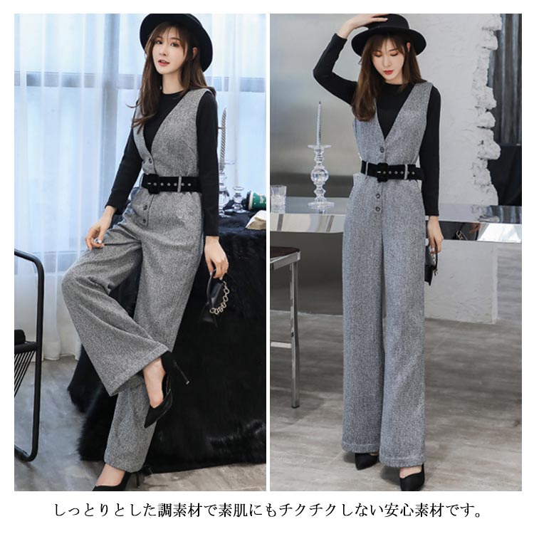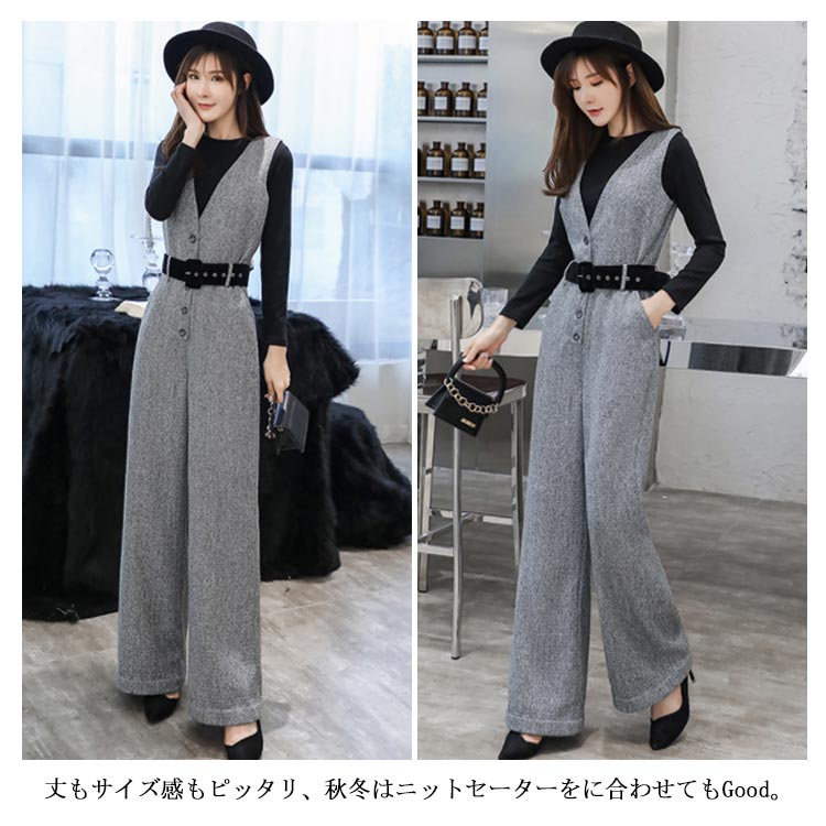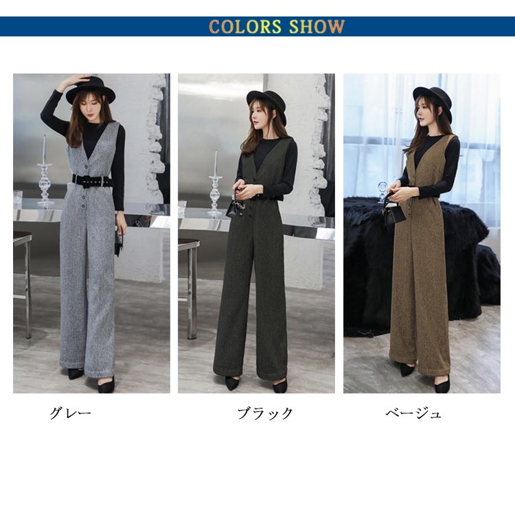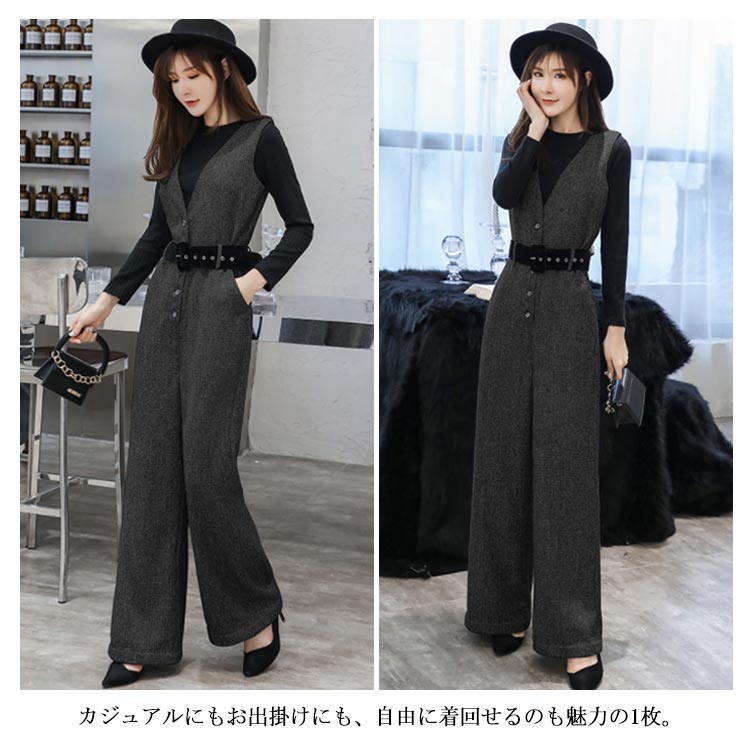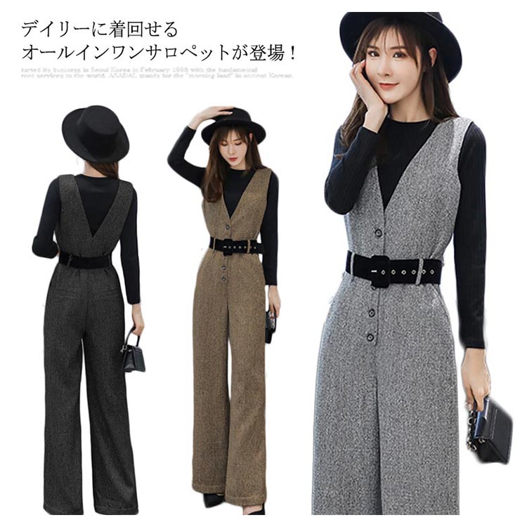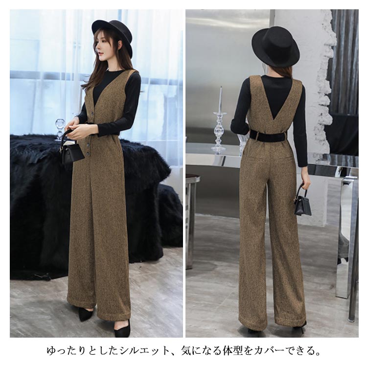 サロペット レディース オールインワン オーバーオール ワイドパンツ 着痩せ ボトムス ゆるシルエット 秋冬服 ロングパンツ カジュアル 無地 お洒落