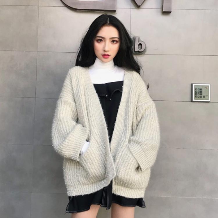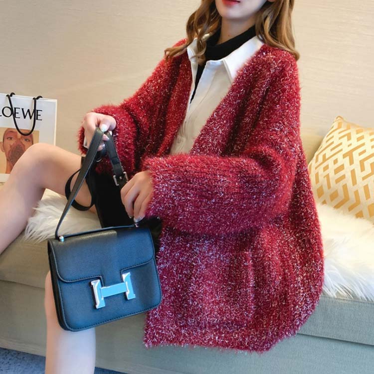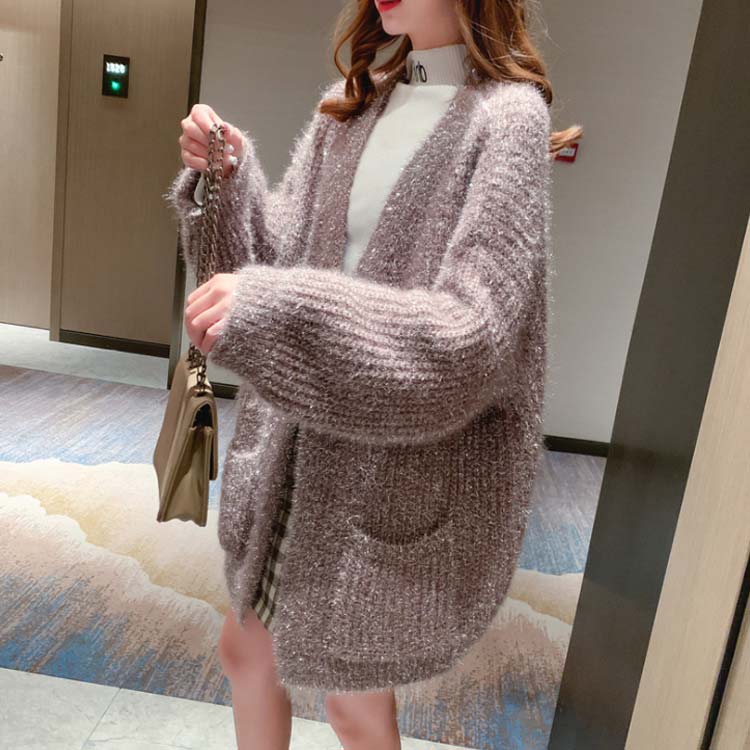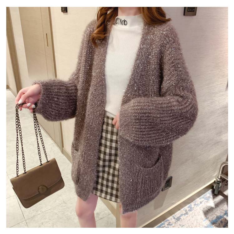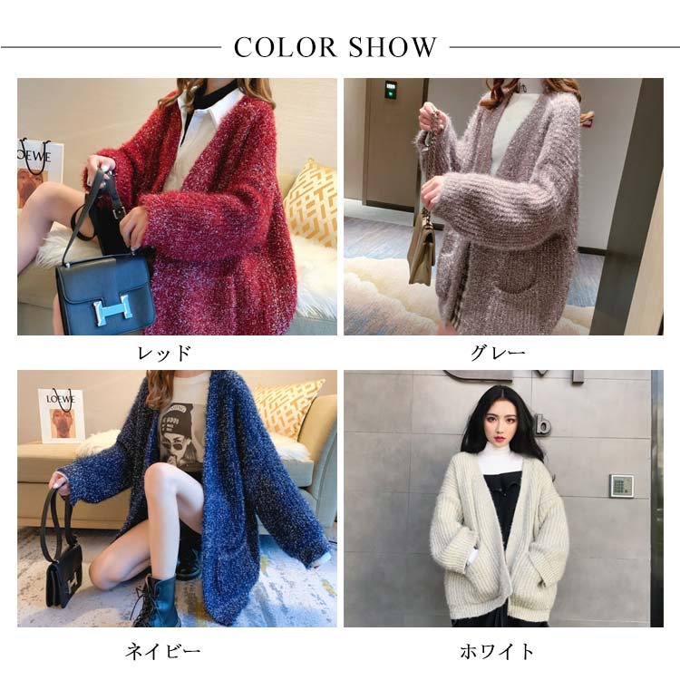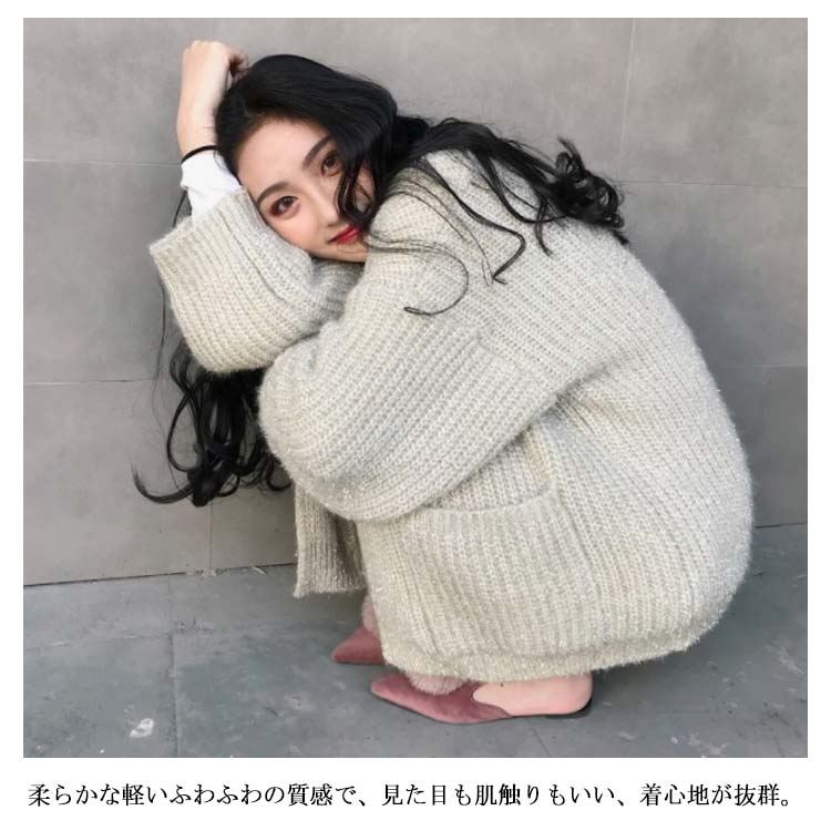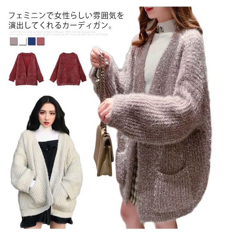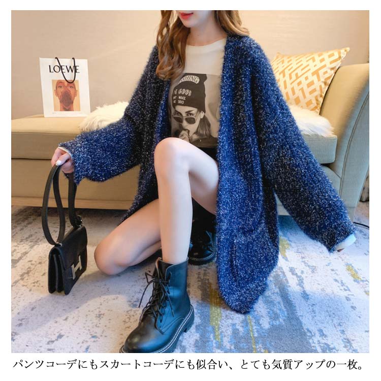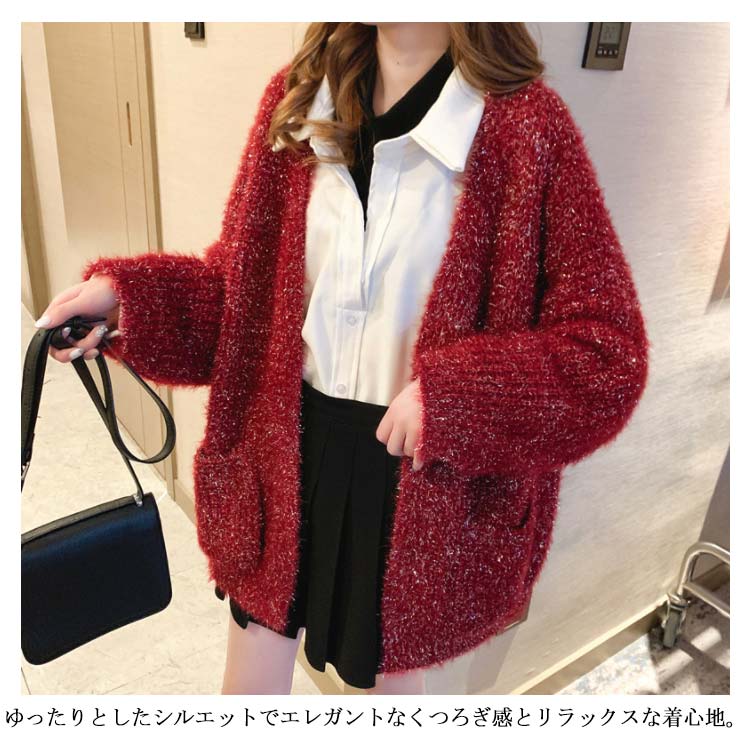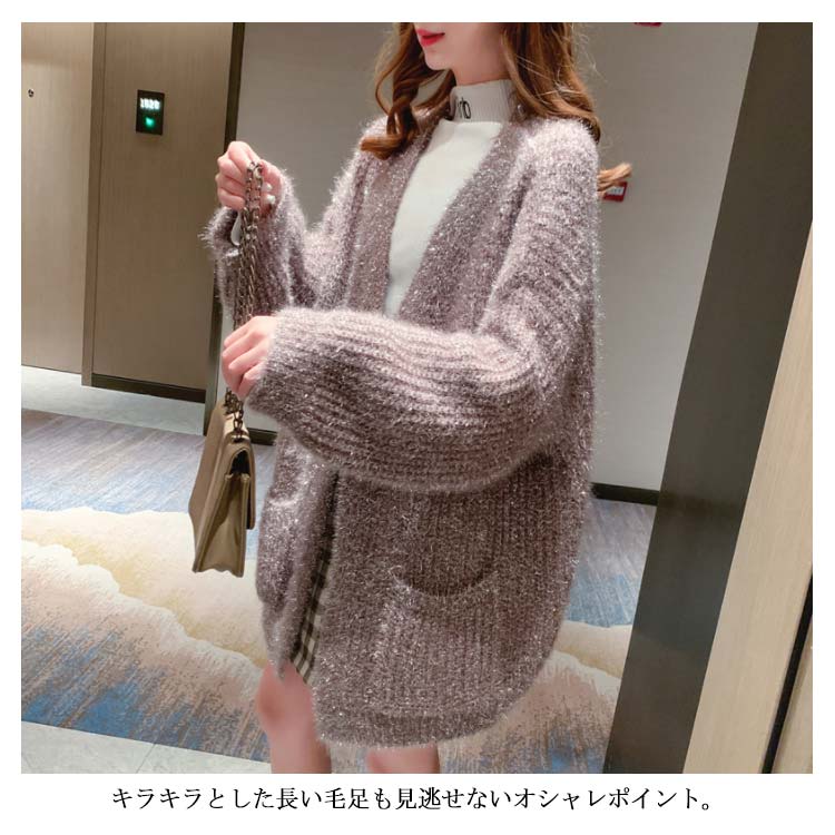 カーディガン レディース モコモコ アウター トップス 前開き ゆったり 体型カバー リラックス感 キラキラ 厚手 秋冬物 ポケット付き 韓国ファッション お洒落