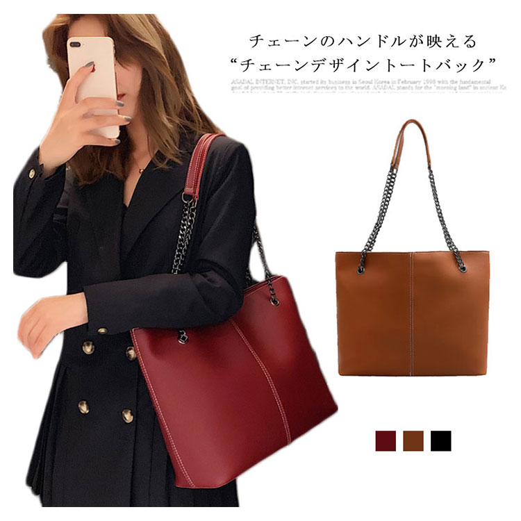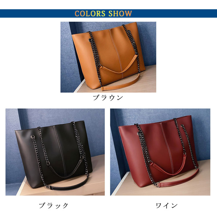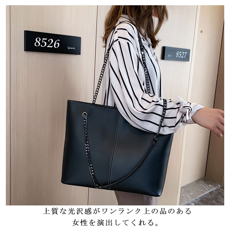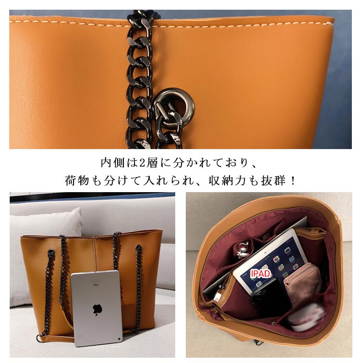 トートバッグ レディース ショルダーバッグ 肩掛け 大容量 チェーン A4サイズ 2way 軽量 お洒落 ハンドバッグ カバン OL 通勤 オフィス 通学