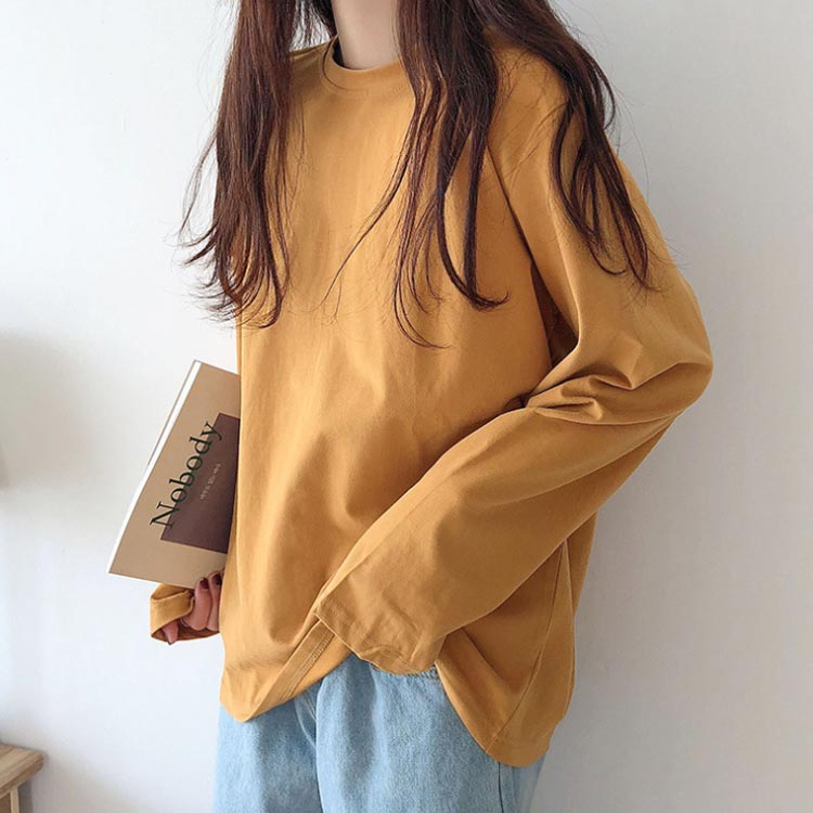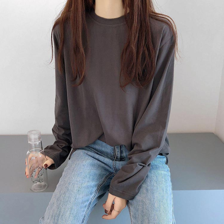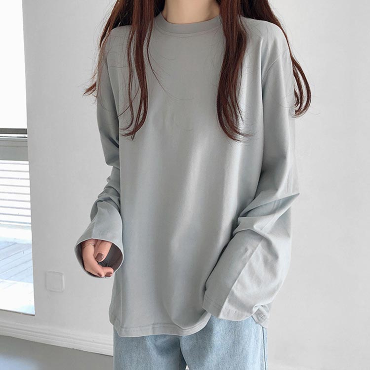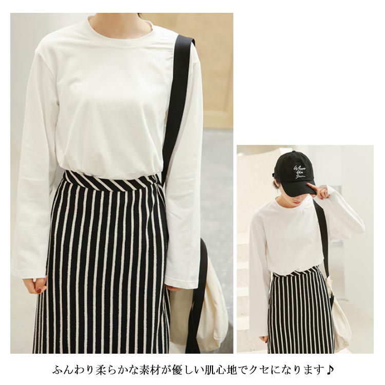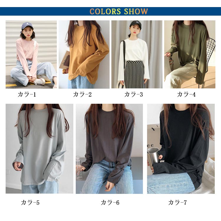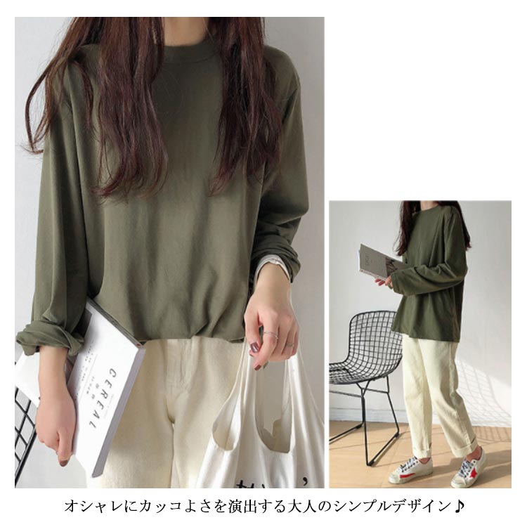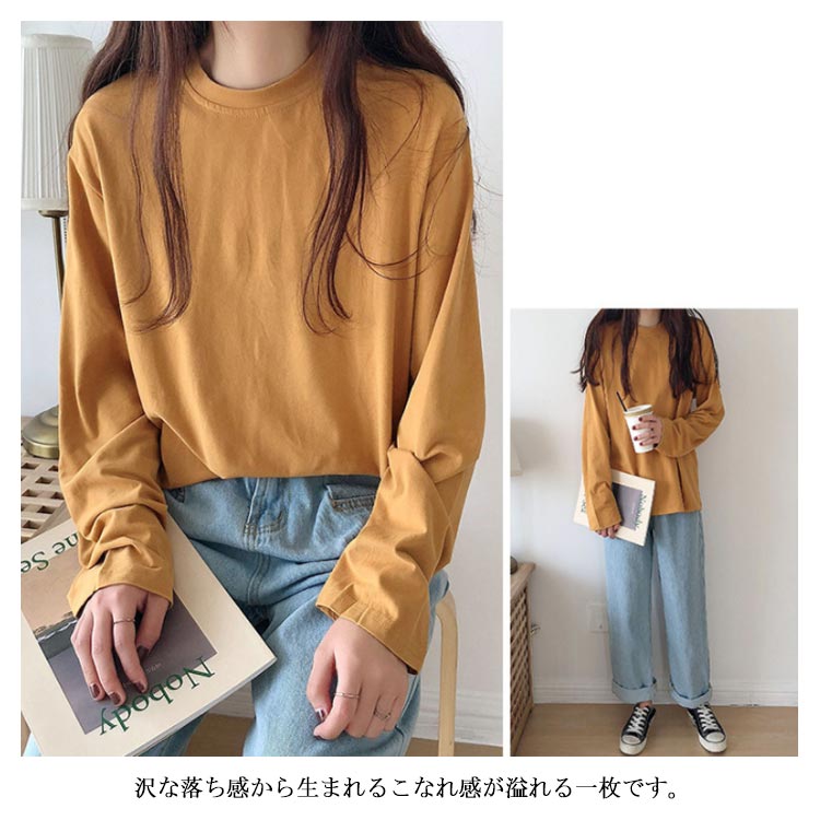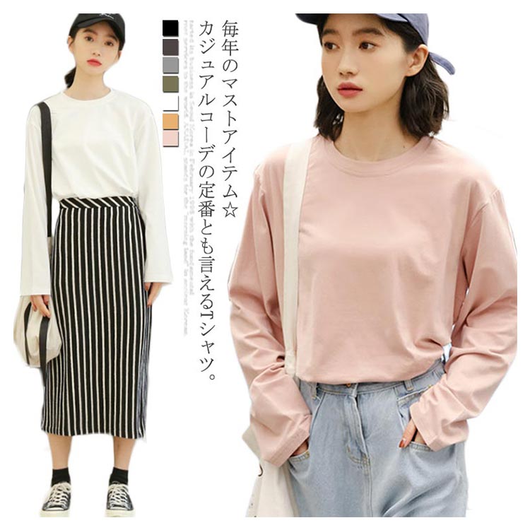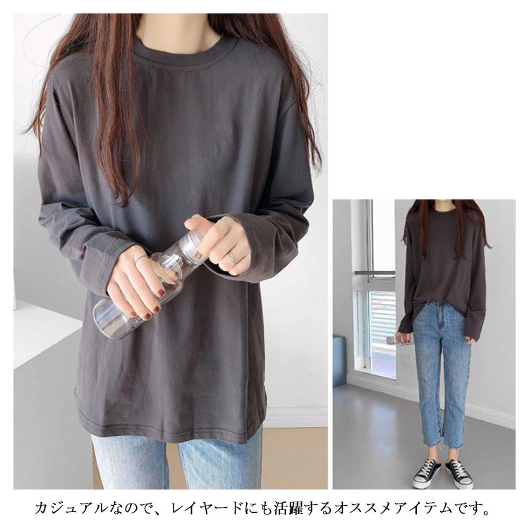ロンT 長袖 Tシャツ トップス レディース ブルオーバー クルーネック ゆったり カットソー 無地 春秋 韓国ファッション カジュアル シンプル