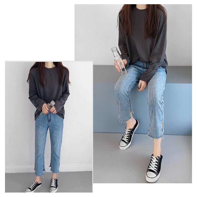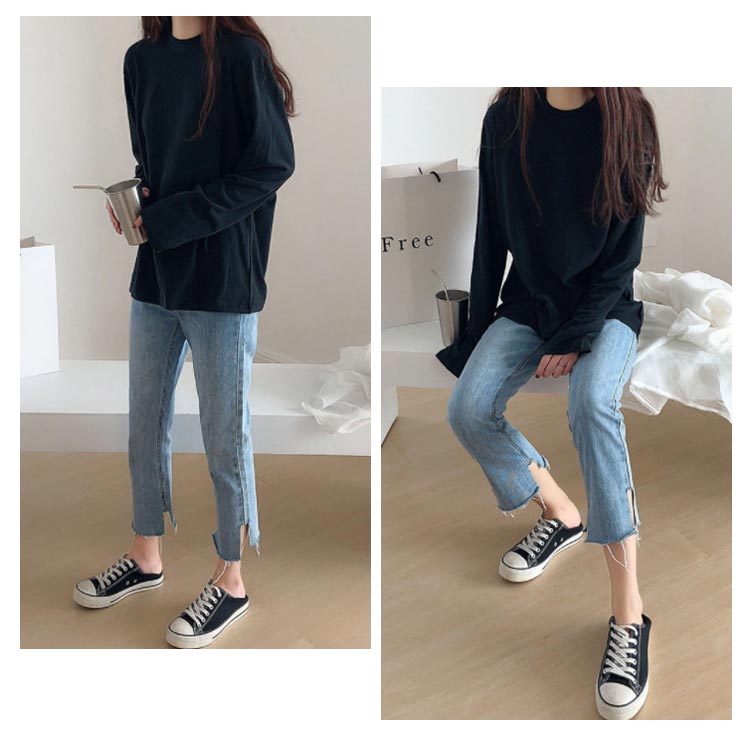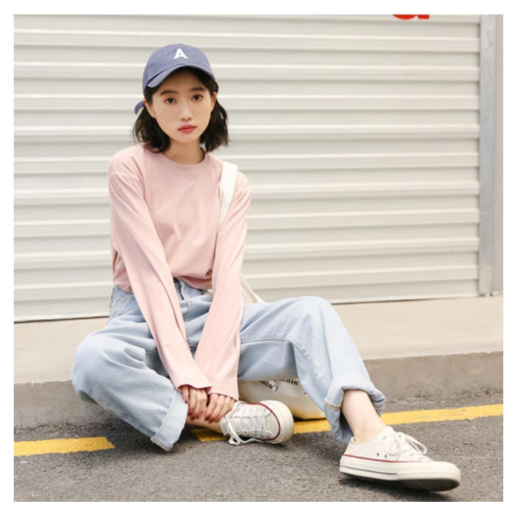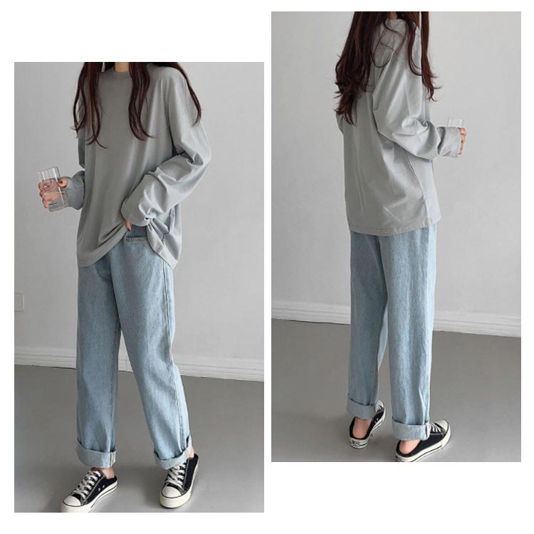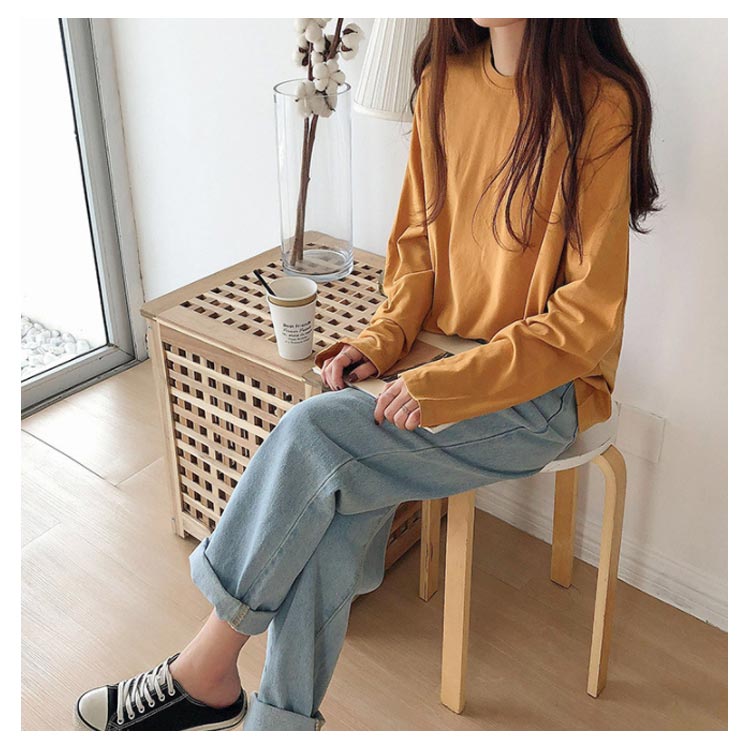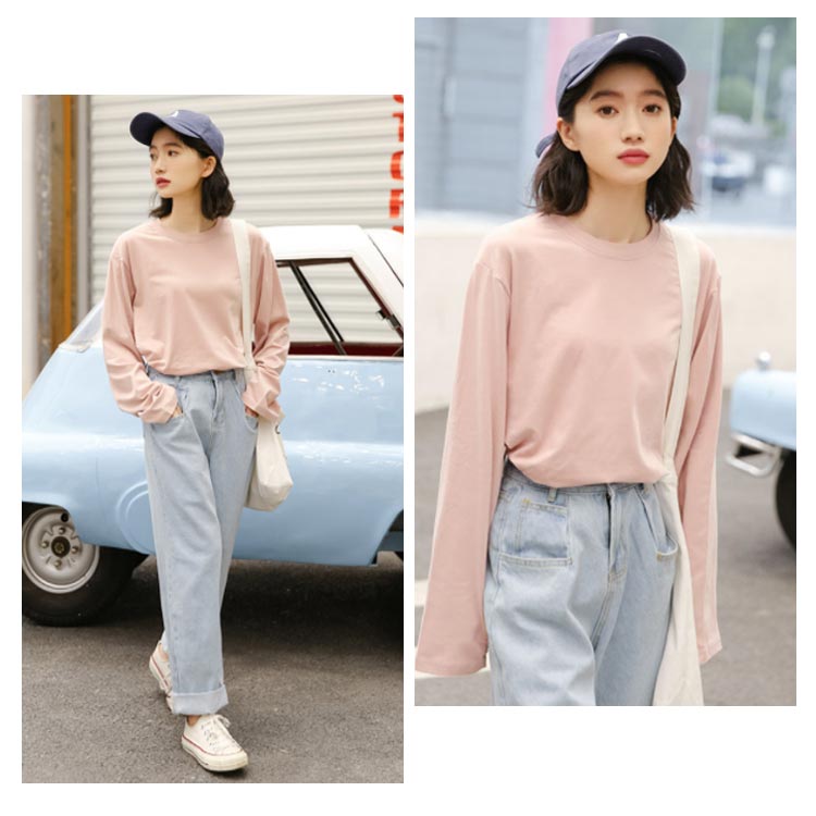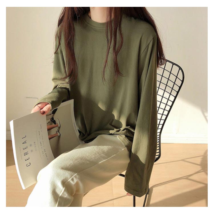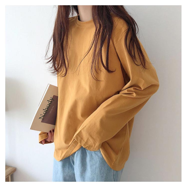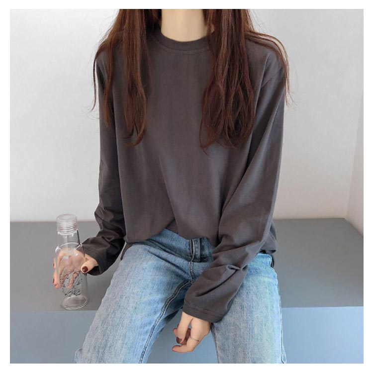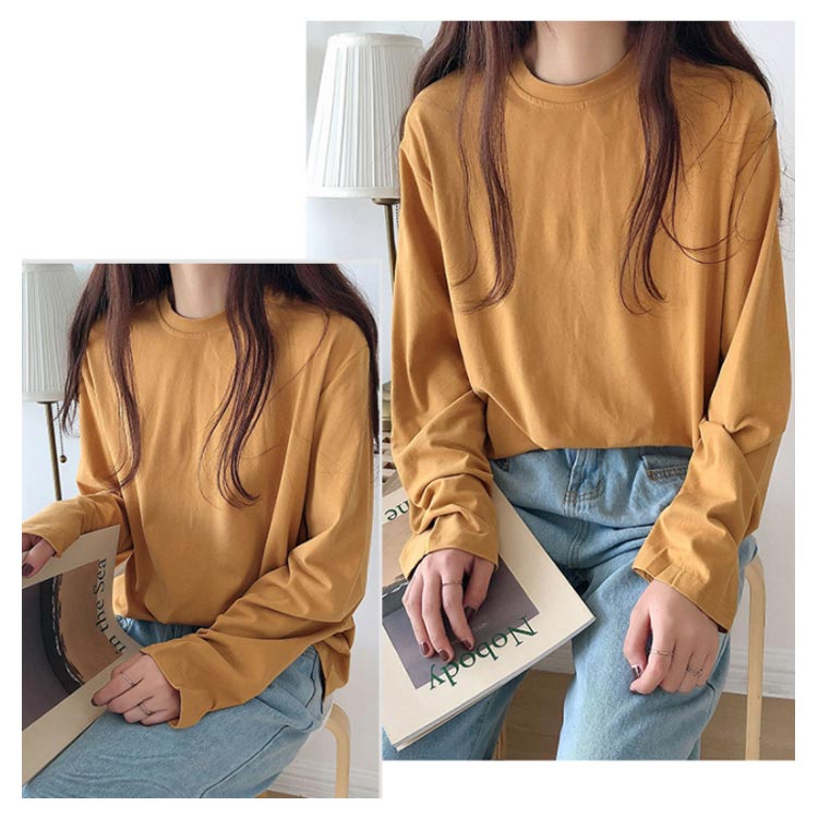 ロンT 長袖 Tシャツ トップス レディース ブルオーバー クルーネック ゆったり カットソー 無地 春秋 韓国ファッション カジュアル シンプル