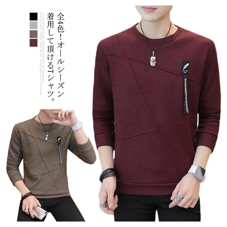 Tシャツ メンズ 長袖 トップス カットソー ラウンドネック 無地 ゆったり 春秋物 お洒落 メンズファッション カジュアル 大きいサイズ