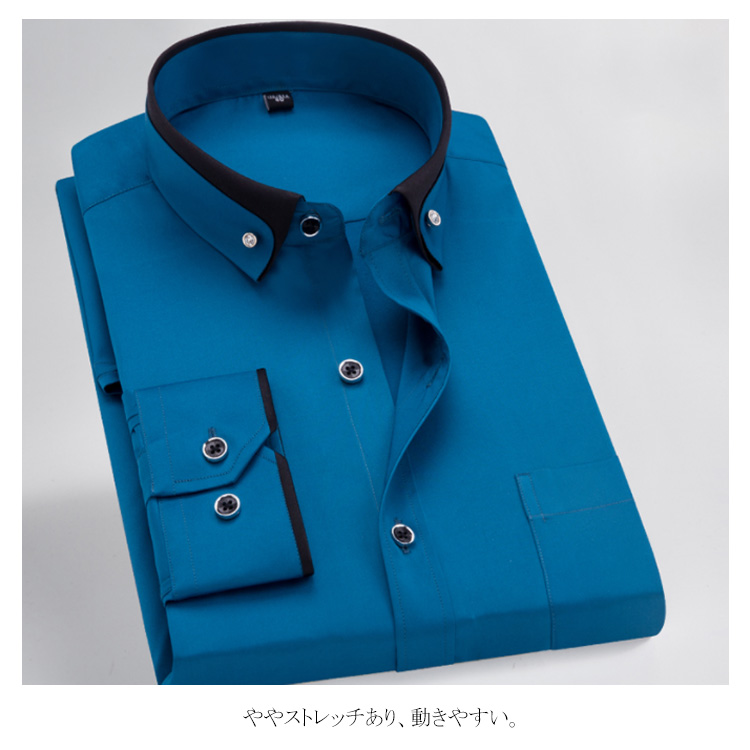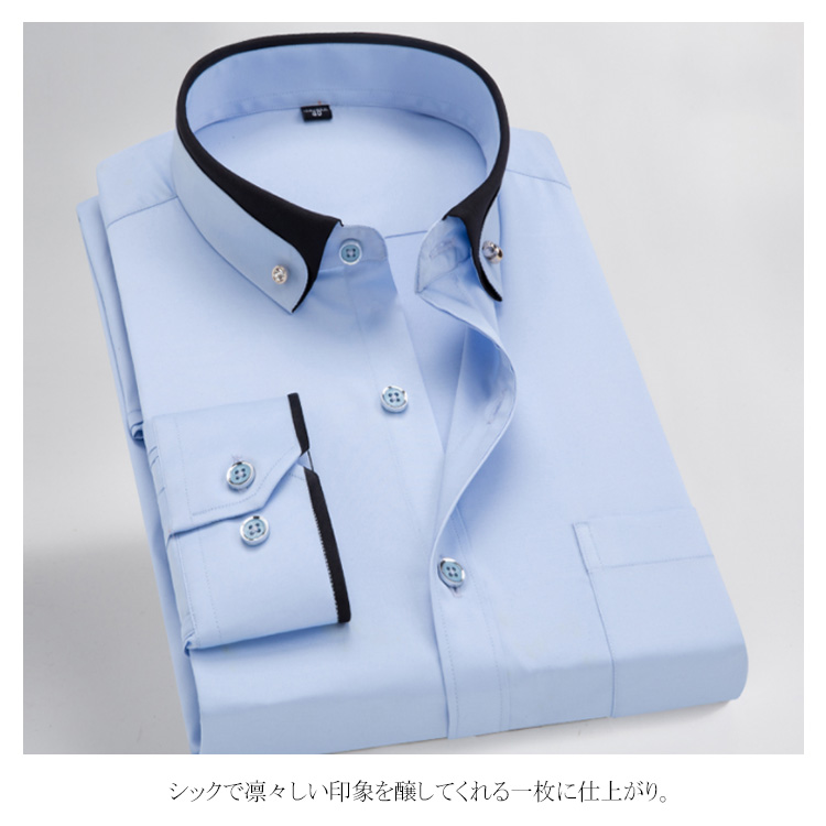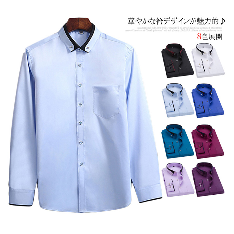 送料無料 襟デザインが魅力的♪ ワイシャツ オシャレ Yシャツ メンズ 長袖シャツ ビジネスシャツ ドレスシャツ 切替 ストレッチ イージーケア 形態安定加工 シワになりにくい 速乾 ビジネス フォーマル 結婚式 衣装 パーティー