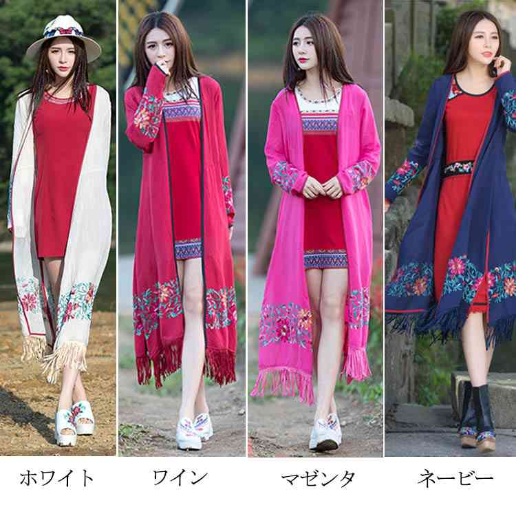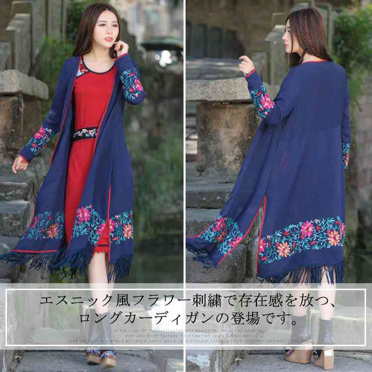 エスニック風フラワー刺繍で存在感を放つ、ロングカーディガンの登場です。