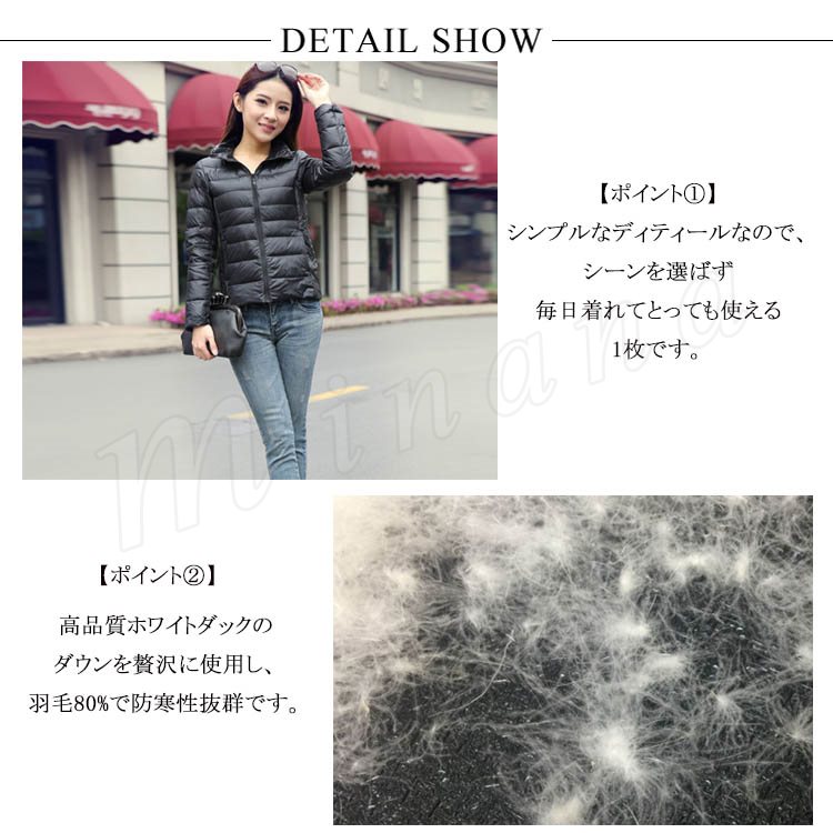 | 素材 | 表地:ポリエステル 中綿:ホワイトダックのダウン裏地:ポリエステル | ||