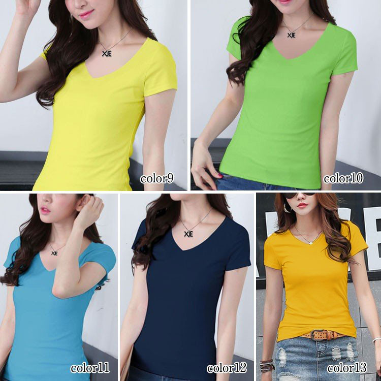 全13color!半袖 VネックTシャツ Tシャツ Vネック 半袖 レディース カットソー 半袖tシャツ Vネックカットソー トップス カジュアル 無