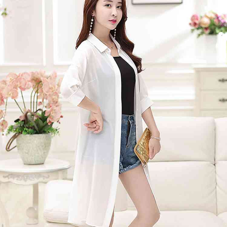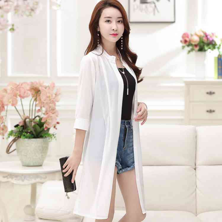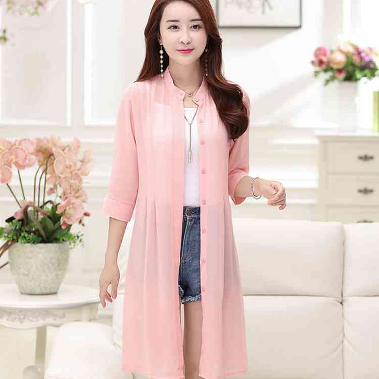 「2タイプ選べる」シフォンカーディガン ロング丈 カーディガン UVカーディガン ロングカーディガン シフォン 透け シャツ 長袖 立ち襟 折り襟 シ