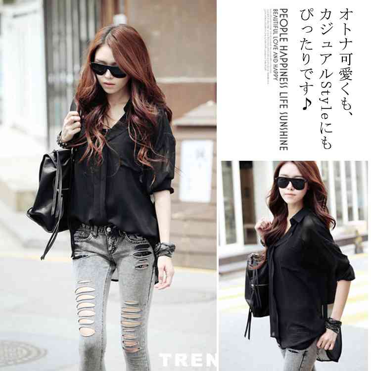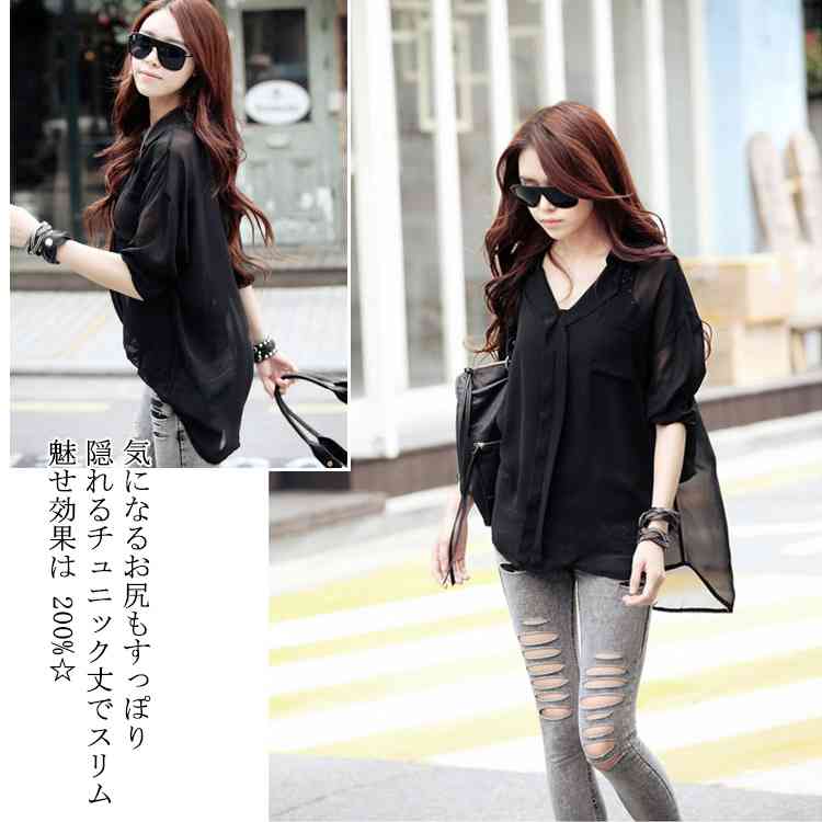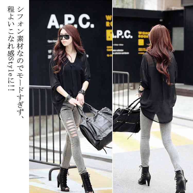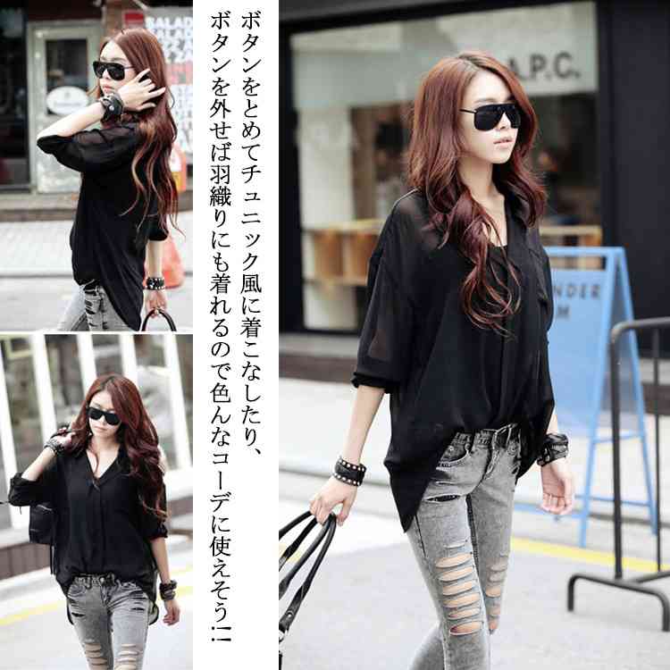 | さらっとしたシフォン素材が涼しげなロングシャツが登場♪シフォン素材なのでモードすぎず、程よいこなれ感Style に!!オトナ可愛くも、カジュアルStyleにもぴったりです♪気になるお尻もすっぽり隠れるチュニック丈でスリム魅せ効果は 200%☆ボタンをとめてチュニック風に着こなしたり、ボタンを外せば羽織りにも着れるので色んなコーデに使えそう!!細身のスキニーとヒールで大人レディなコーデで着ちゃおうかな★☆ | |||