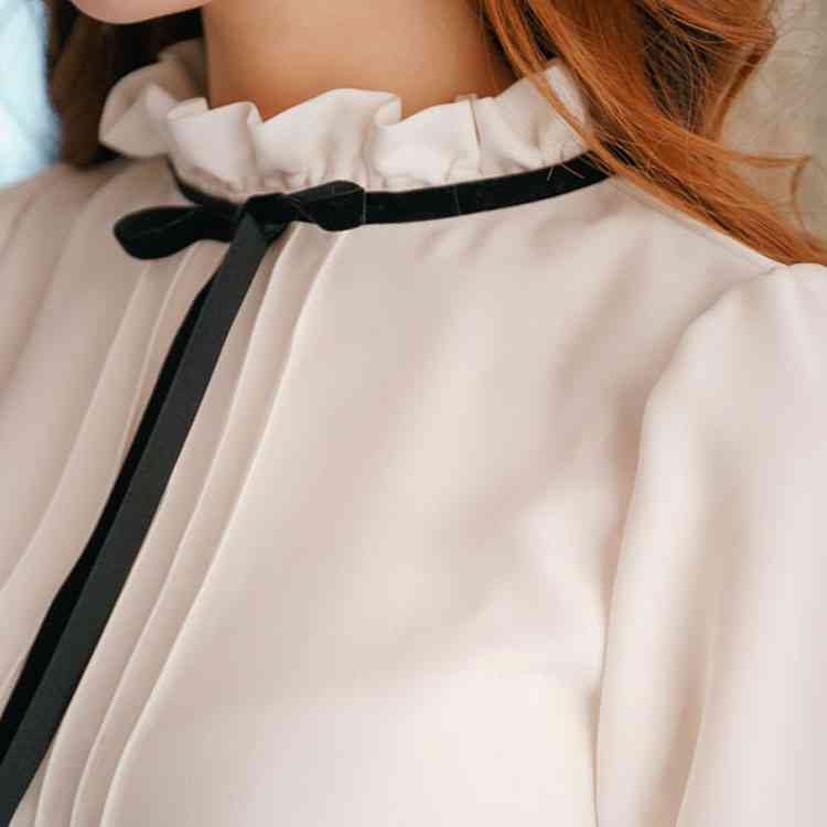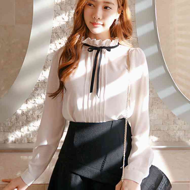 シフォンブラウス シャツ ブラウス ボウタイ付き レディース 長袖 フリル襟 トップス シフォン 大人 可愛い 女性用 春 夏 無地