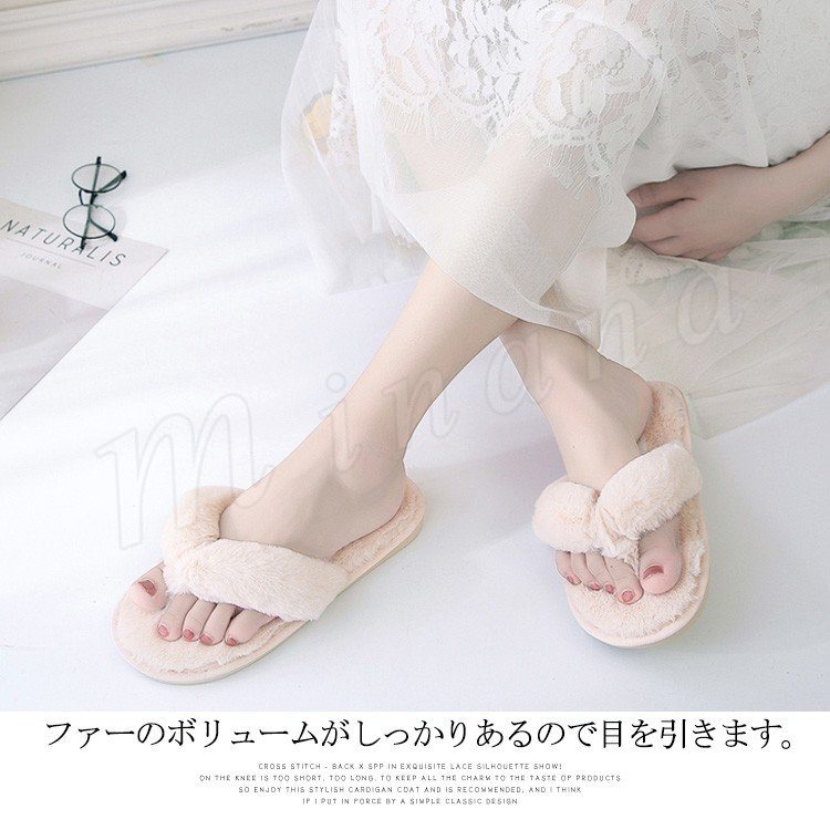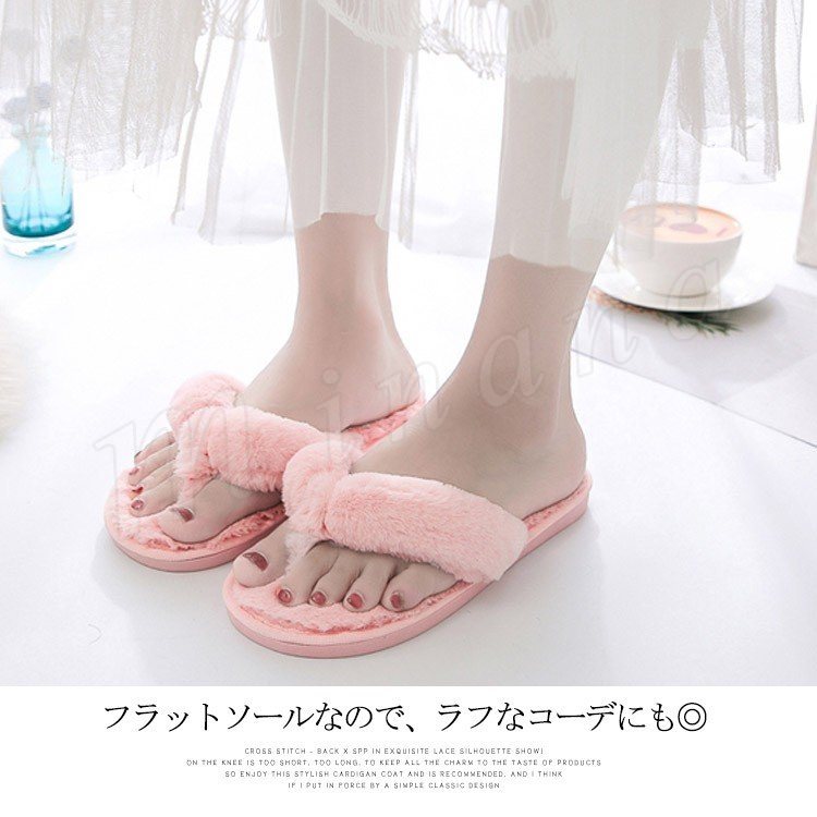 | サッと履けてラクチンなぺたんこサンダル?足に当たる甲ベルト部分は柔らかく履き心地もGOOD♪フラットソールなので、ラフなコーデにも◎ファーのボリュームがしっかりあるので目を引きます。 | |||