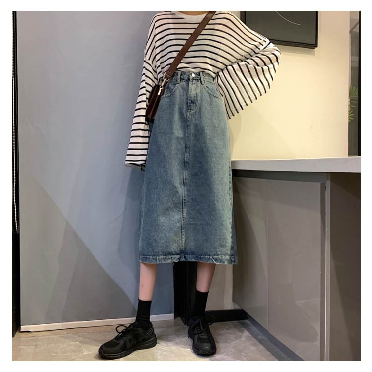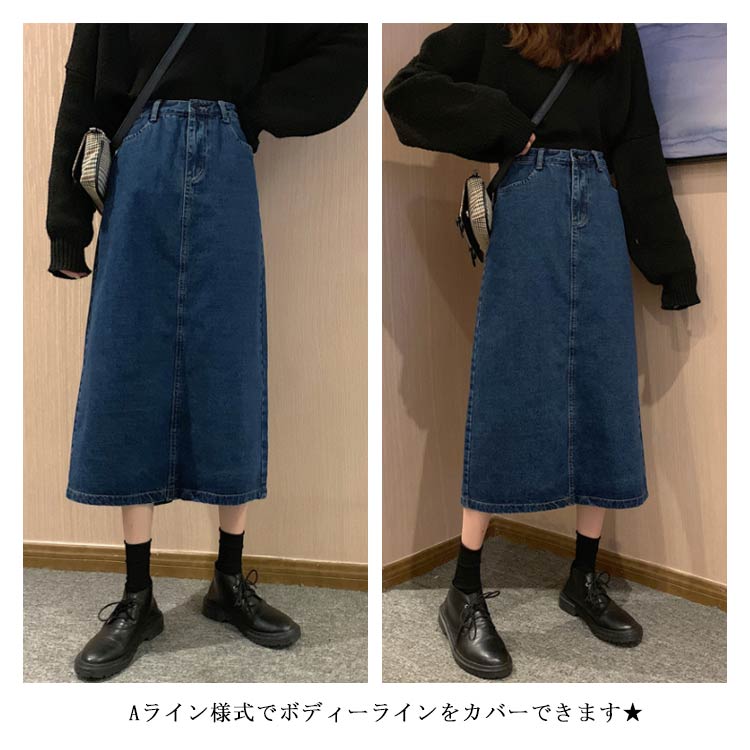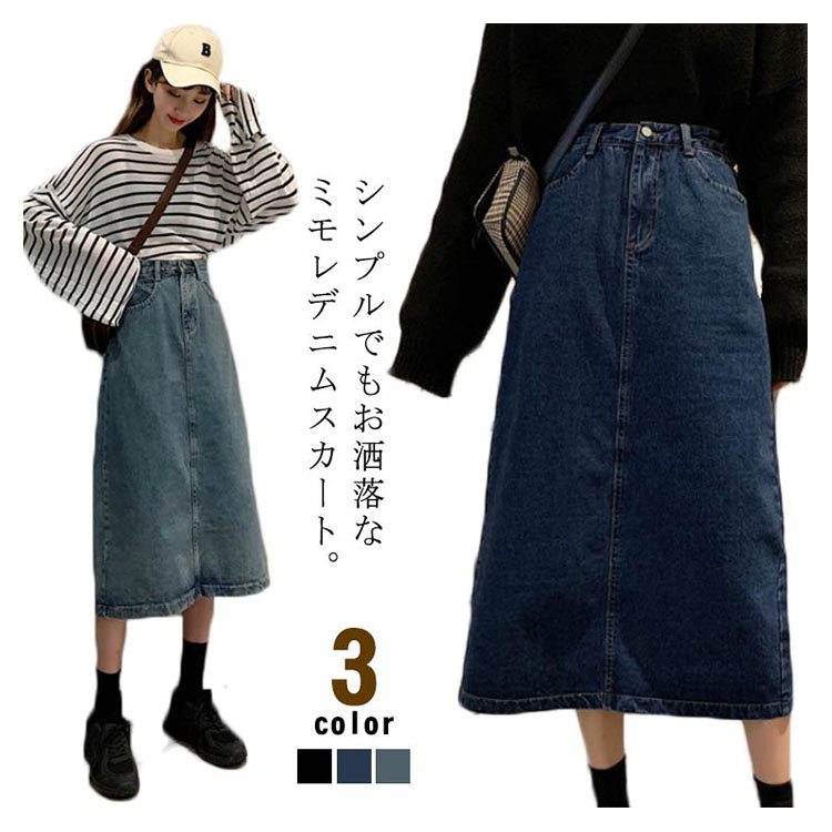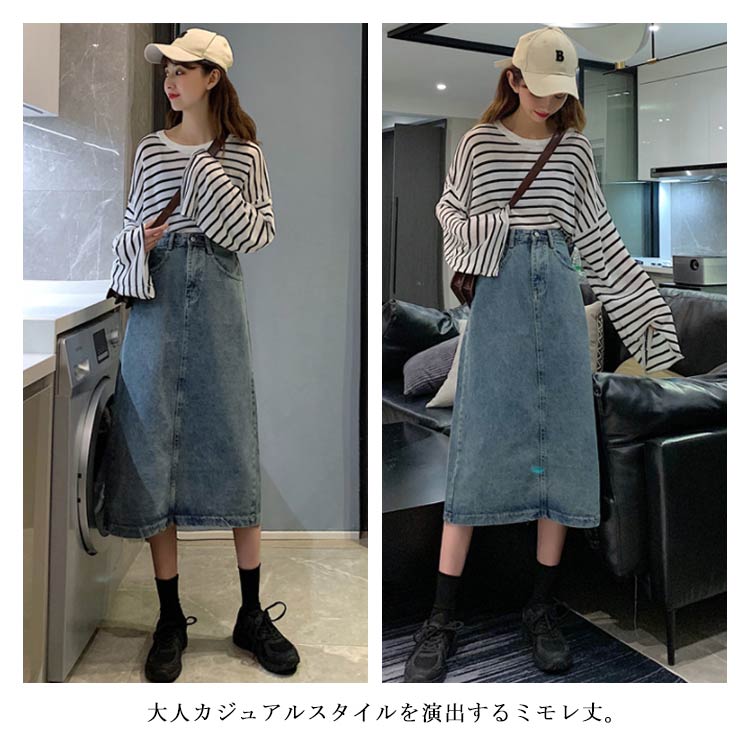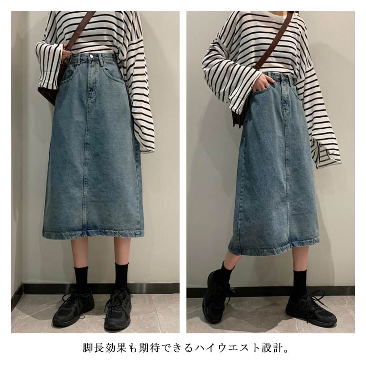 スカート レディース デニムスカート ミモレスカート ロングスカート ストレート ロング丈 ミモレ丈 Aライン 着痩せ ウォッシュ加工 色落ち お洒落 カジュアル ボトムス すっきり 夏新作 送料無料