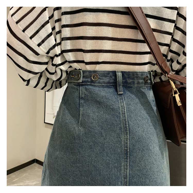 | シンプルでもお洒落なミモレデニムスカート。 触り心地よく、柔らかな生地感。 脚長効果も期待できるハイウエスト設計。 大人カジュアルスタイルを演出するミモレ丈。 | |