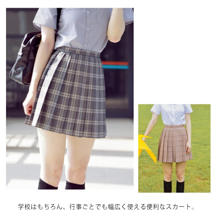 | 女子高校生、中学生に人気の制服スカート★ 学校はもちろん、行事ごとでも幅広く使える便利なスカート。 ステージ衣装としても揃えやすいプチプラは魅力的。 | |