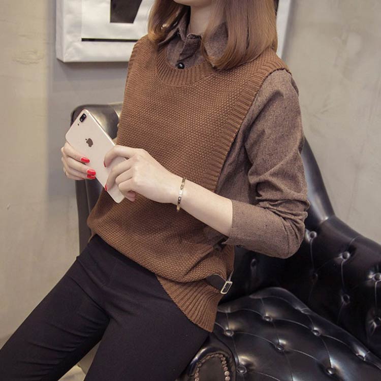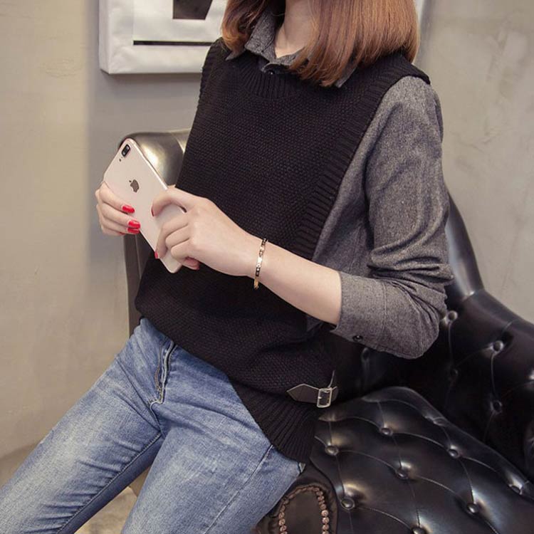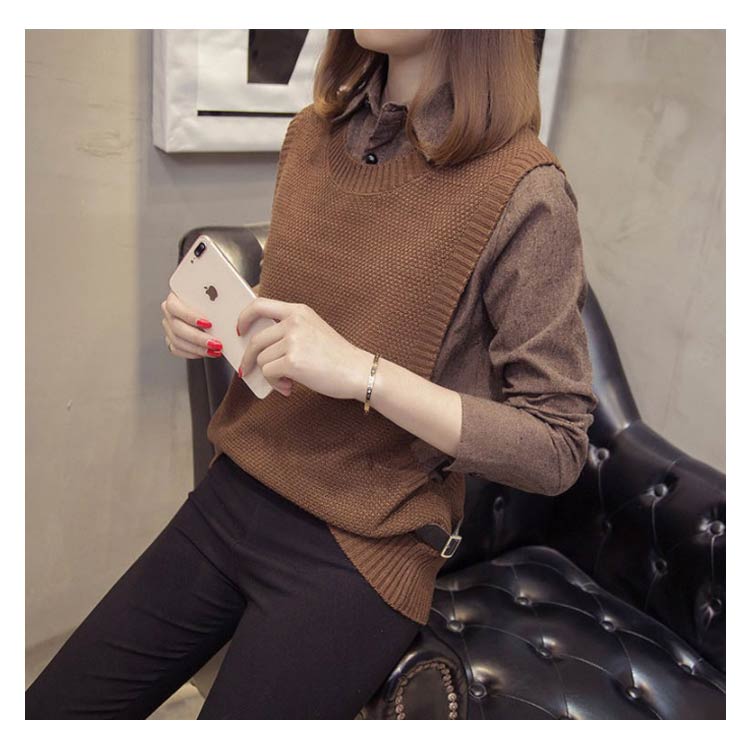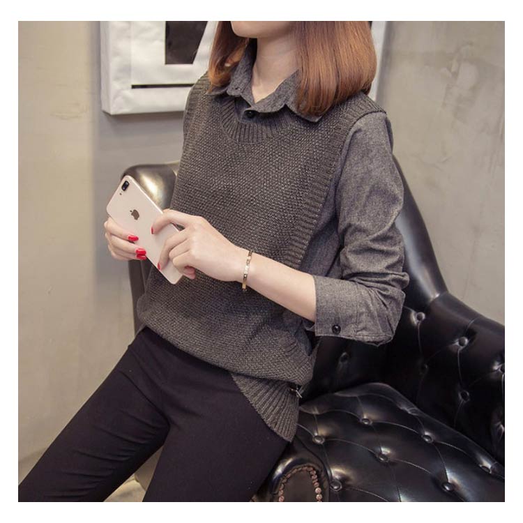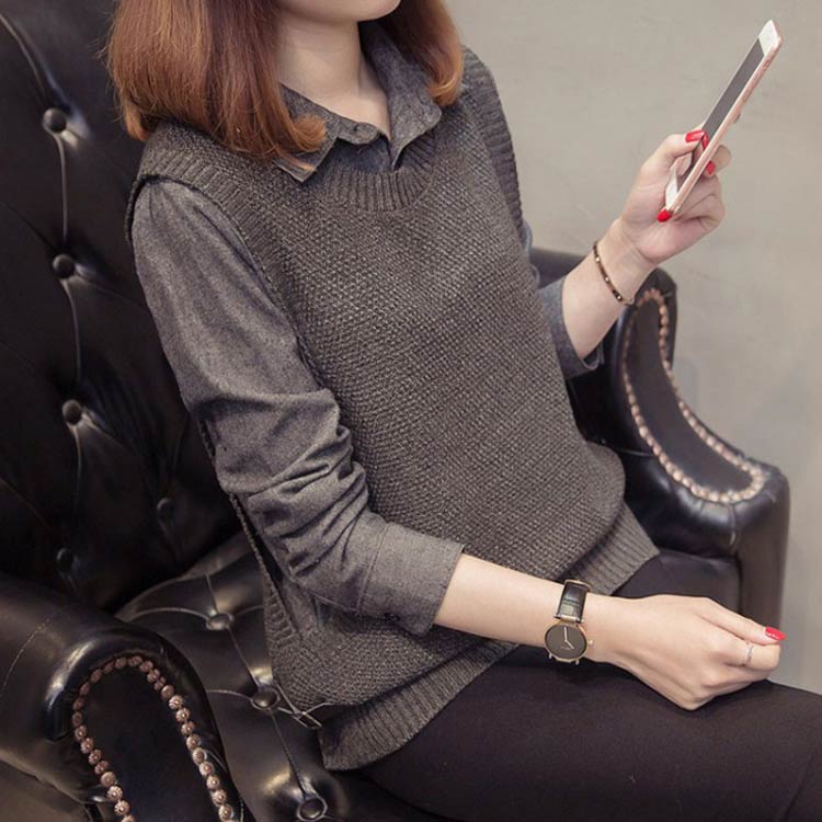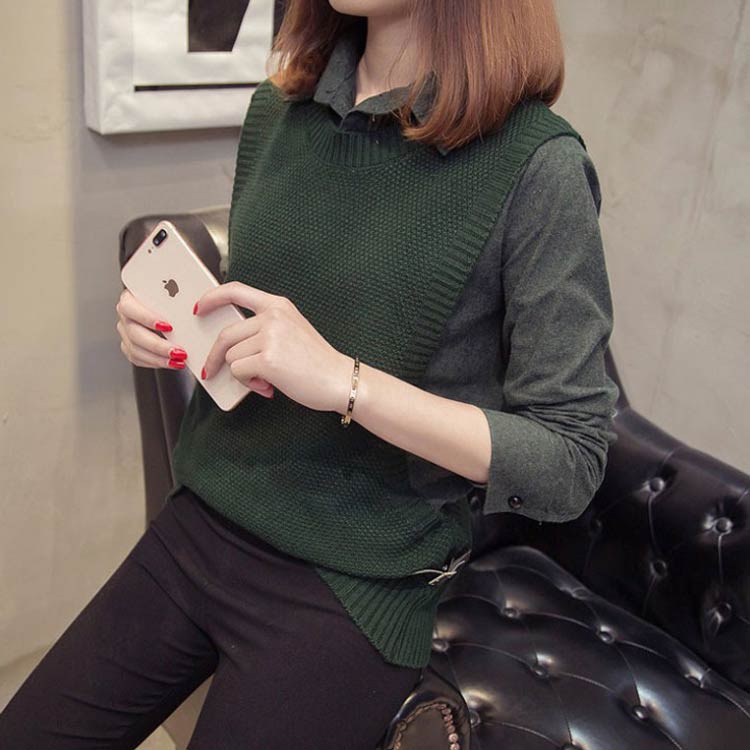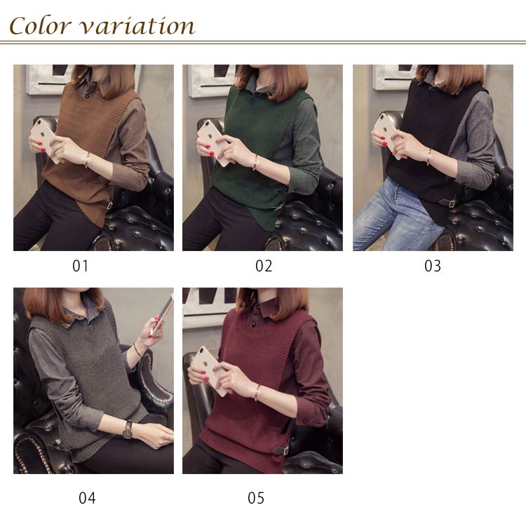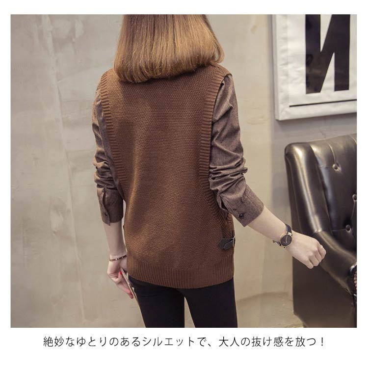 レディース トップス 重ね着風 チュニック セーター ニットセーター ニットベスト レイヤード風 シャツ ブラウス プルオーバー 長袖 カットソー 体型カバー レディースファッション 大人可愛い ナチュラル カジュアル 春秋