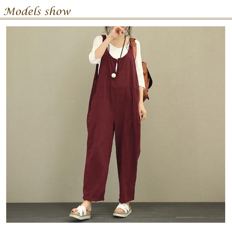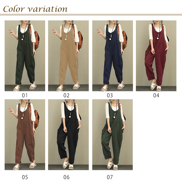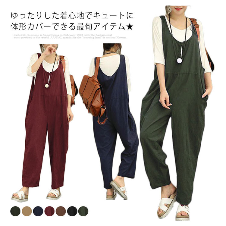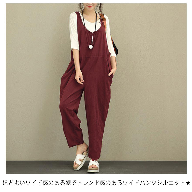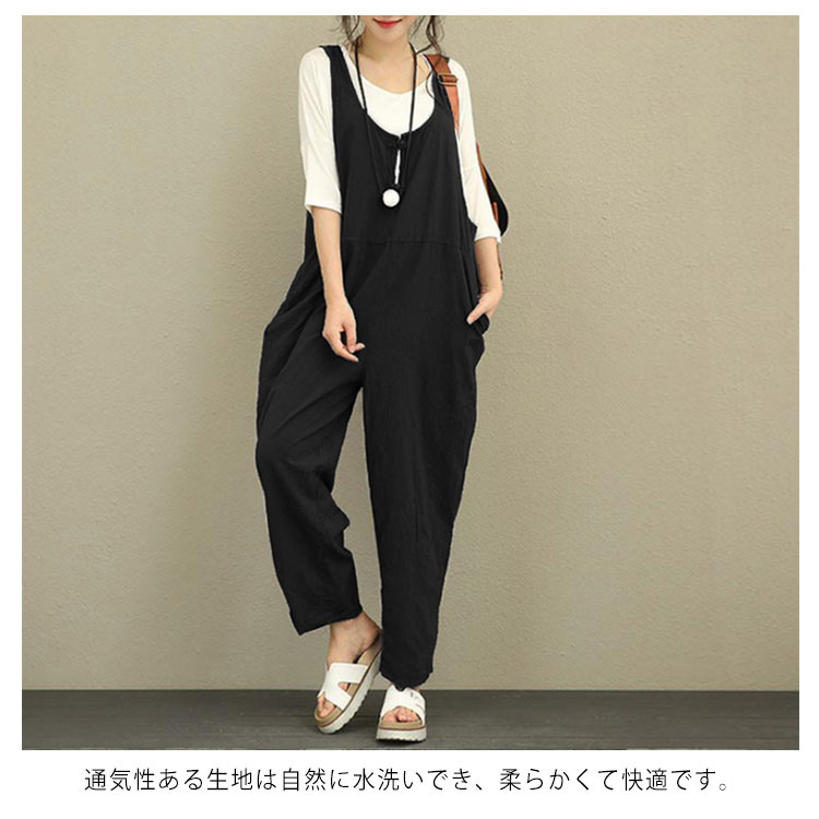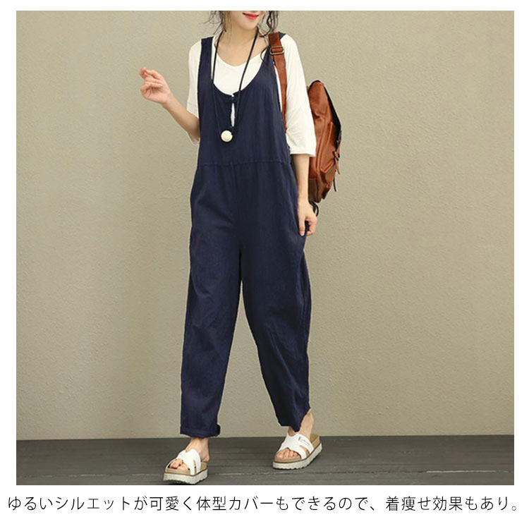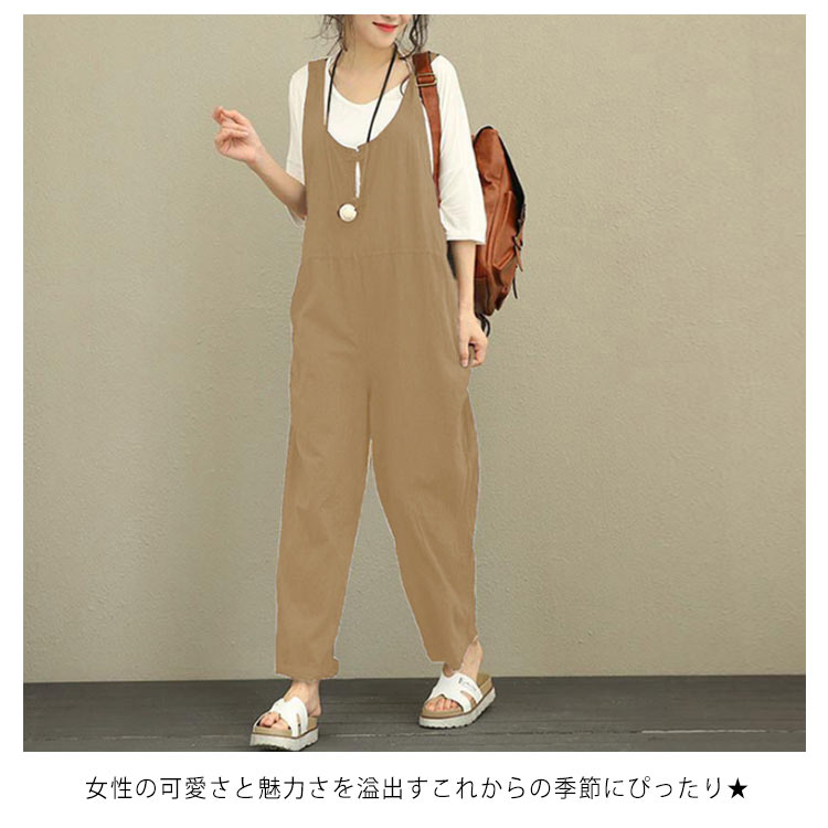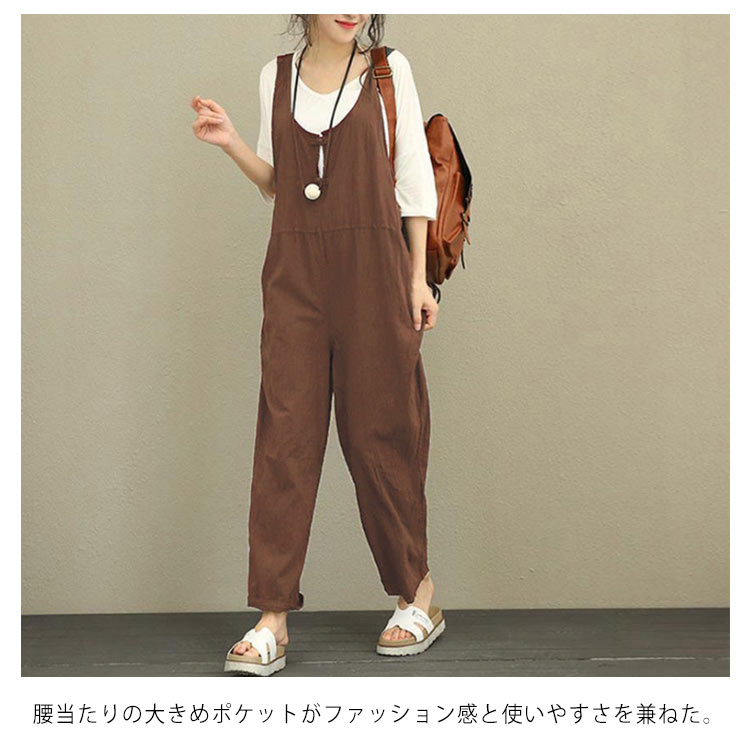 レディース サロペット パンツ オーバーオール オールインワン ロングパンツ ボトムス ポケット付き 森ガール風 ゆったり 大きめ 体型カバー 着痩せ シンプル 上品 お出かけ カジュアル 通勤 通学 秋 冬
