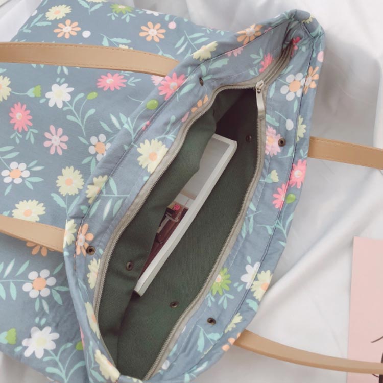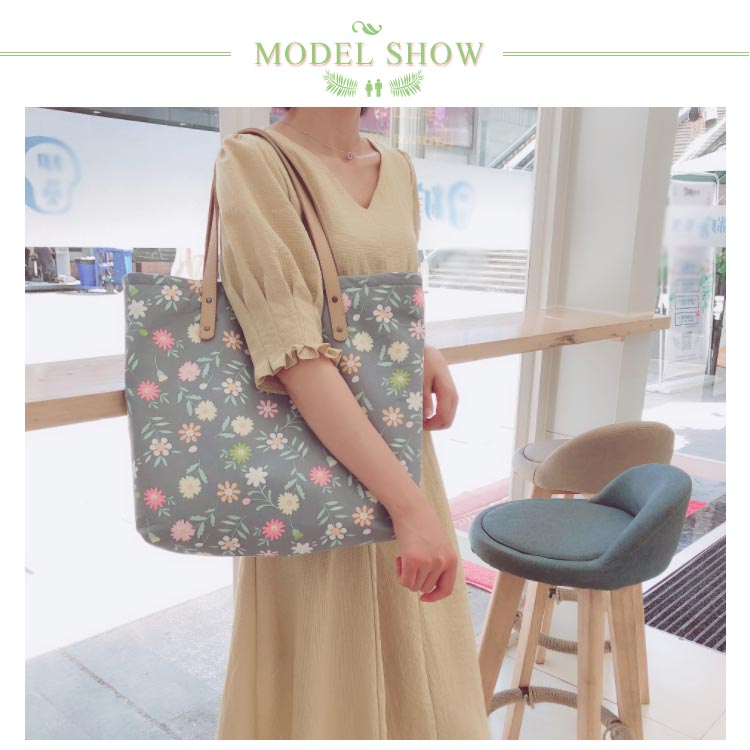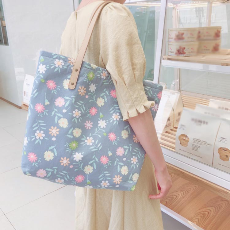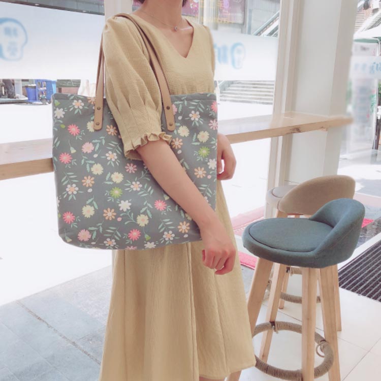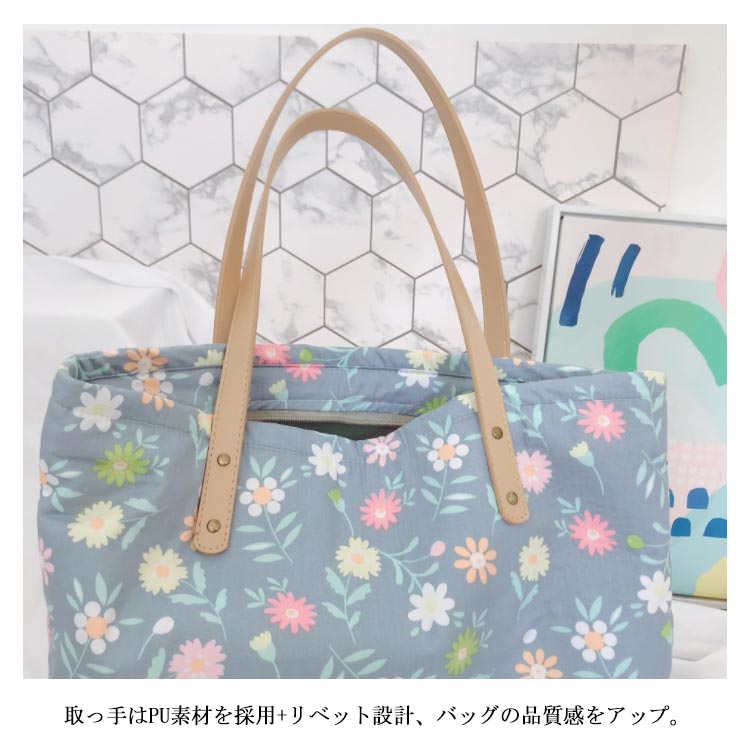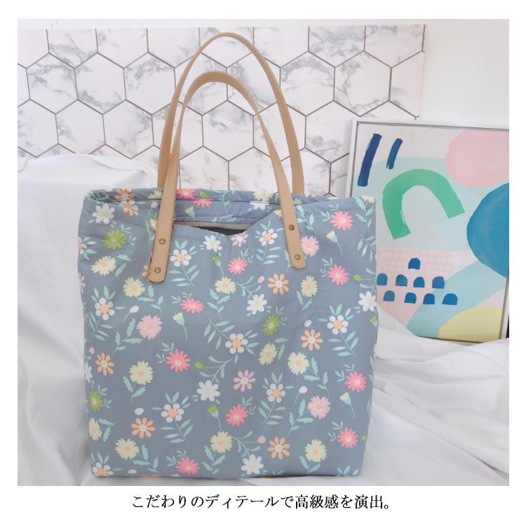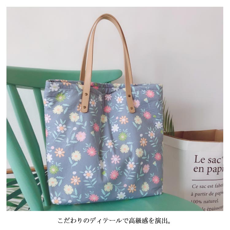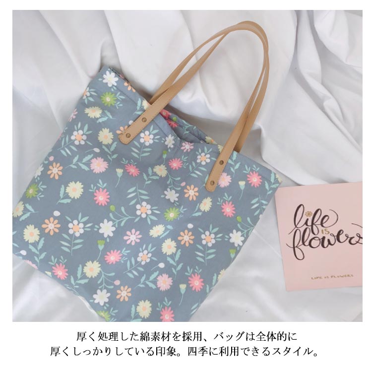| 爽やかな花柄の韓国風トートバッグ。 厚く処理した綿素材を採用、バッグは全体的に厚くしっかりしている印象。四季に利用できるスタイル。 こだわりのディテールで高級感を演出。 大きめゆったりサイズで通勤や通学、お出掛けや買い物のエコバッグ等、様々なシーンで活躍します。 | |