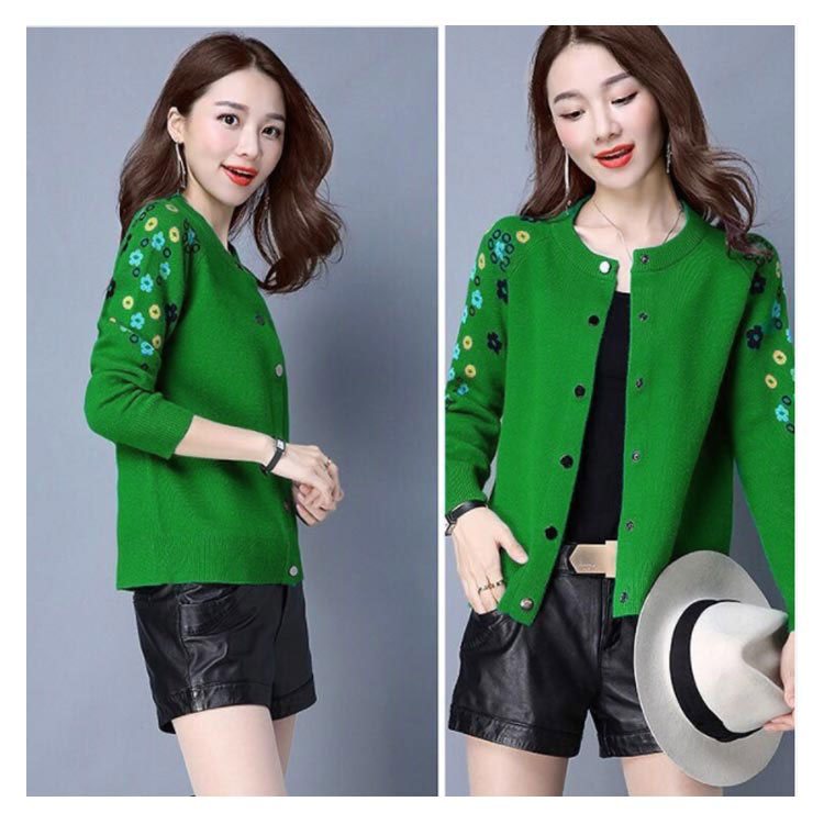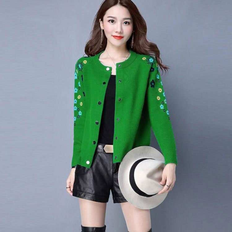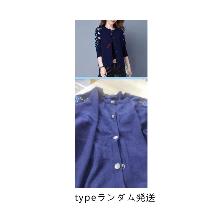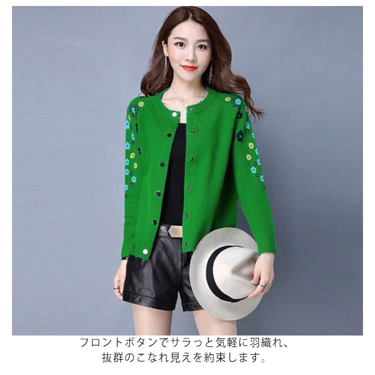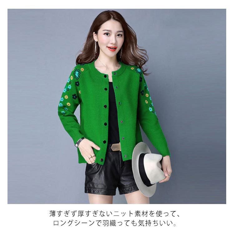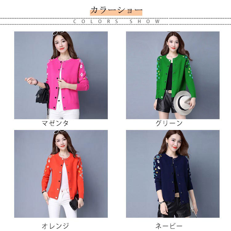 送料無料 全4色×6サイズ!花柄刺繍カーディガン ニットカーディガン レディース カーディガン ラウンドネック 刺繍カーディガン ボタン 長袖 刺繍 フラワー ショート丈 春服 春物 お洒落