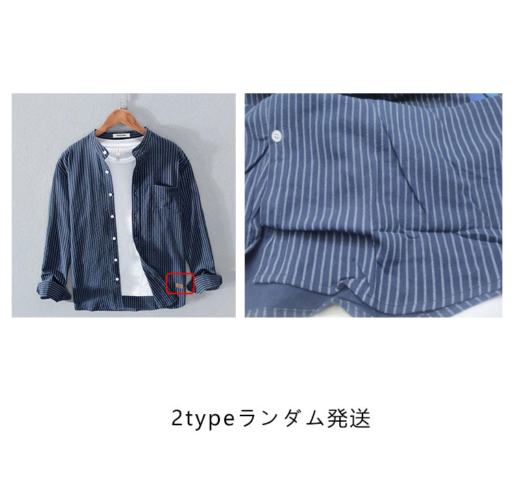 送料無料 カジュアルシャツ メンズ シャツ トップス ブラウス 羽織り 長袖ブラウス カジュアルブラウス 羽織 長袖シャツ 立ち襟 ストライプ コットン 綿 大きいサイズ おしゃれ シンプル 上品 春秋