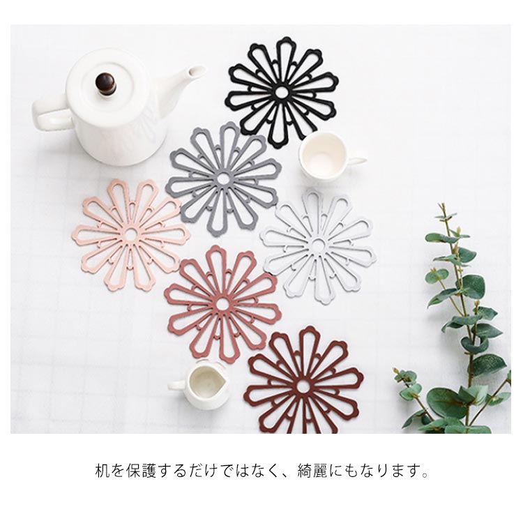 | 可愛い花デザインのコースター。 台所の壁に簡単に掛けられます、空間の使用率を上げます。 汚れたら、水、お湯或いは食器用洗剤を付けたスポンジで洗い、風通しのよい所に掛かって乾燥させます。 丸いお皿を乗せると、お花みたいに見えてオシャレ。 机を保護するだけではなく、綺麗にもなります。 コースター、食器マット、ティーポット用マット、鍋敷き、茶碗マットとして使えます。 ご家族へ、祝い日、プレゼントとして最高だと思います。 | |