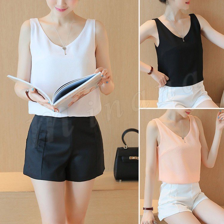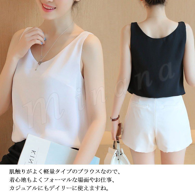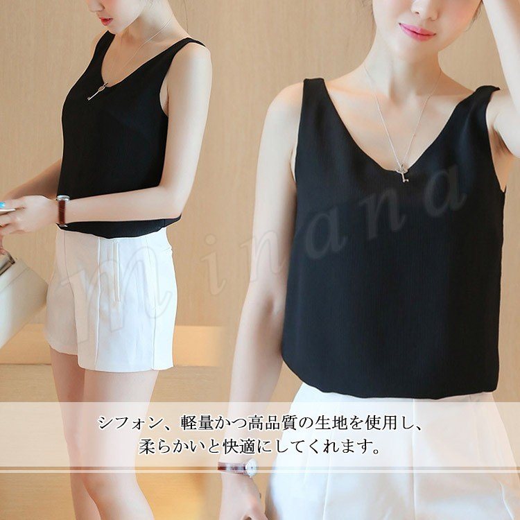 タンクトップ ブラウス レディース Vネック シフォンブラウス vネック ノースリーブ セクシー 袖なし ルーズシンプル 素敵 快適 おし